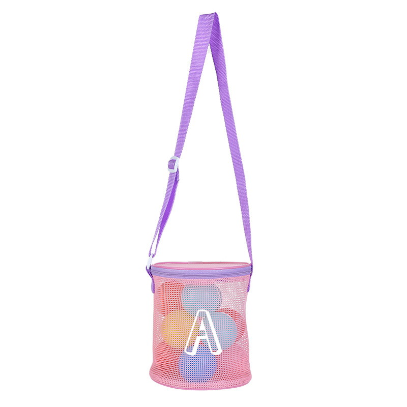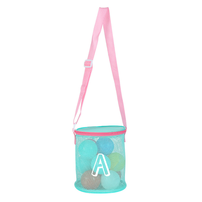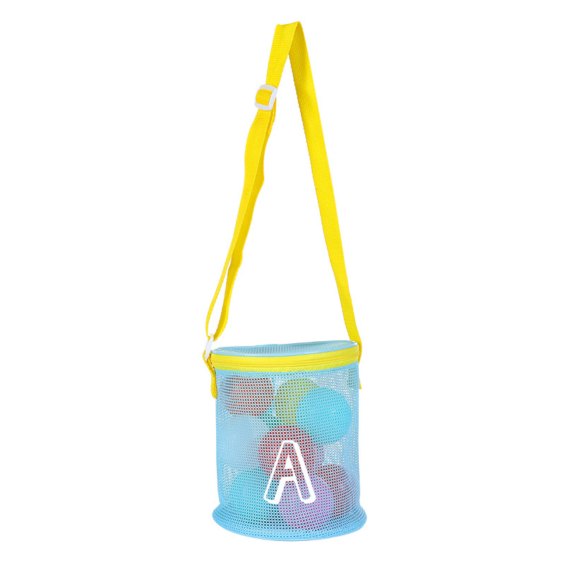 아마존 어린이 메쉬 가방 비치 장난감 보관 가방 모래 파는 보관 가방 그리드 비치 가방 버킷 로고