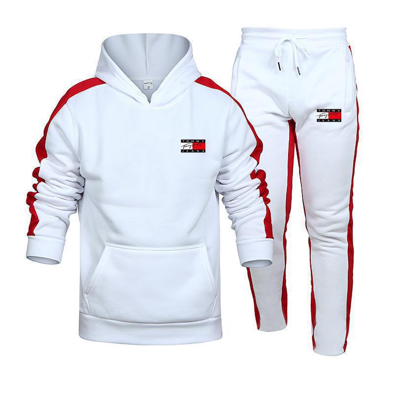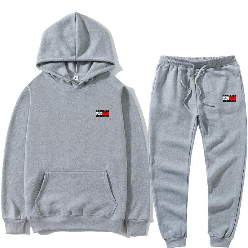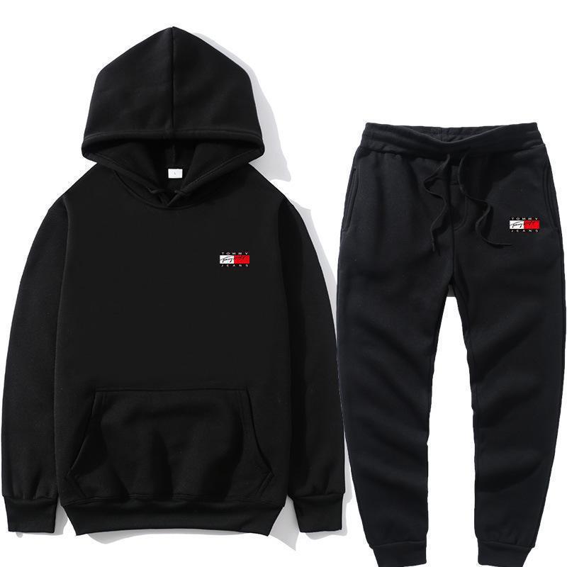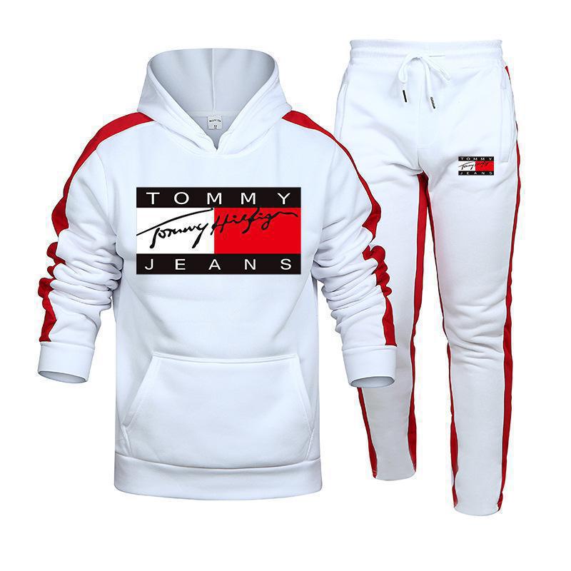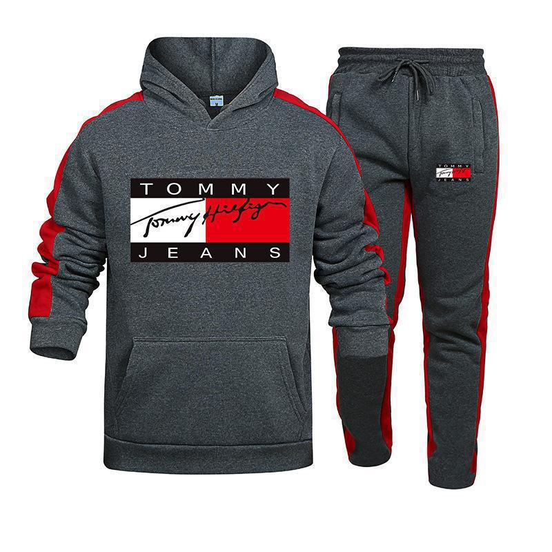국경 간 아마존, 유럽과 미국의 가을 새로운 남성 후드 조끼 2 피스 인쇄 스포츠 레저 세트스토어 가기