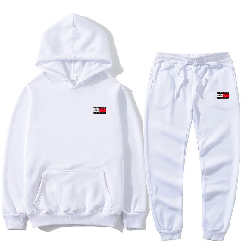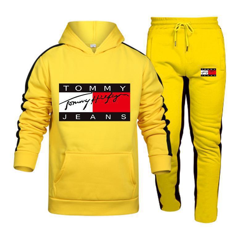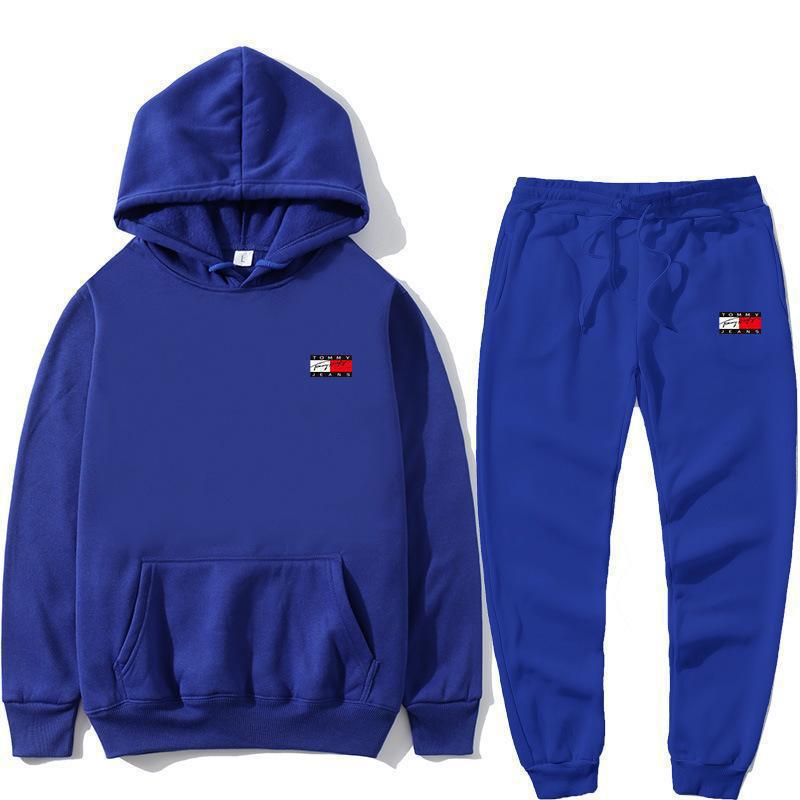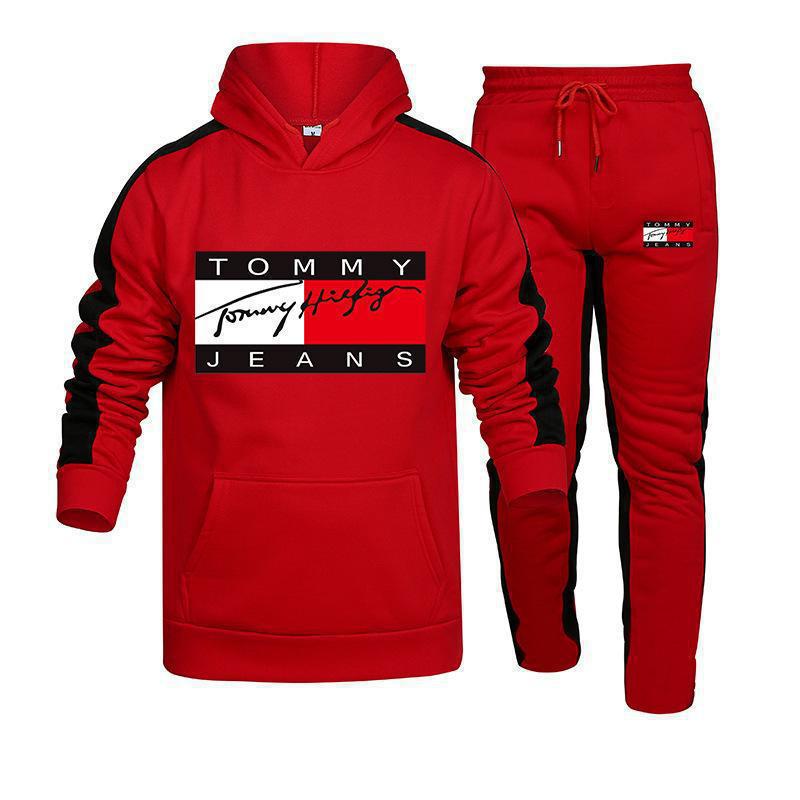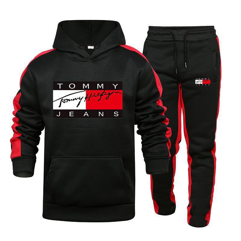 국경 간 아마존, 유럽과 미국의 가을 새로운 남성 후드 조끼 2 피스 인쇄 스포츠 레저 세트스토어 가기