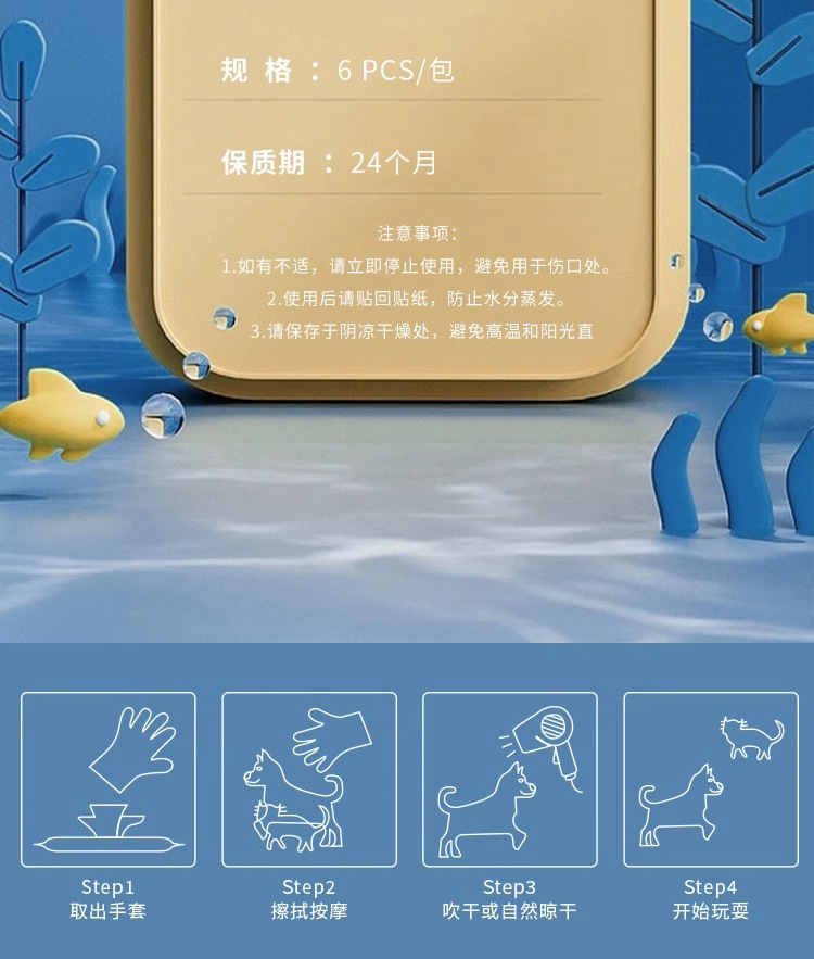 • 애완동물 장갑 물티슈 [1팩/6개입]
