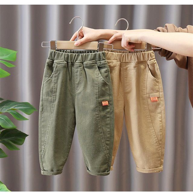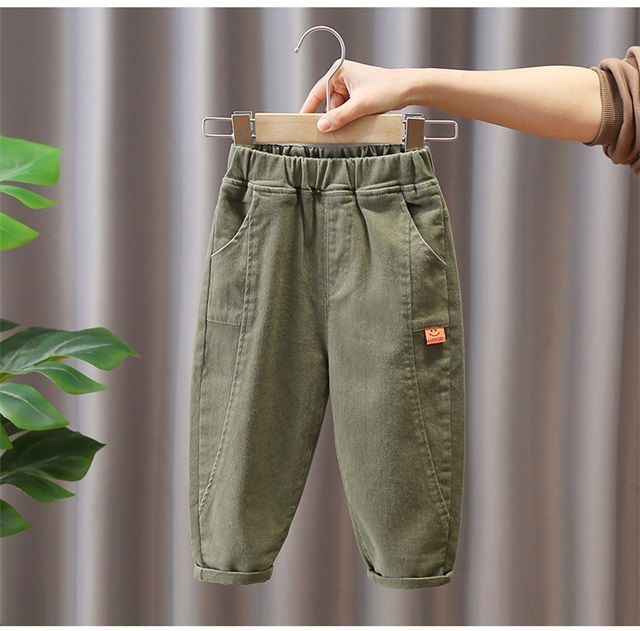 봄과 가을 남성과 여성의 어린이 착용 캐주얼 바지 아기의 서양식 어린이 성격 유행 브랜드 패션 유명 인터넷 스티칭 웃는 바지스토어 가기