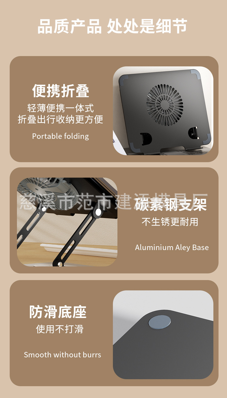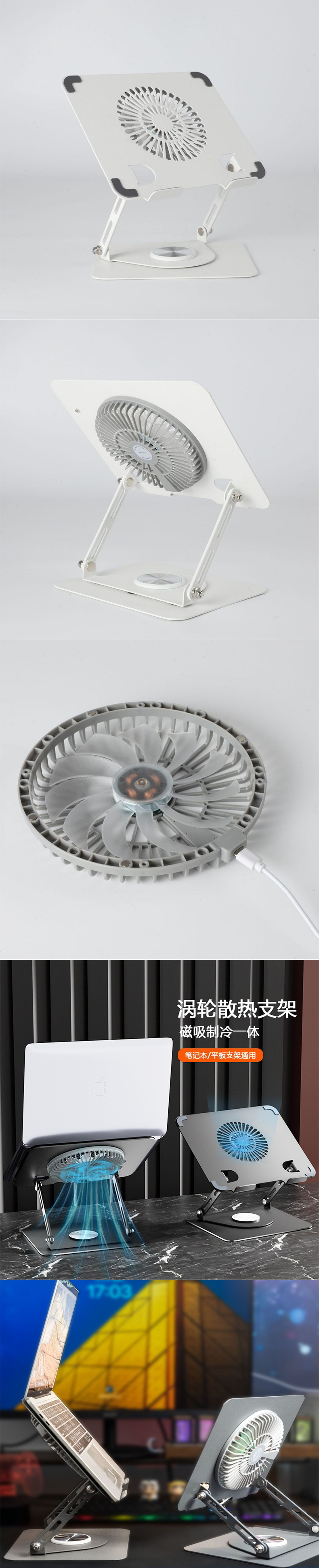 방열 노트북 스탠드, 회전식 데스크탑, 자석 팬 포함, 게이밍 노트북, 휴대용 노트북 높이 조절 스탠드
