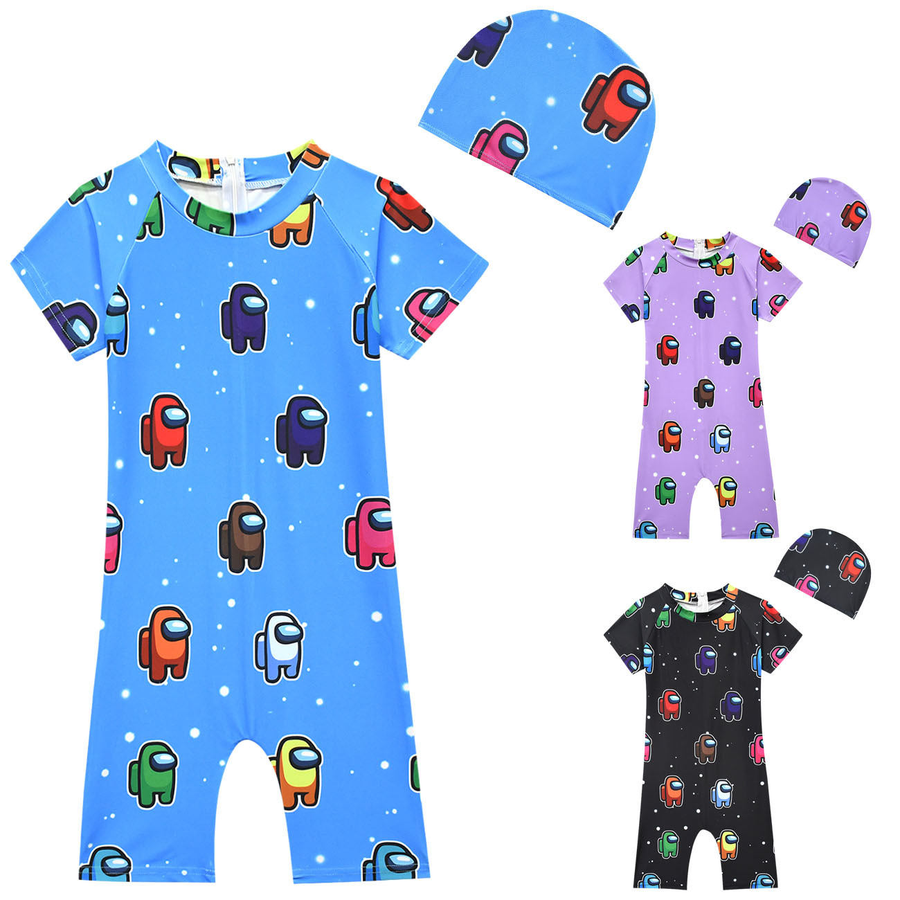 국경 간 소년 소녀 원피스 수영복 조커 아동복 제조업체 20075 세트 어린이 수영복 수영 모자 공급스토어 가기