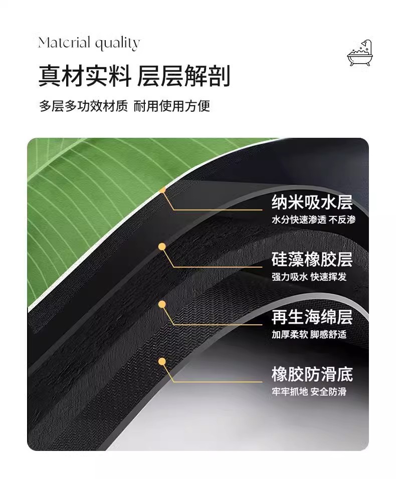 Diatom 진흙 바닥 매트 바나나 잎 욕실 물 흡수성 빠른 건조 미끄럼 방지 발 매트 가정용 화장실 먼지 방지 쉬운 관리 바닥 매트