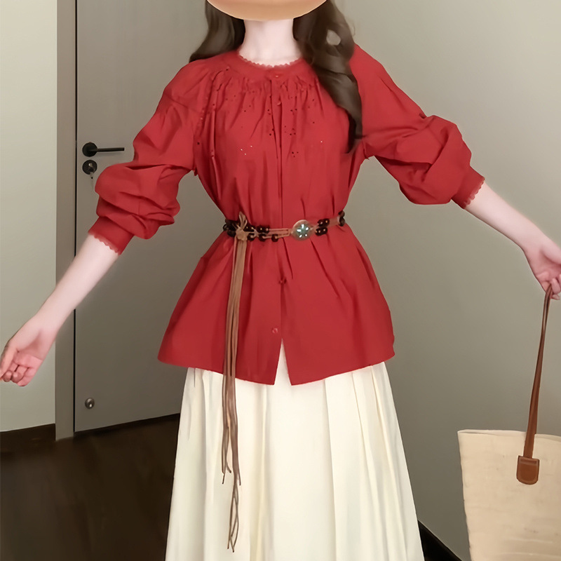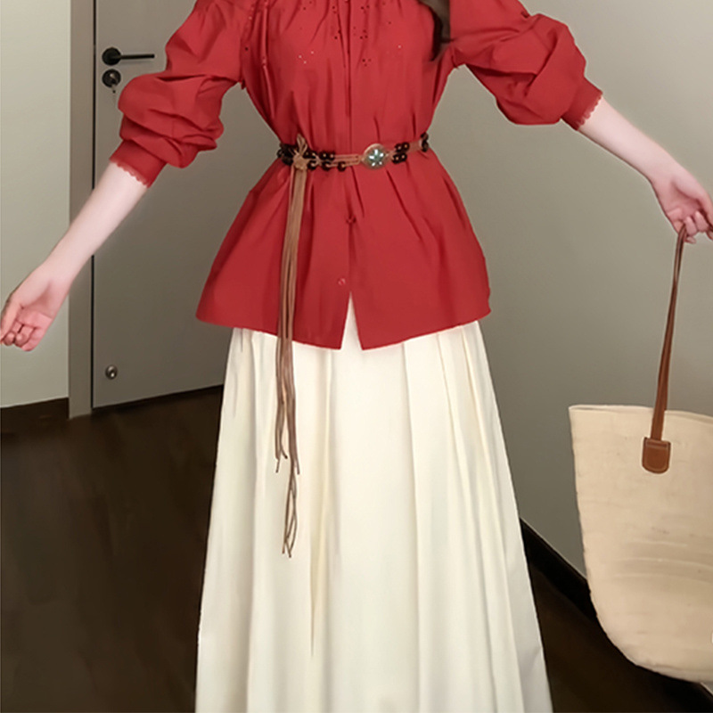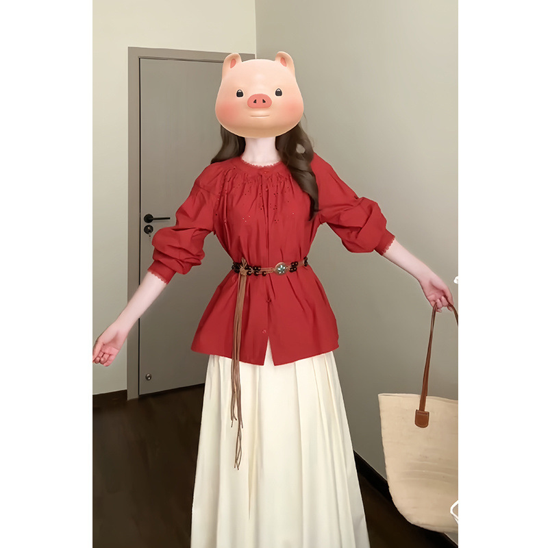 올해 인기있는 아름다운 원피스 여성의 이른 봄 새로운 허리 슬리밍 탑 A 라인 스커트 연령 감소 투피스 세트스토어 가기