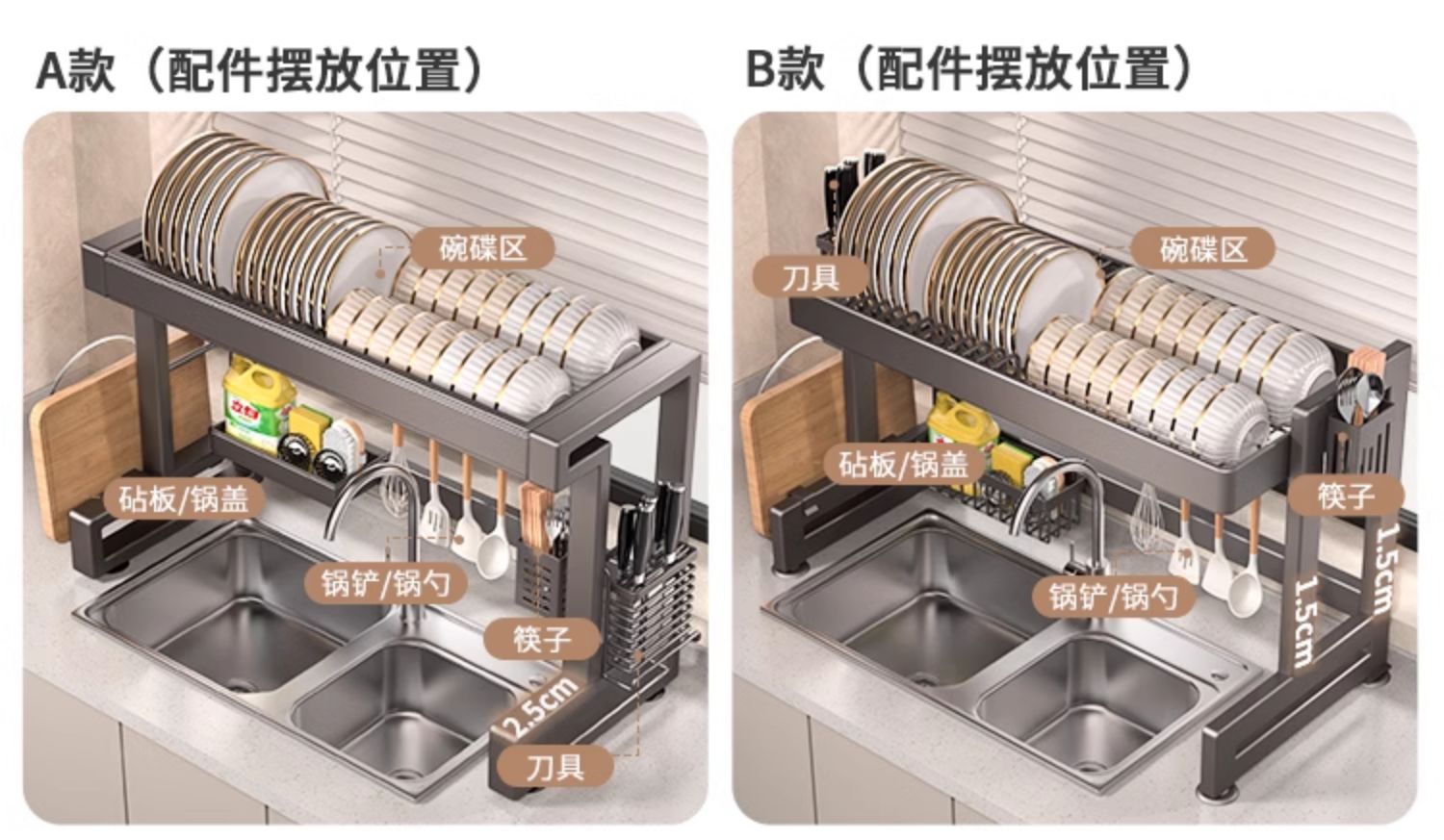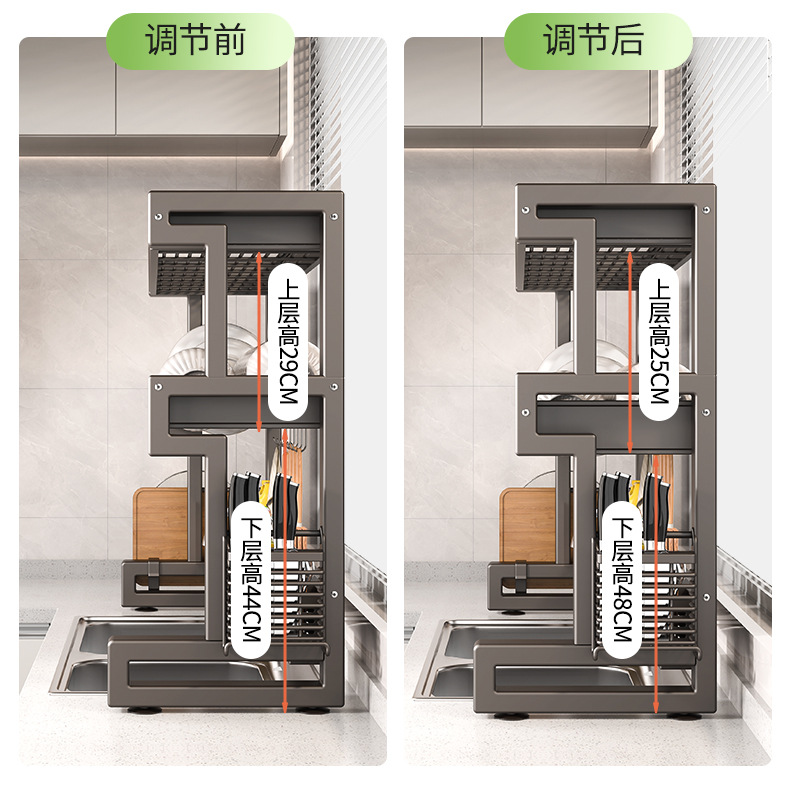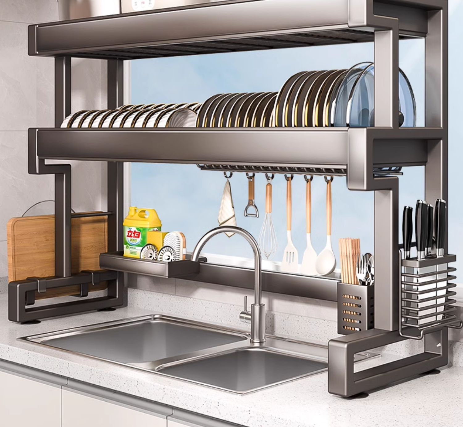 스테인레스 스틸 주방 싱크대 저장 랙 싱크 다기능 요리 저장 랙 접시 드레인 풀 그릇 선반