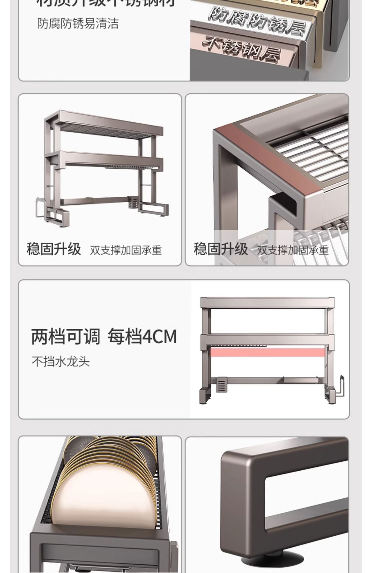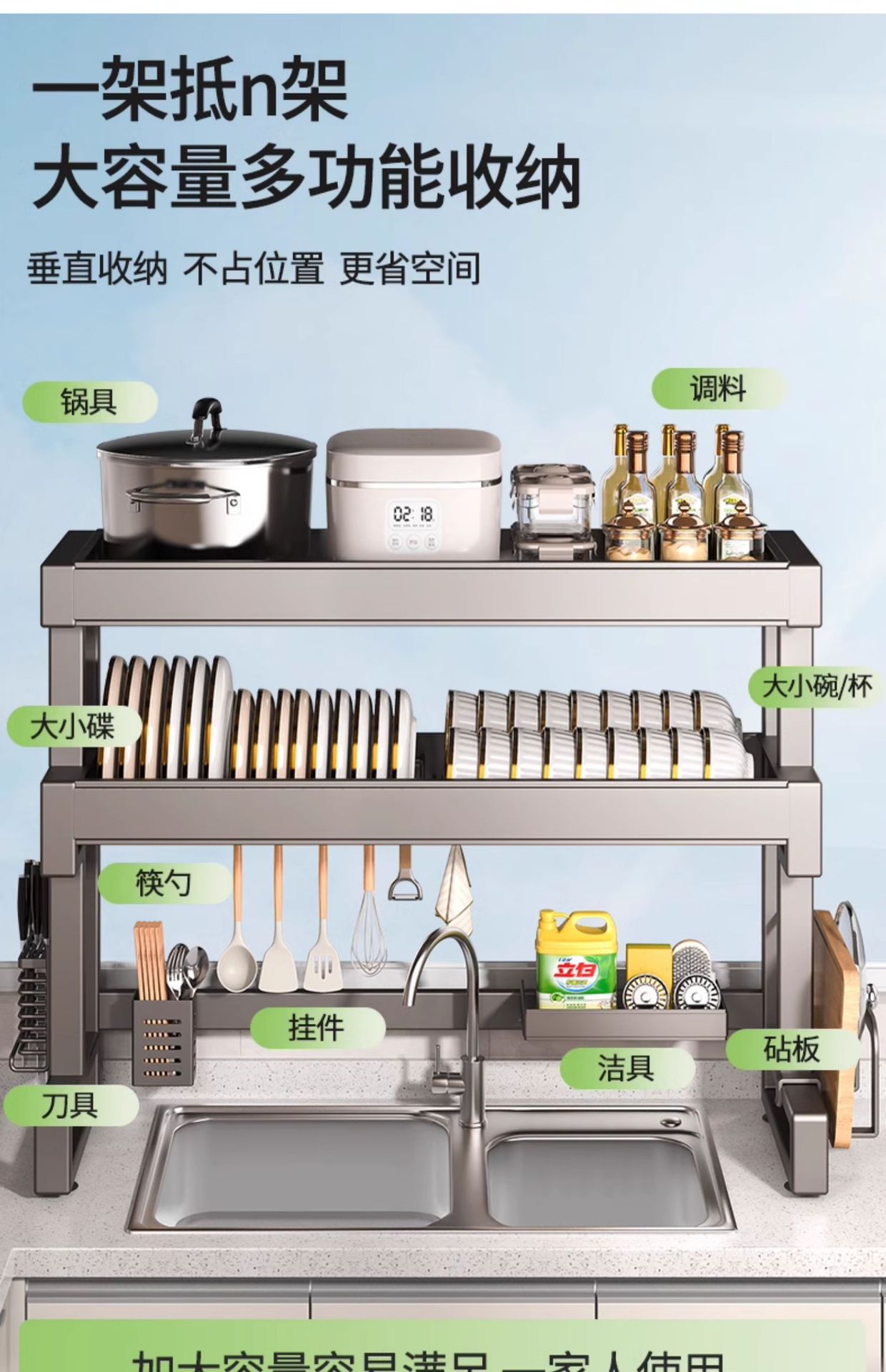 스테인레스 스틸 주방 싱크대 저장 랙 싱크 다기능 요리 저장 랙 접시 드레인 풀 그릇 선반스토어 가기