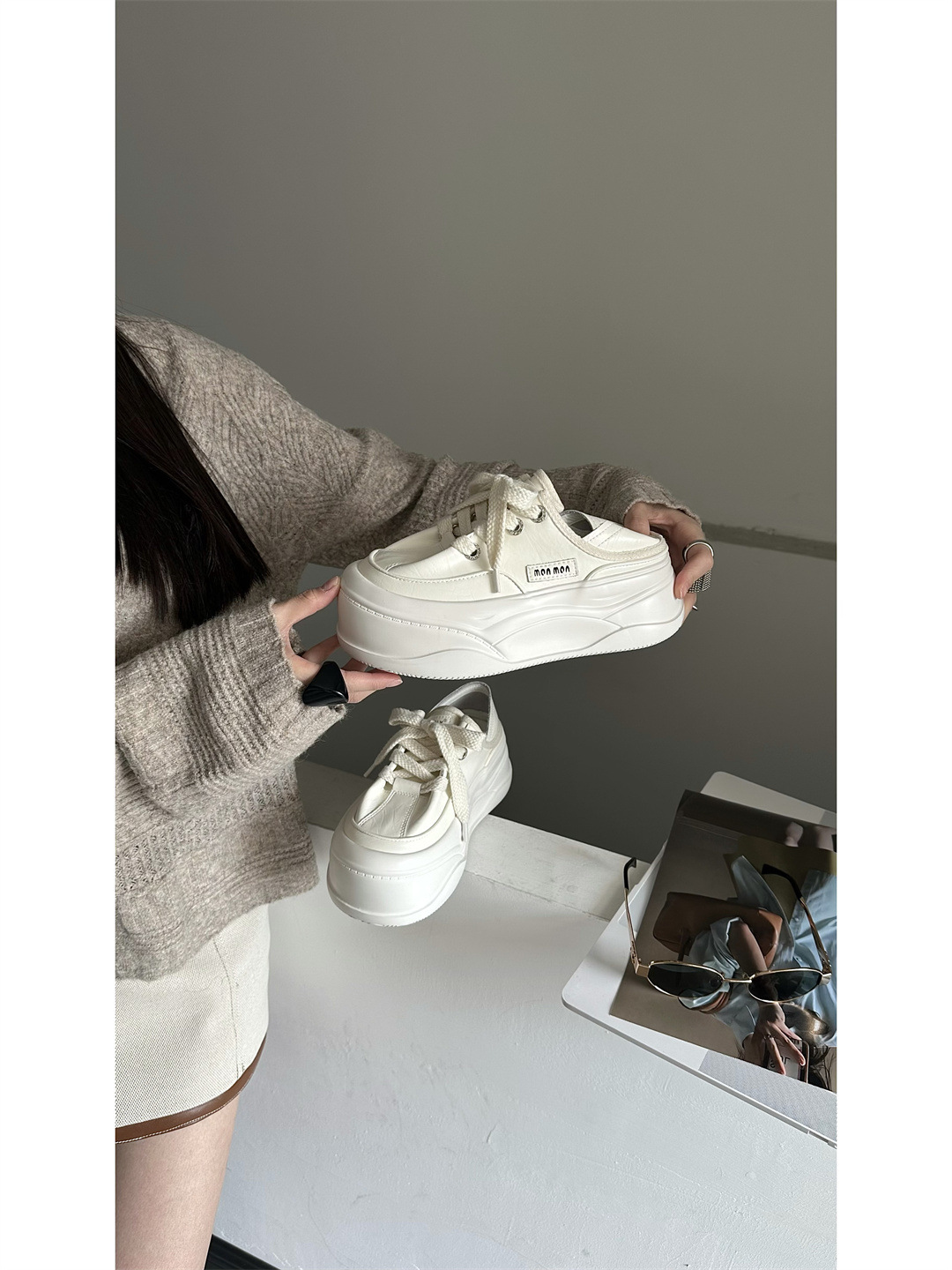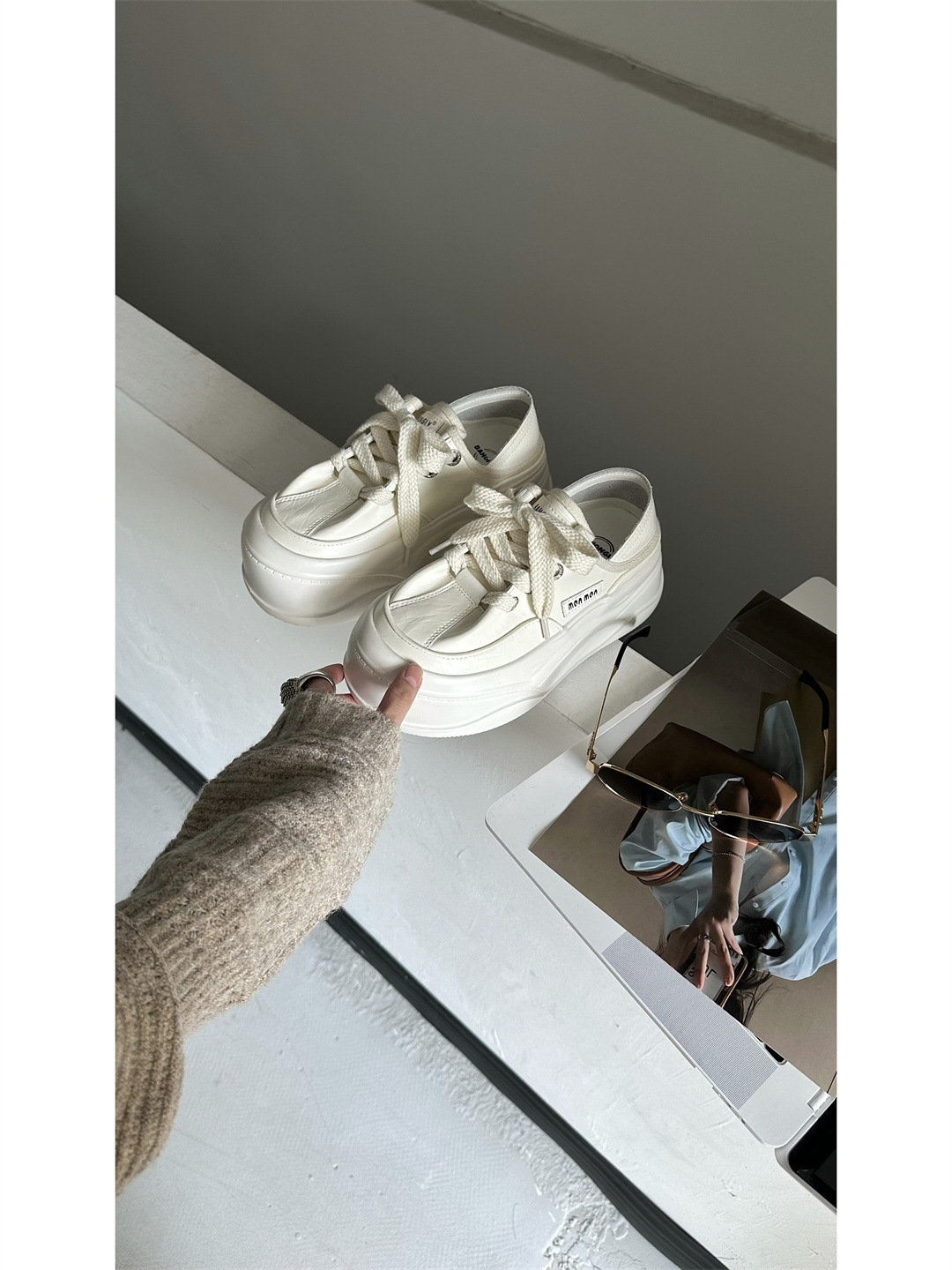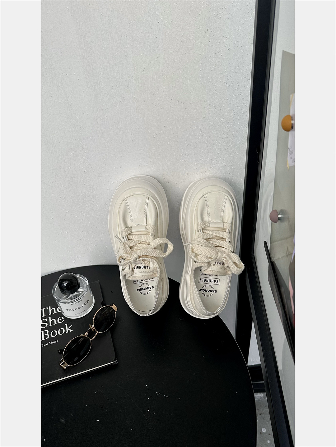 Shanni BAHONGLY 두꺼운 바닥 흰색 신발 여성의 2025 봄 새로운 증가 통기성 경량 빵 보드 신발 조수스토어 가기