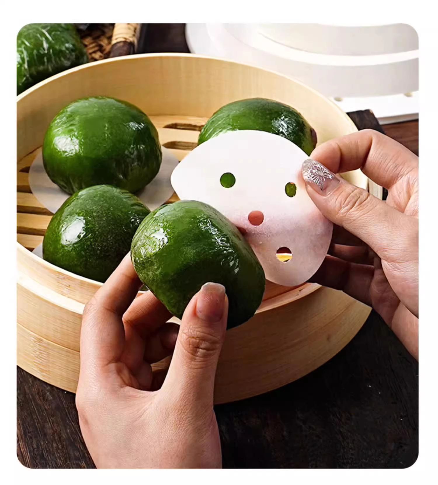 기선 종이 쑥 녹색 공 종이 홀더 붙지 않는 빵 패드 종이 일회용 증기선 패드 찐 빵 종이 패드 기름 방지 찐 종이