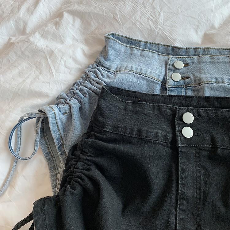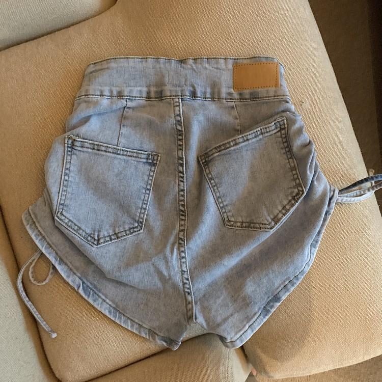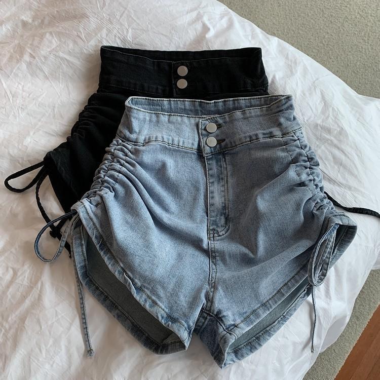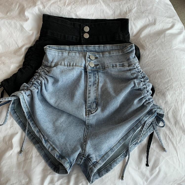 높은 허리 끈 데님 반바지 여성의 2025 새로운 패션 폭발 여름 얇은 뜨거운 소녀 디자인 센스 워드 바지스토어 가기