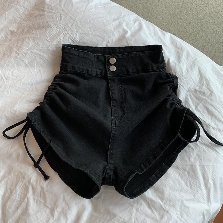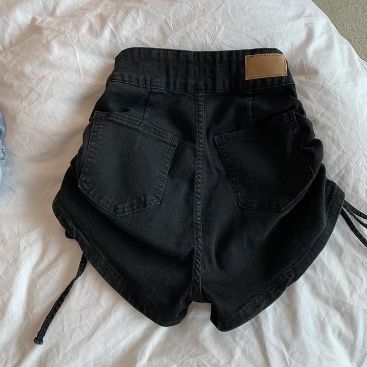 높은 허리 끈 데님 반바지 여성의 2025 새로운 패션 폭발 여름 얇은 뜨거운 소녀 디자인 센스 워드 바지