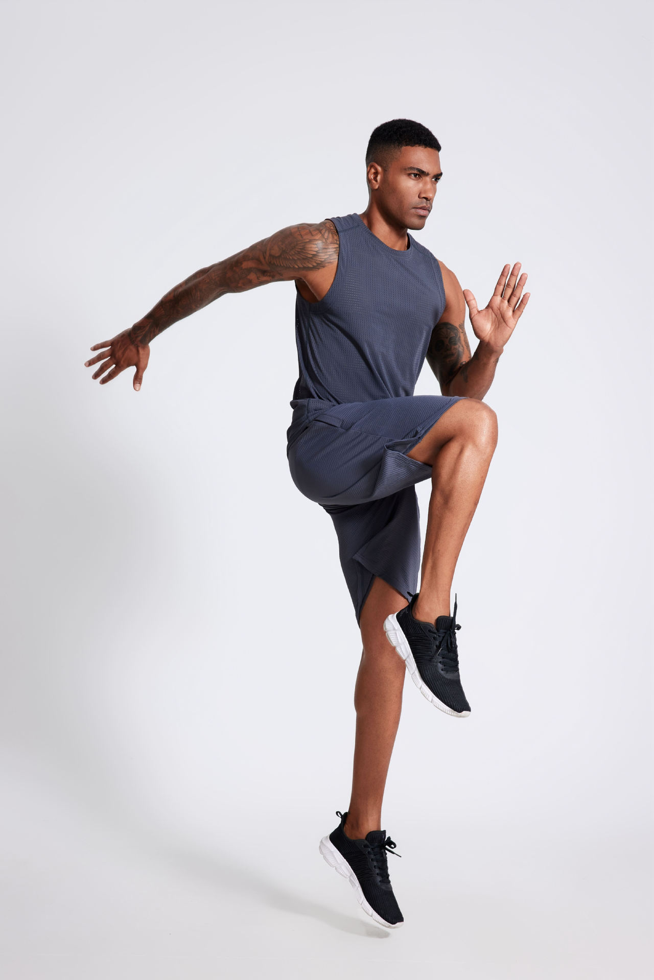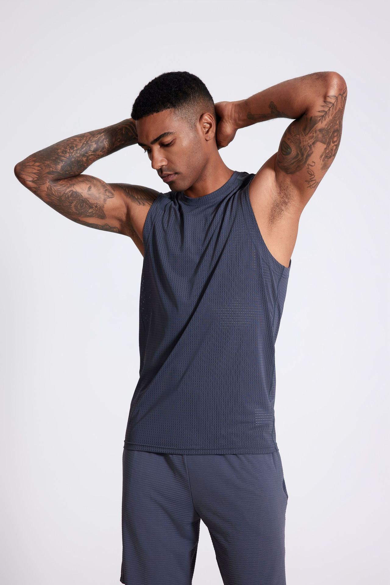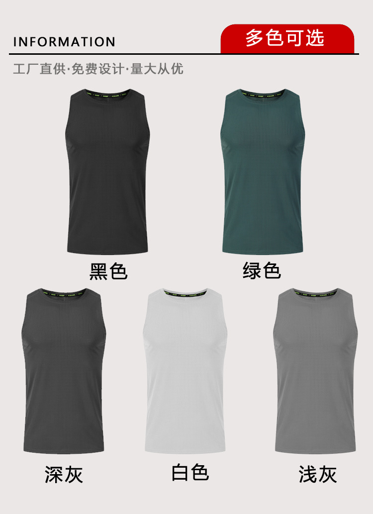 夏季网孔跑步训练透气运动无袖上衣男 健身速干冰丝凉感高弹背心