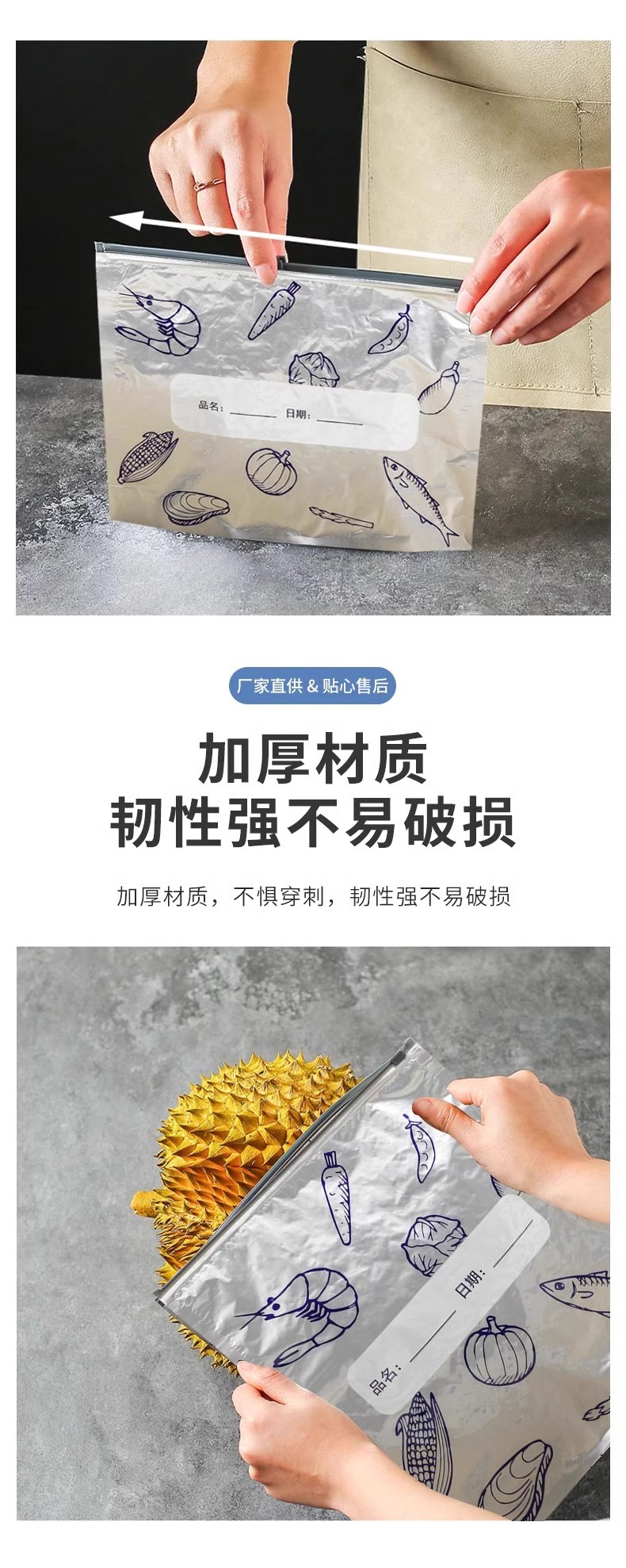 알루미늄 호일 신선 유지 봉인 된 가방 식품 냉장고 가정용 냉동 고기 야채 식품 항균 하위 포장 저장 가방 지퍼