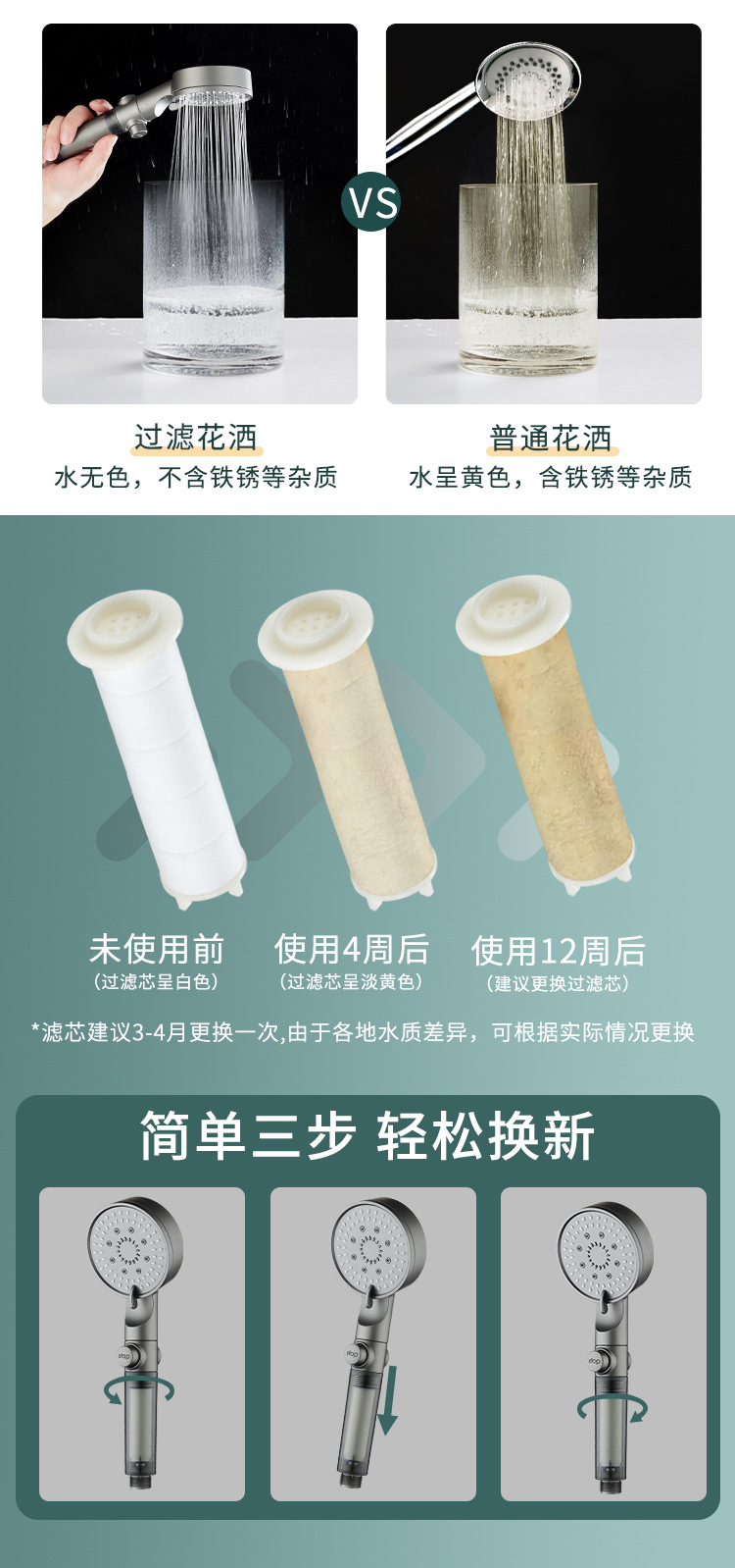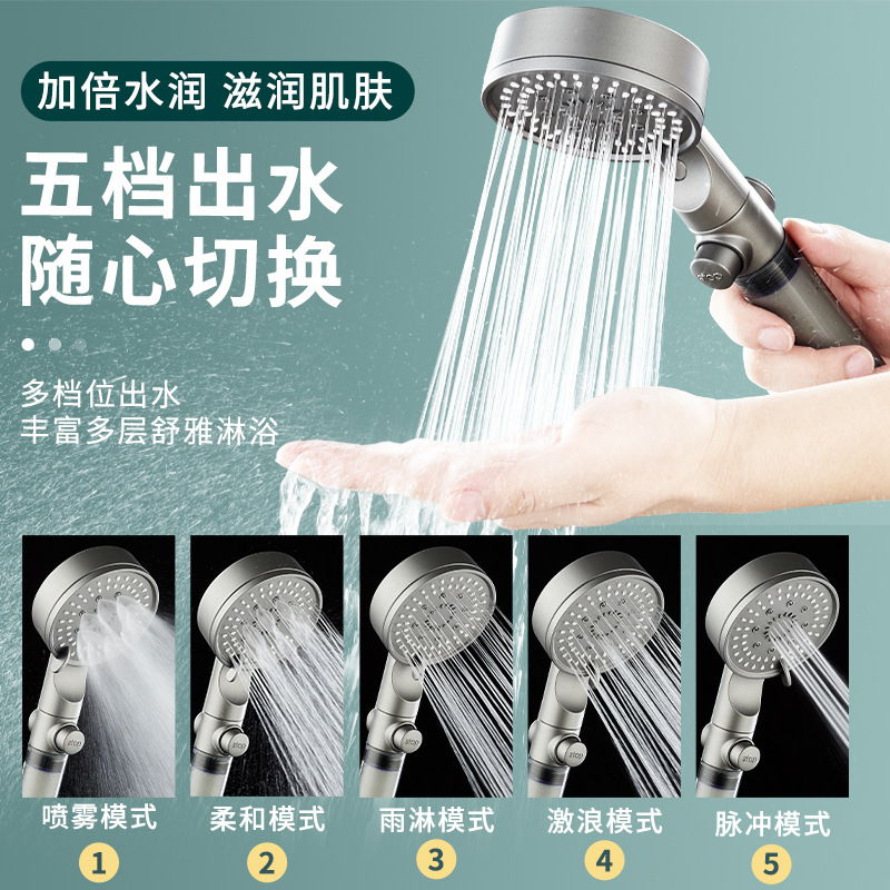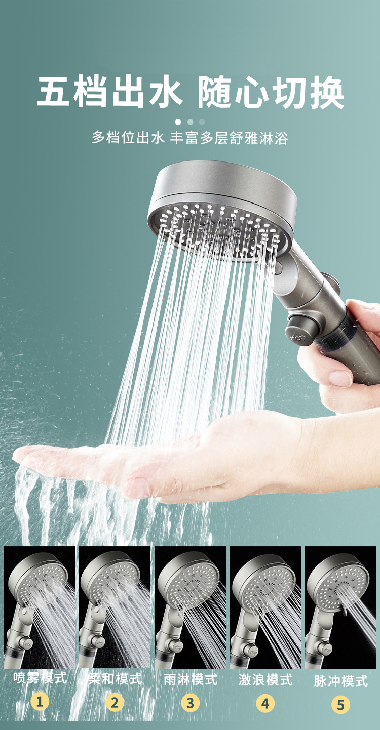 한 인상 가압 샤워 핸드 헬드 5 기어 샤워 헤드 욕실 샤워 3 피스 세트