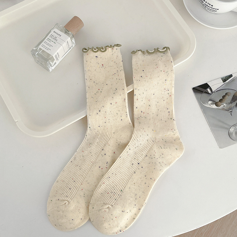 봄과 여름 도트 원사 시리즈 우드 이어 스택 중간 길이의 스타킹 코튼 심플 데일리 레이스 화이트 스타킹