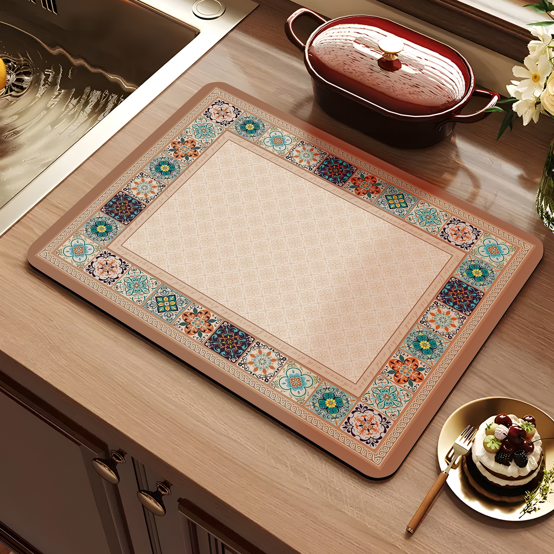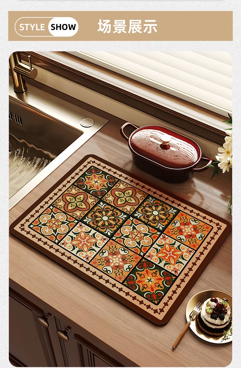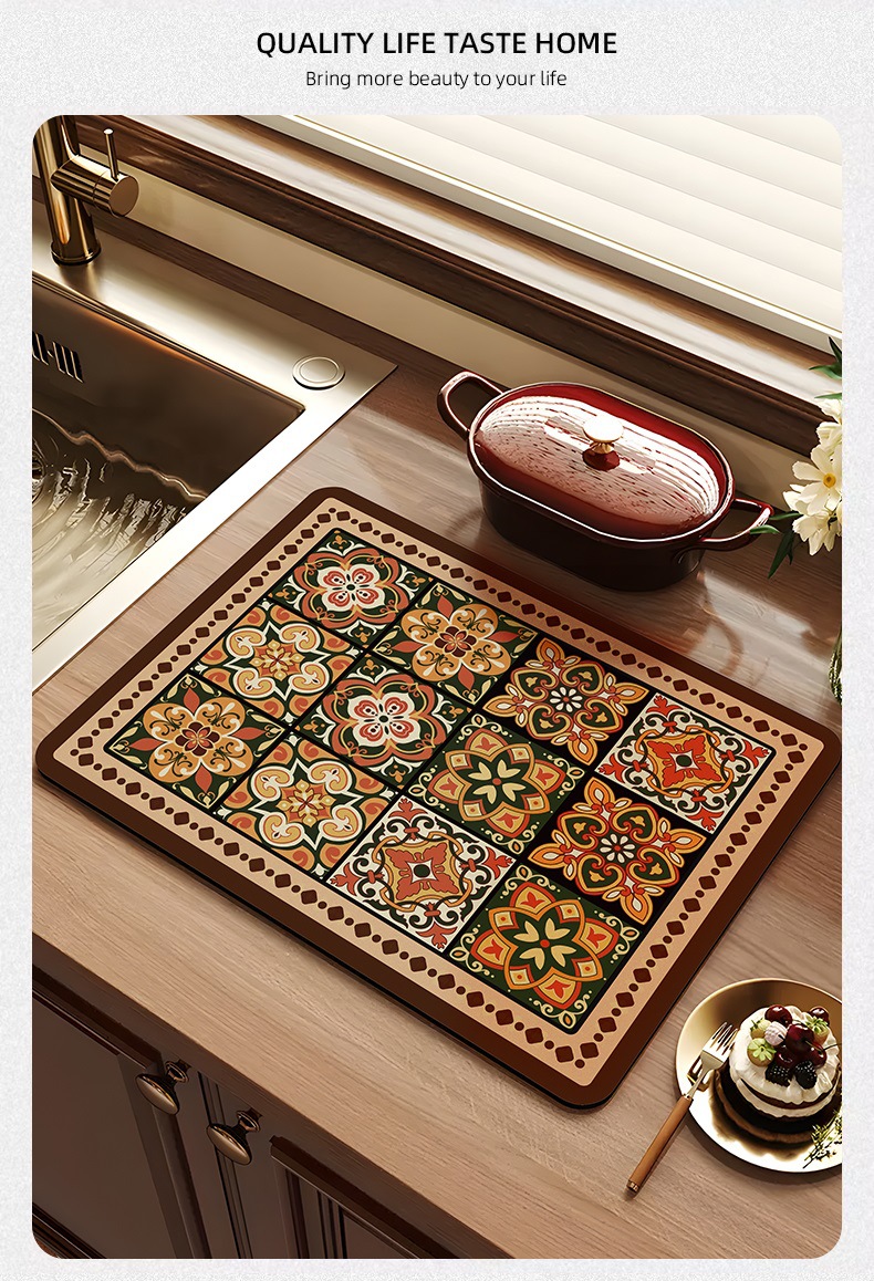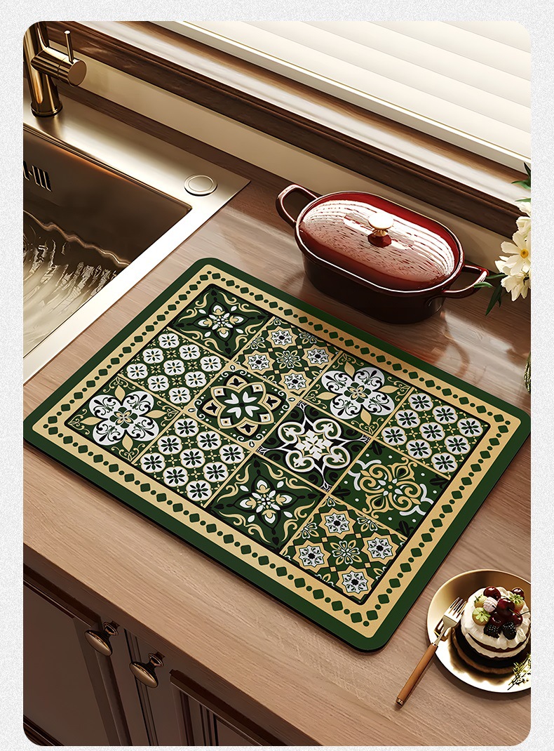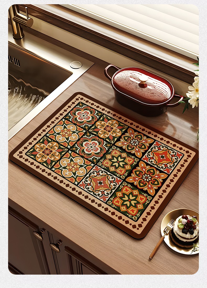 아메리칸 스타일 레트로 주방 조리대 건조 매트 Diatom 진흙 흡수성 매트 빠른 건조 방수 미끄럼 방지 워시없는 단열 카운터 탑 매트