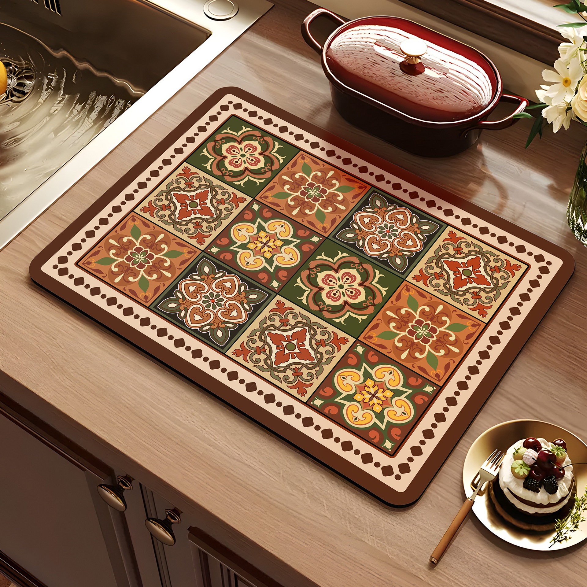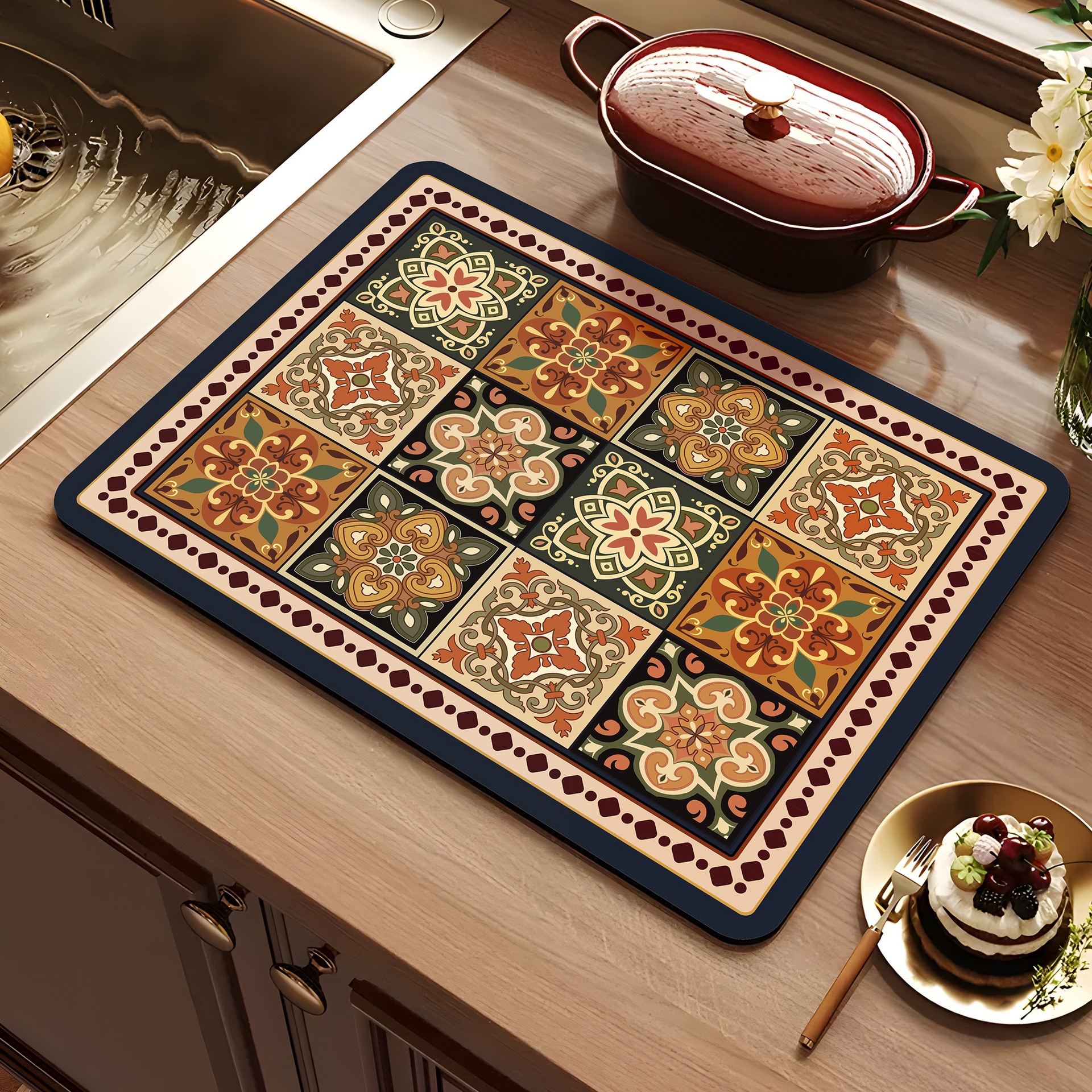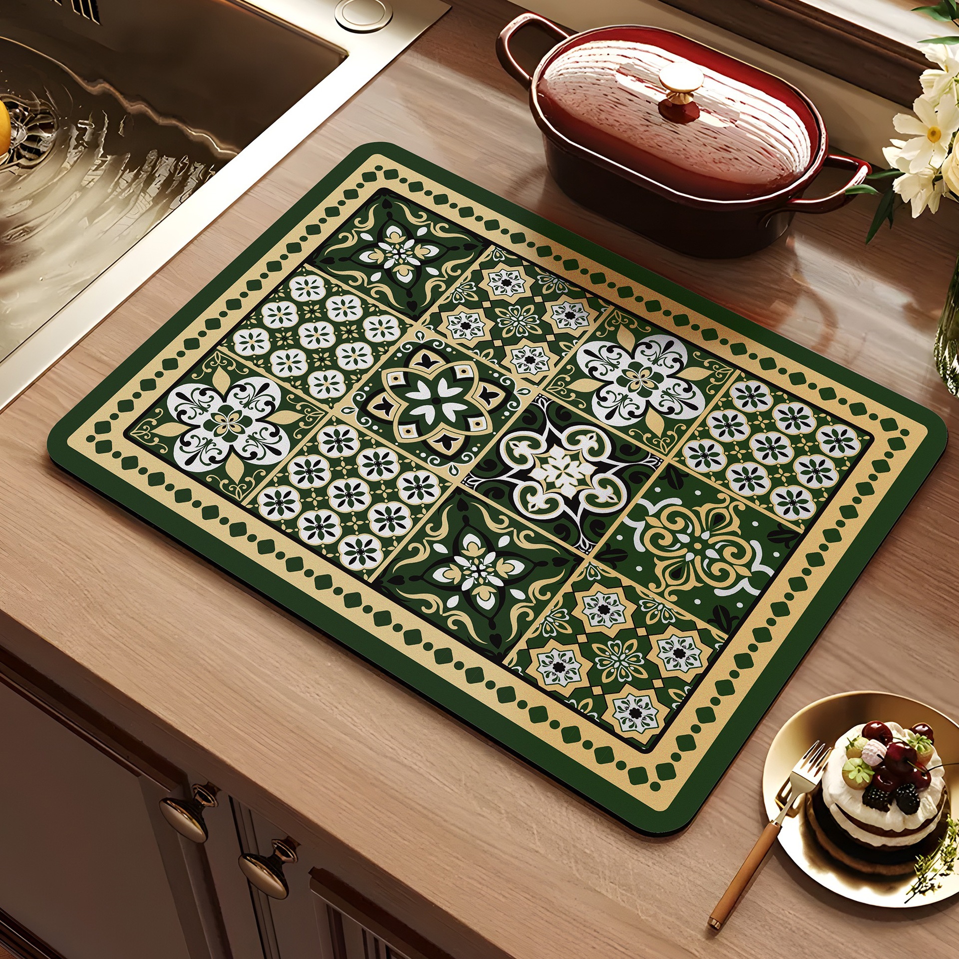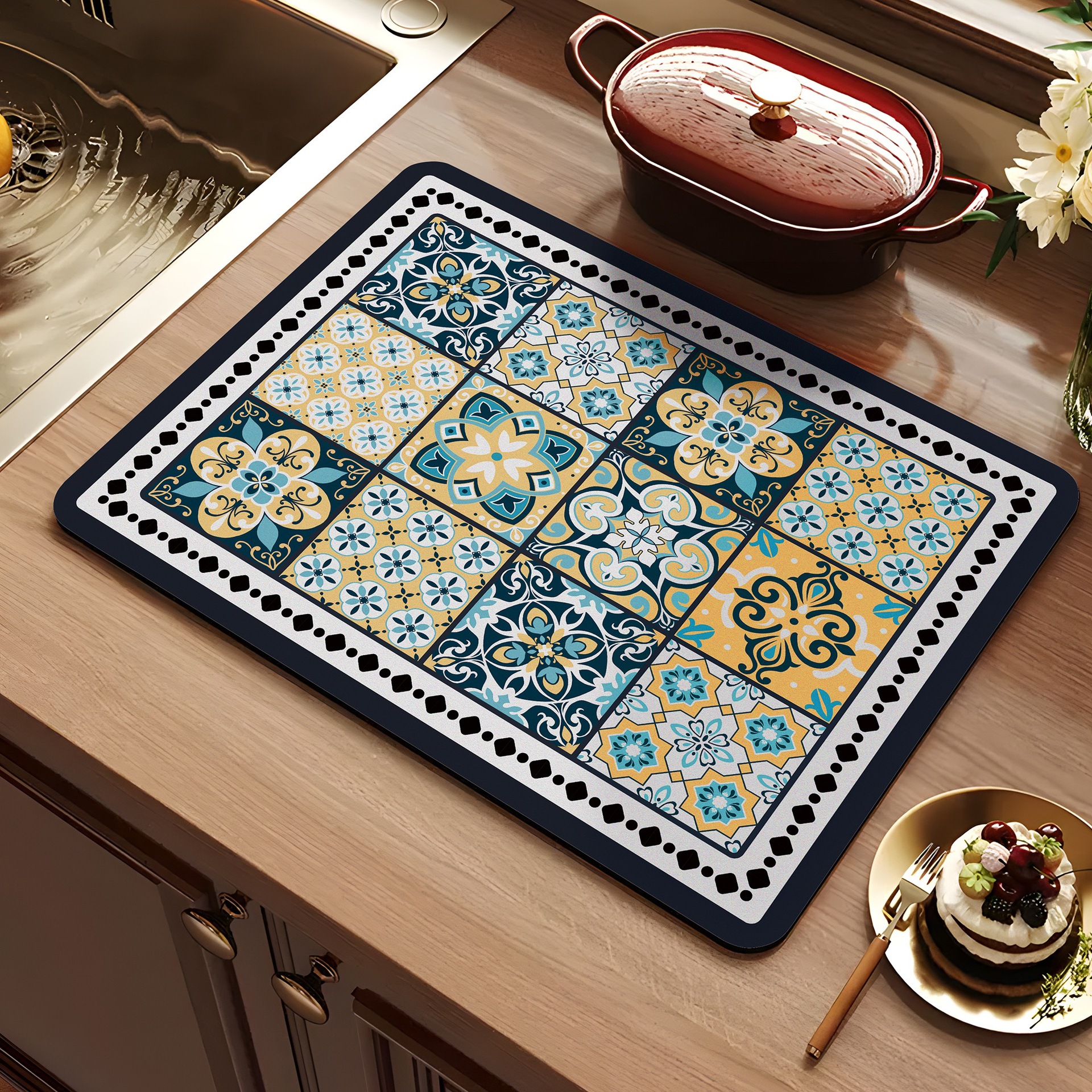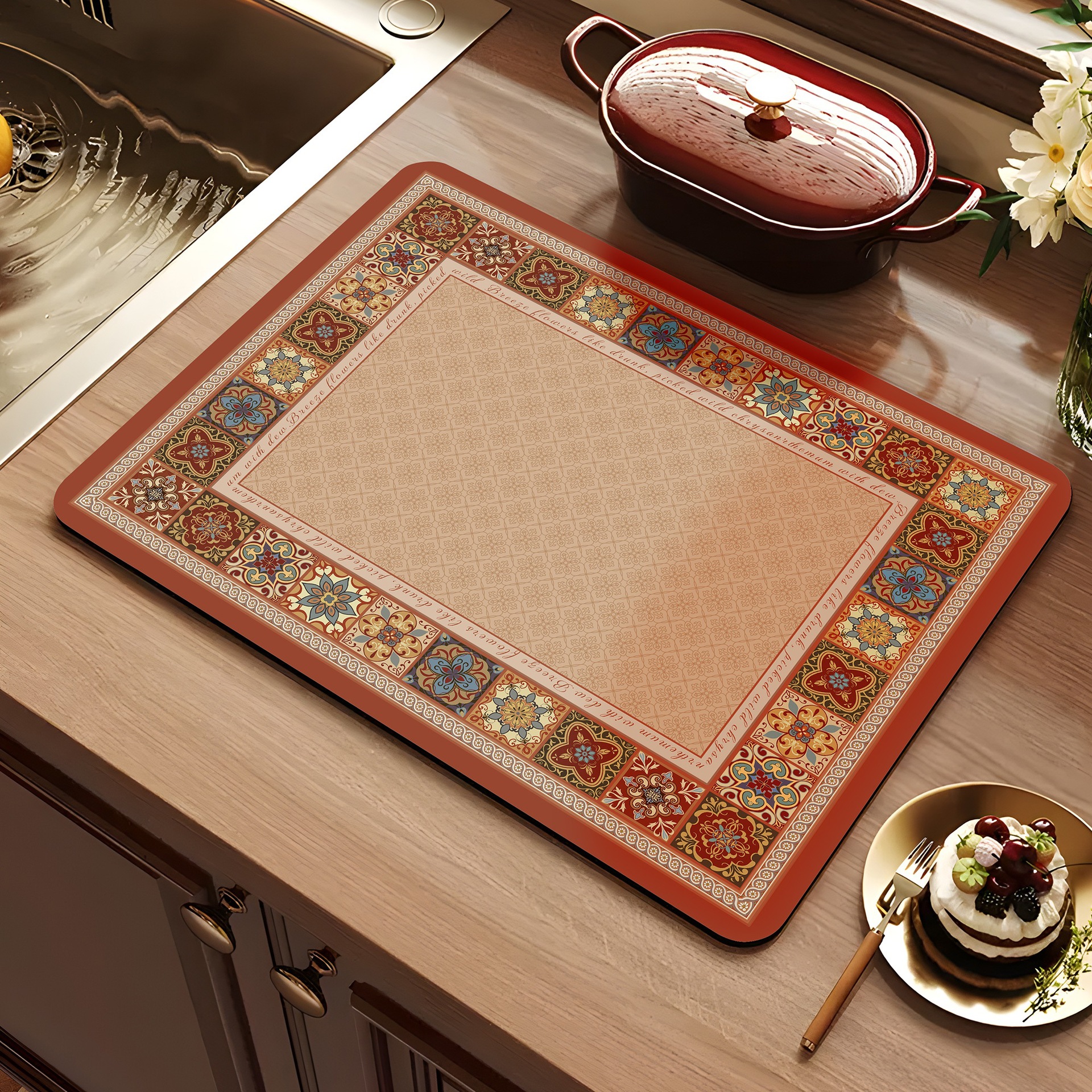 아메리칸 스타일 레트로 주방 조리대 건조 매트 Diatom 진흙 흡수성 매트 빠른 건조 방수 미끄럼 방지 워시없는 단열 카운터 탑 매트