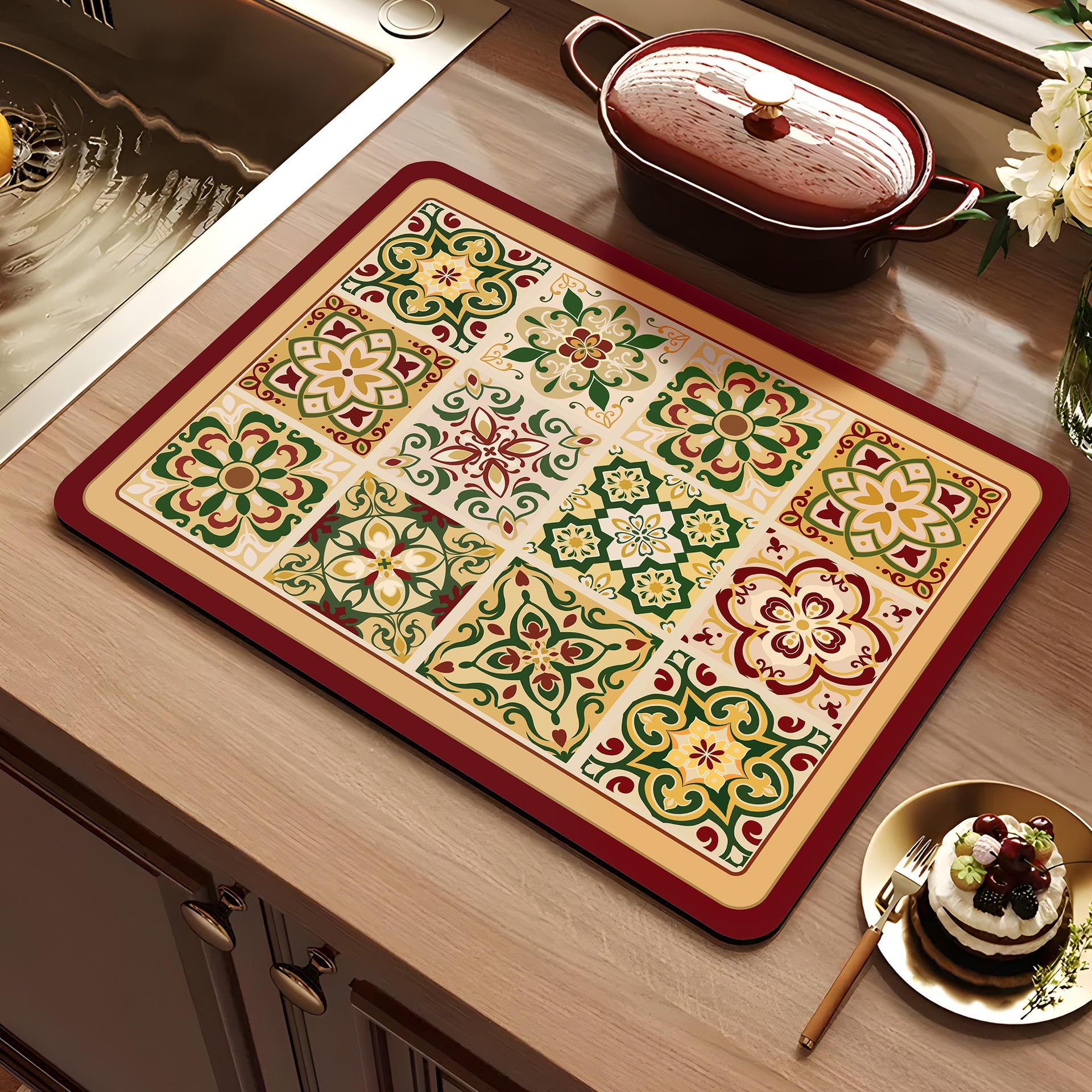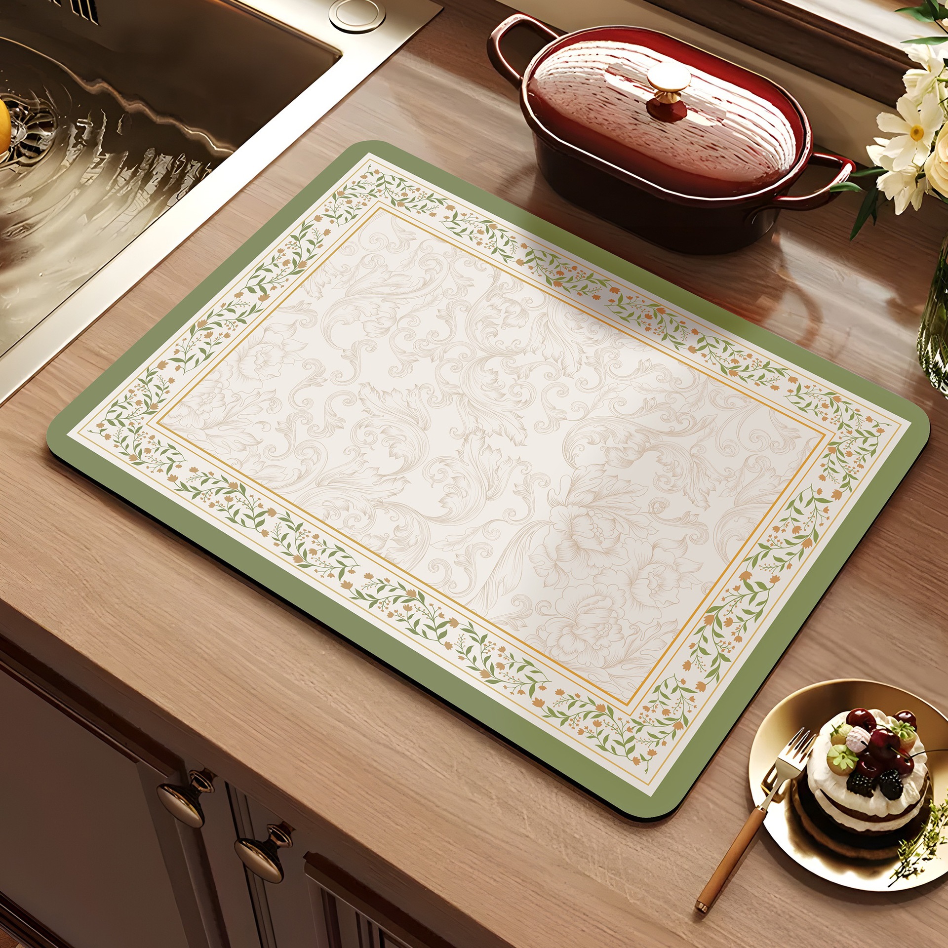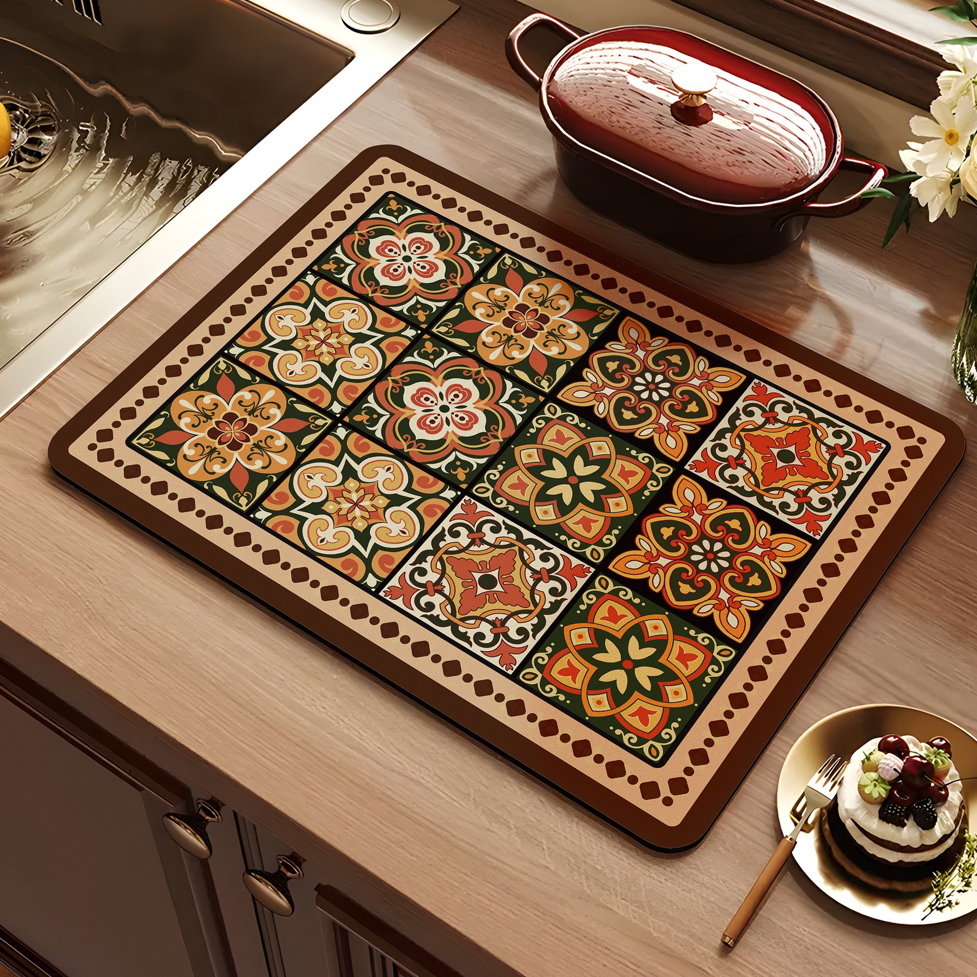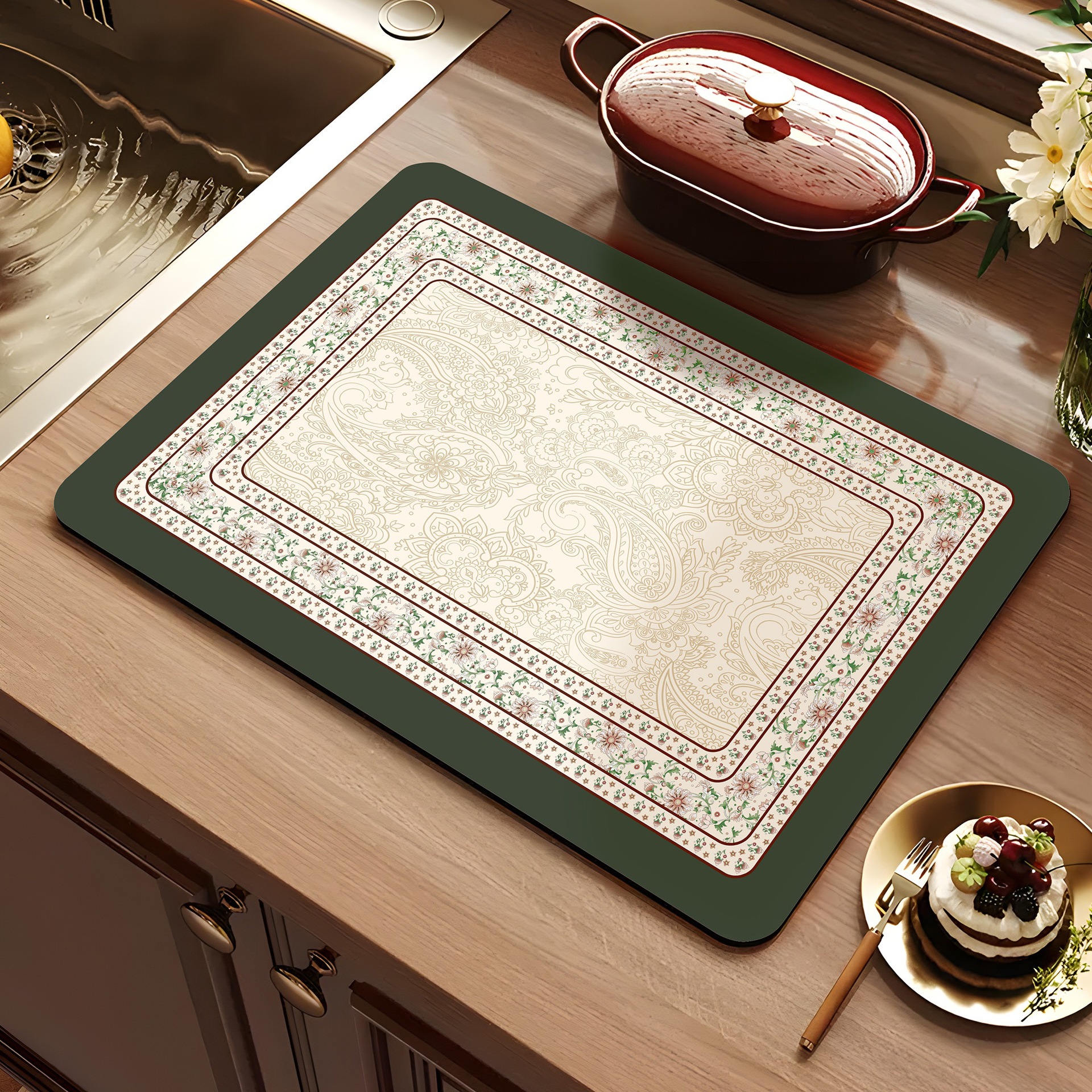 아메리칸 스타일 레트로 주방 조리대 건조 매트 Diatom 진흙 흡수성 매트 빠른 건조 방수 미끄럼 방지 워시없는 단열 카운터 탑 매트