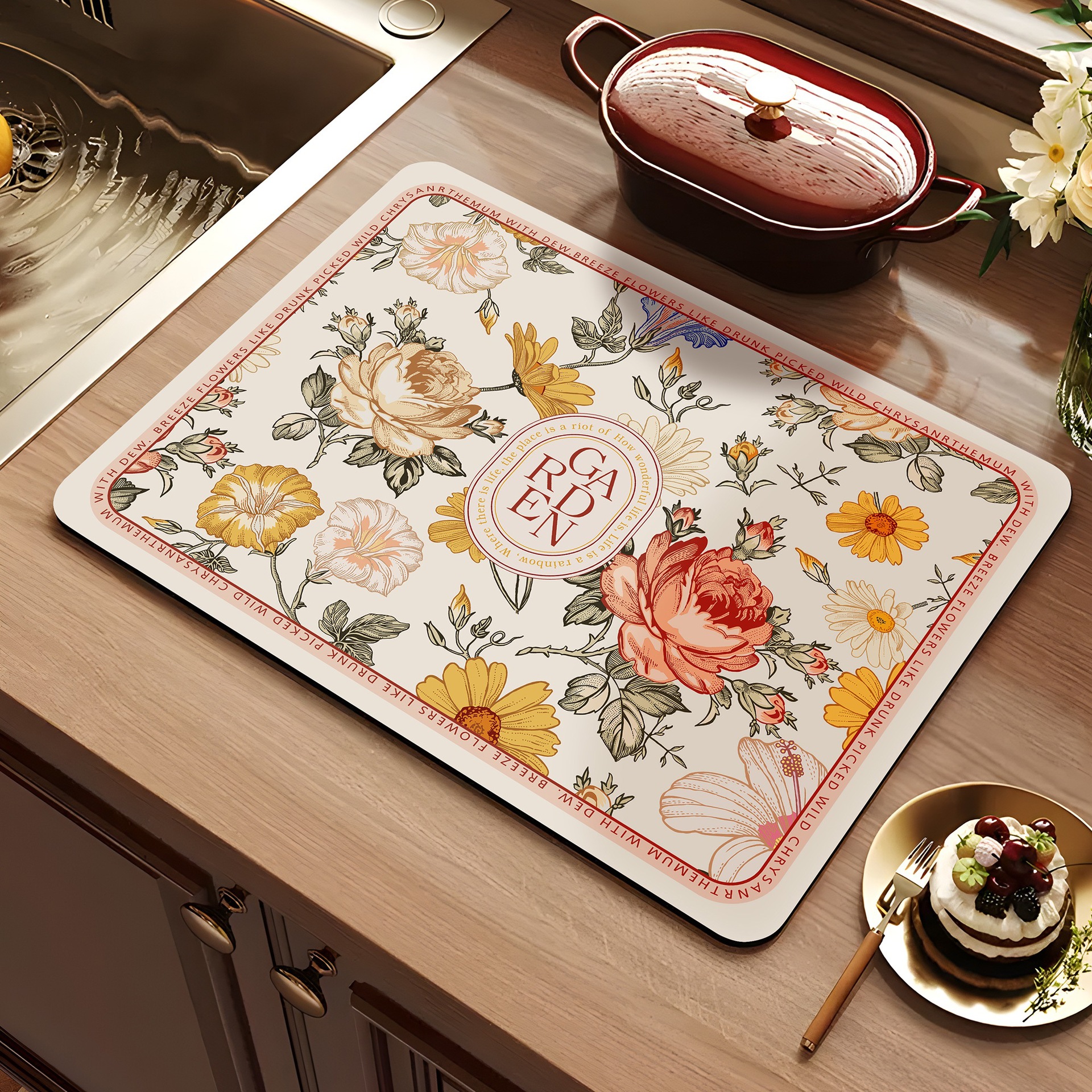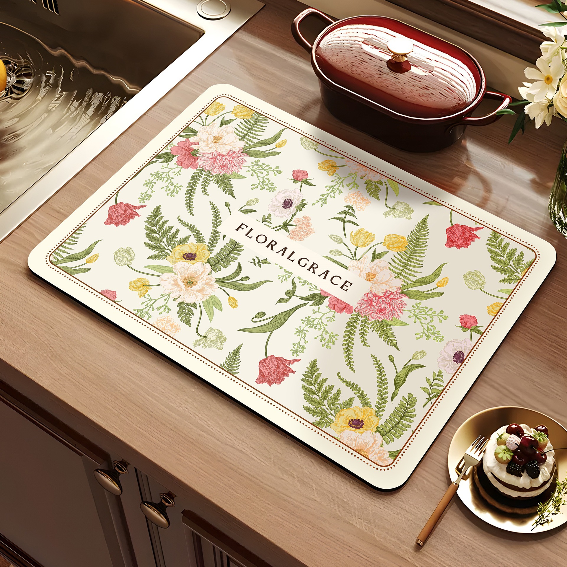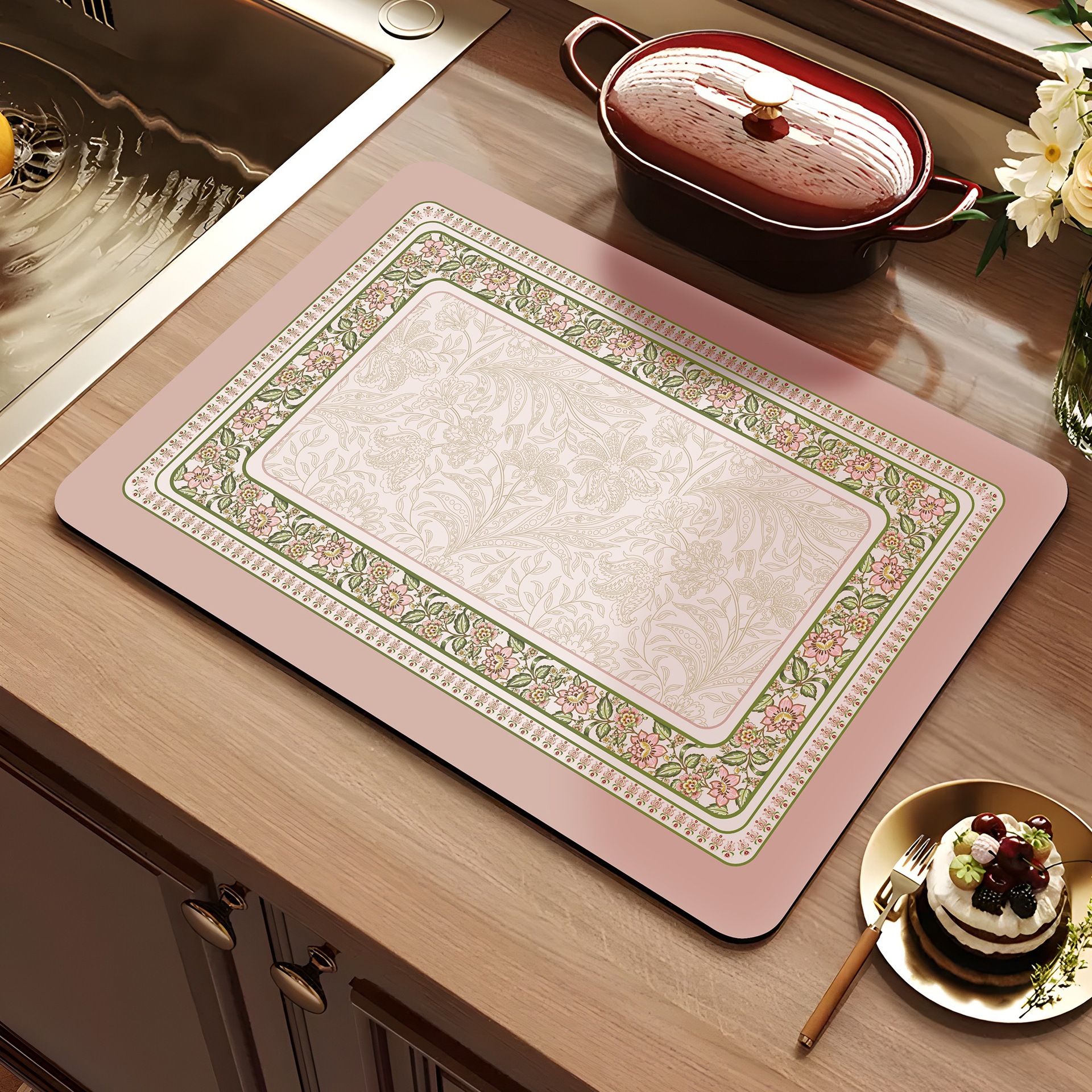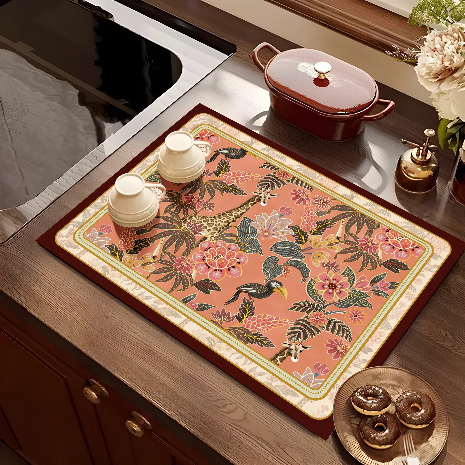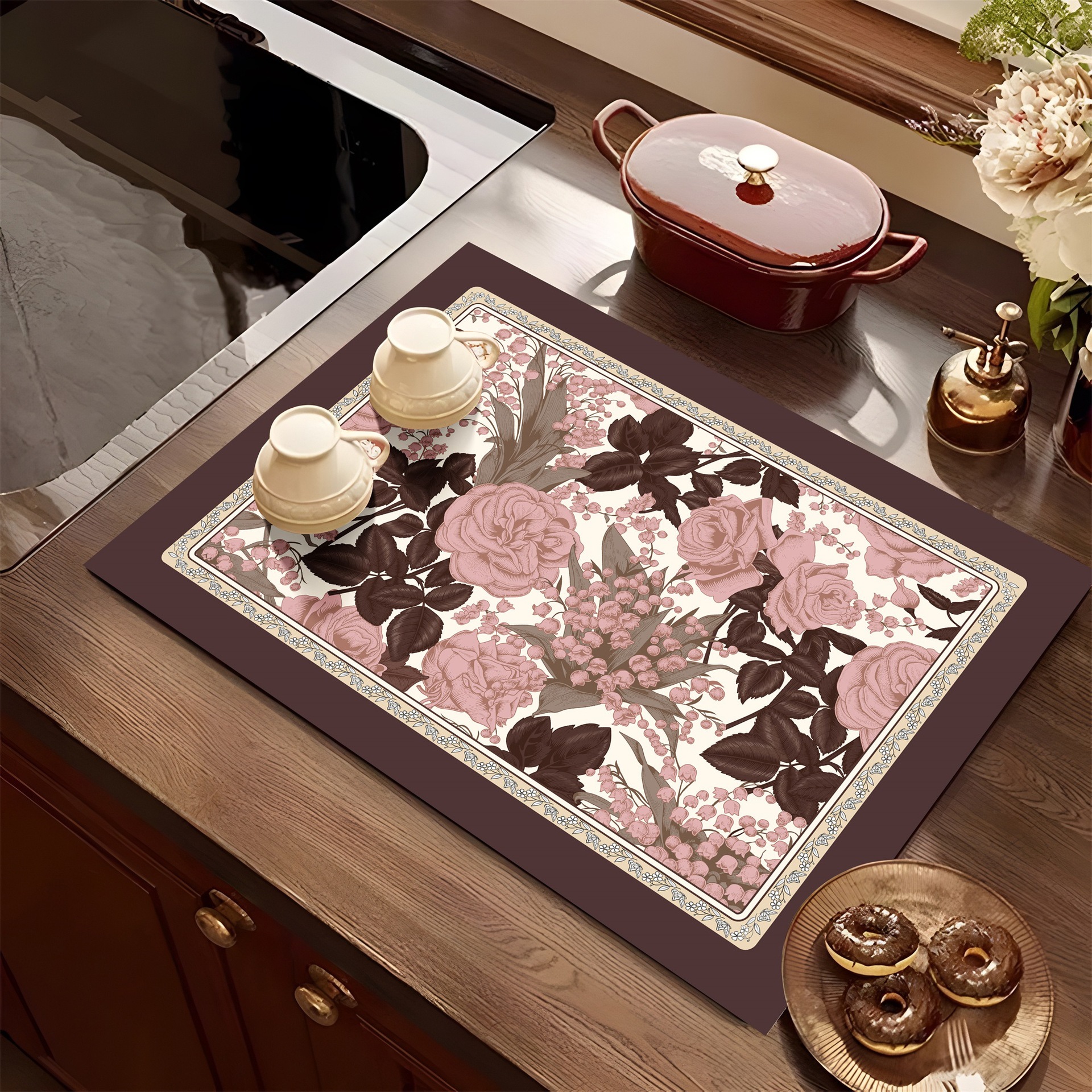 아메리칸 스타일 레트로 주방 조리대 건조 매트 Diatom 진흙 흡수성 매트 빠른 건조 방수 미끄럼 방지 워시없는 단열 카운터 탑 매트
