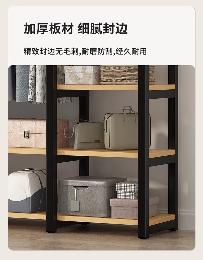 스틸 우드 홀 보드 옷장 임대 룸 다층 오픈 스토리지 옷장 가정용 침실 바닥 랙 옷장