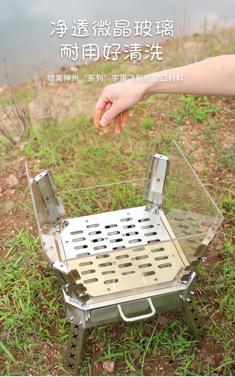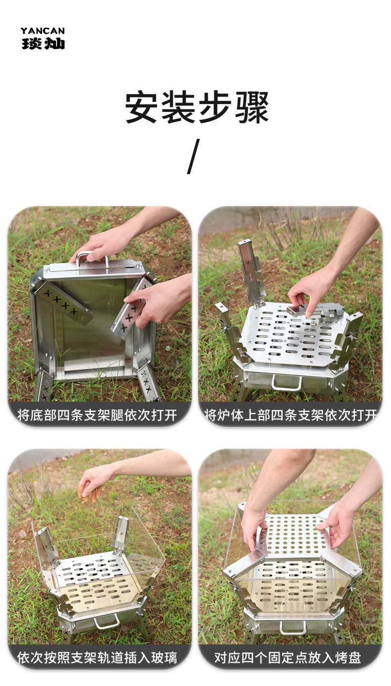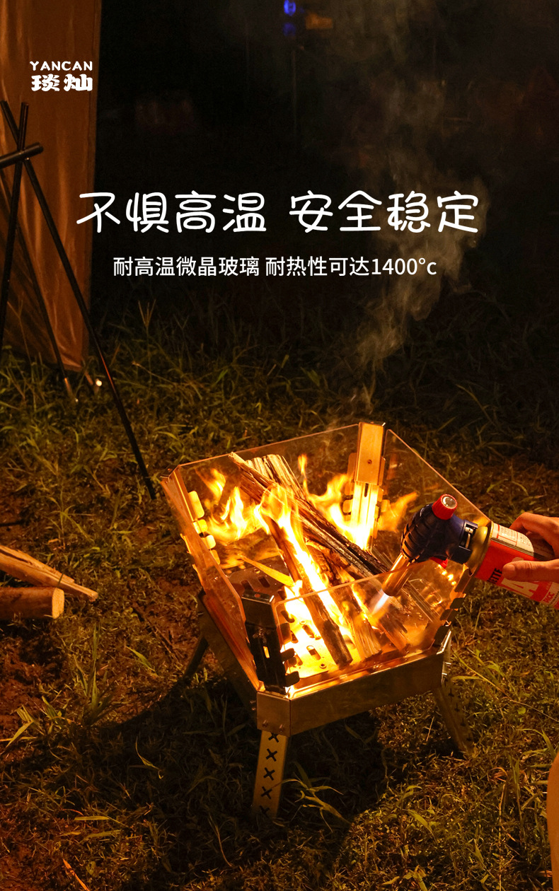 Xuancan 화재 댄스 화재 테이블 야외 캠핑 스테인레스 스틸 장작 스토브 휴대용 접이식 캠프 파이어 랙 미결정 유리