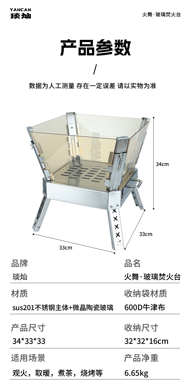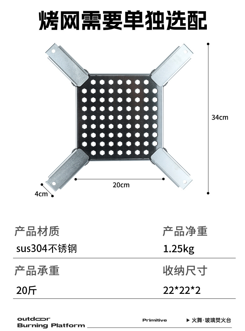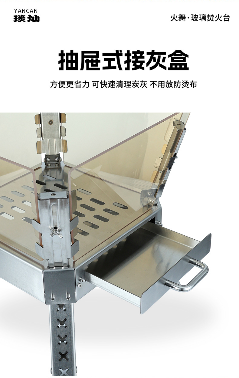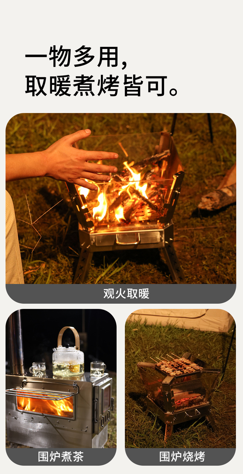 Xuancan 화재 댄스 화재 테이블 야외 캠핑 스테인레스 스틸 장작 스토브 휴대용 접이식 캠프 파이어 랙 미결정 유리