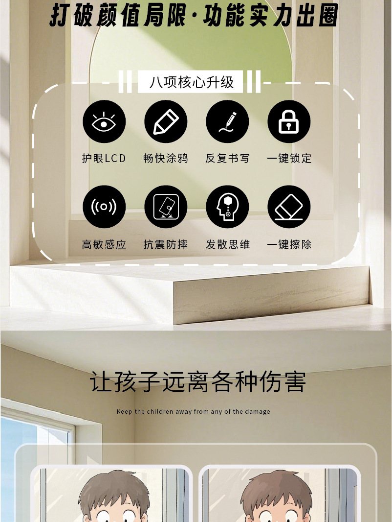 LCD 어린이 드로잉 보드는 전자 필기 보드 LCD 만화 드로잉 보드를 제거 할 수 있습니다. 원클릭 화면 청소 머리카락 세대스토어 가기
