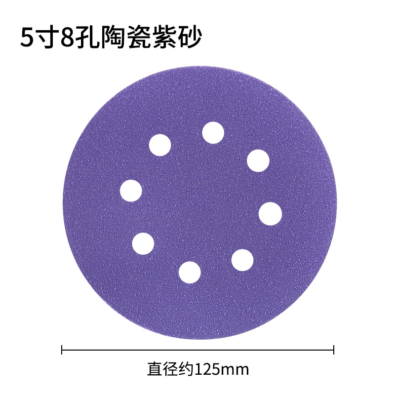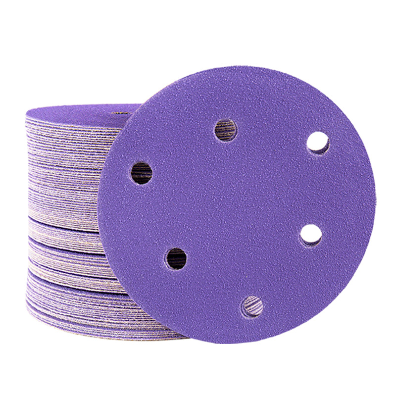 세라믹 보라색 사포 5인치 8홀 6인치 17홀 연마용 벨크로 건식 연마 광택 원형 디스크 자체 접착 벨크로 사포
