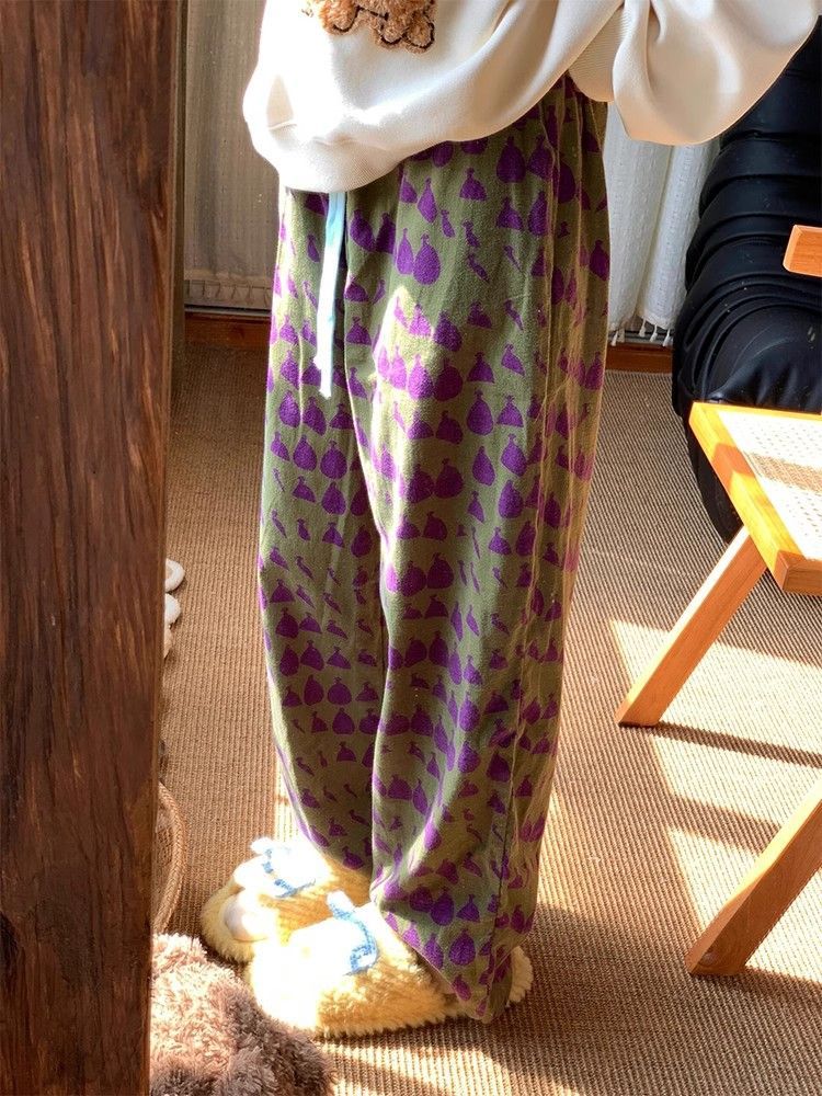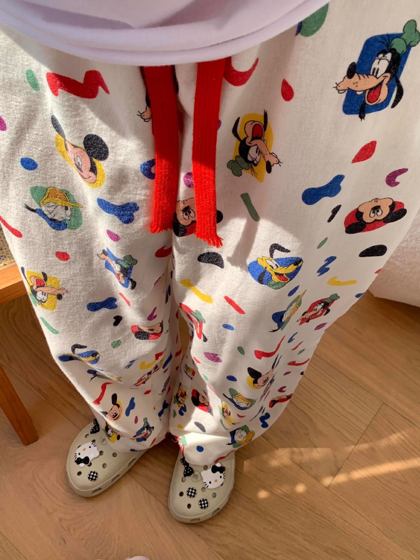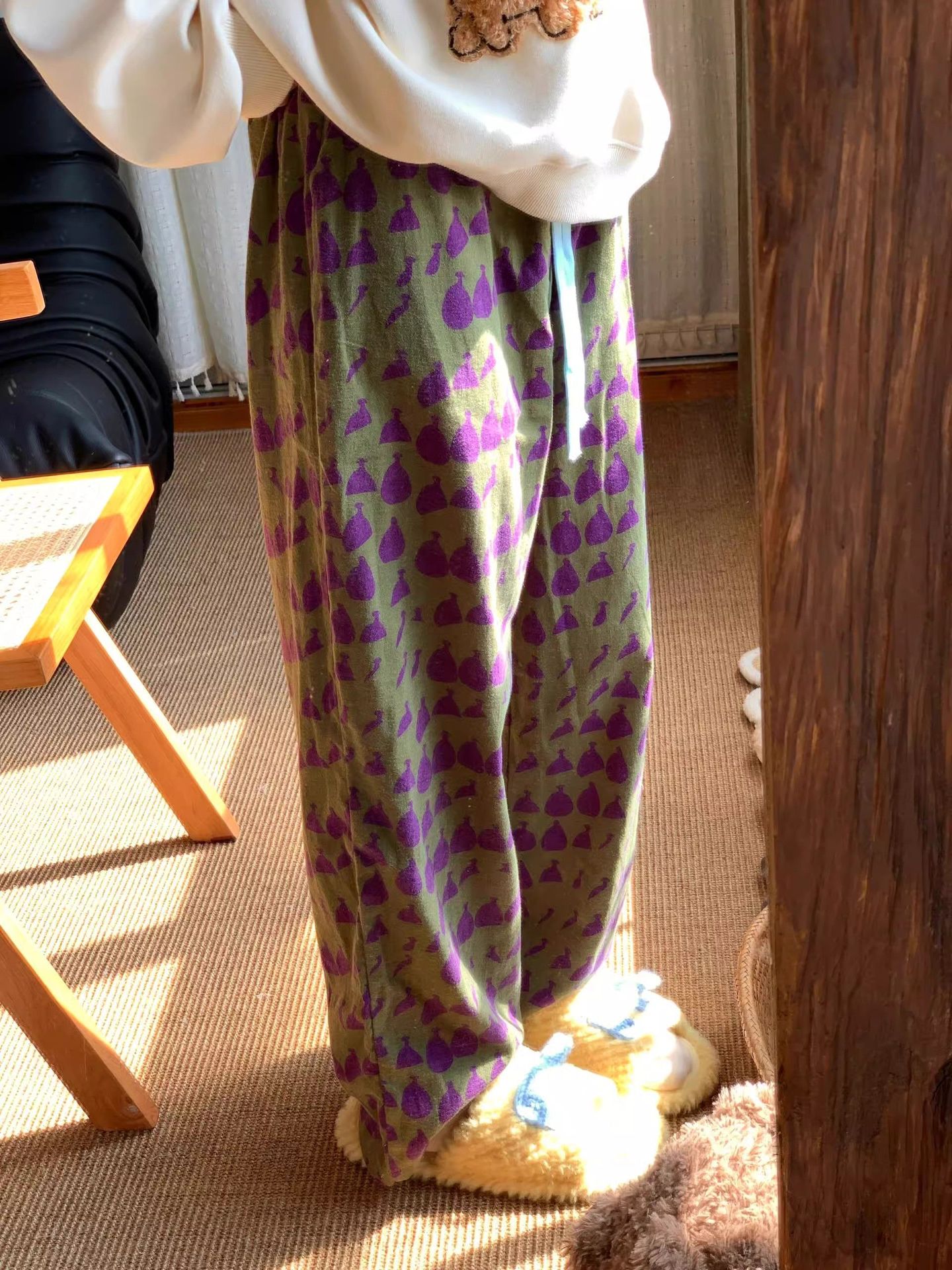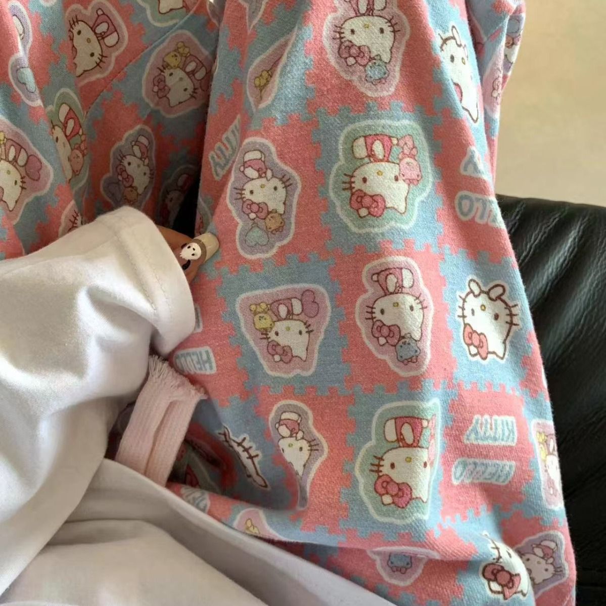 밀크 블루 만화 고양이 봄과 가을 새로운 도착 파자마 바지 여성 느슨한 편안한 인터넷 인기 걷는 바지 한국식 의류 홈 바지