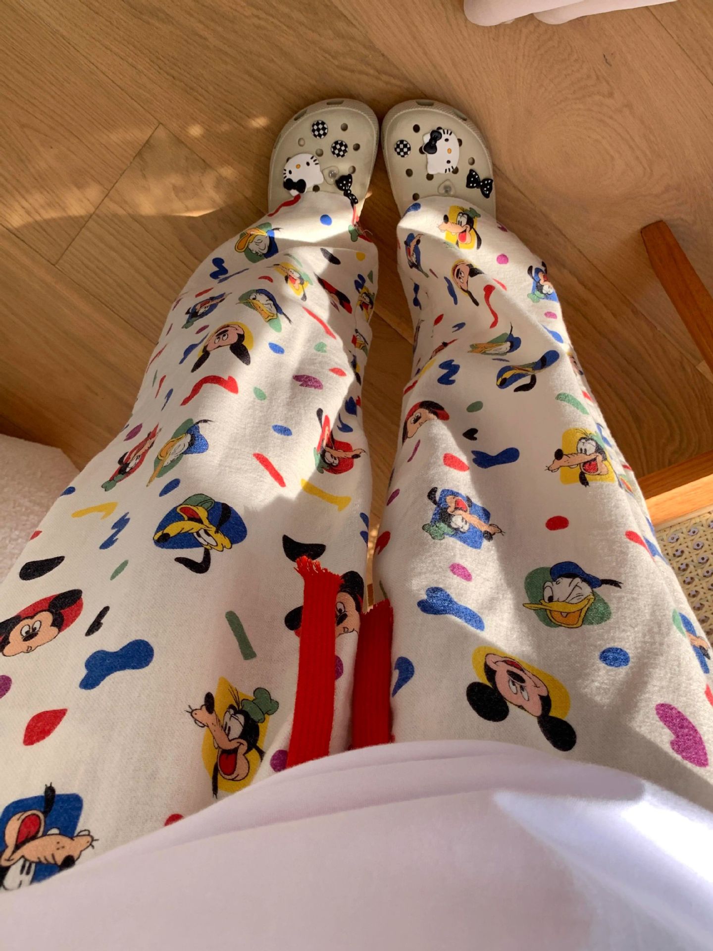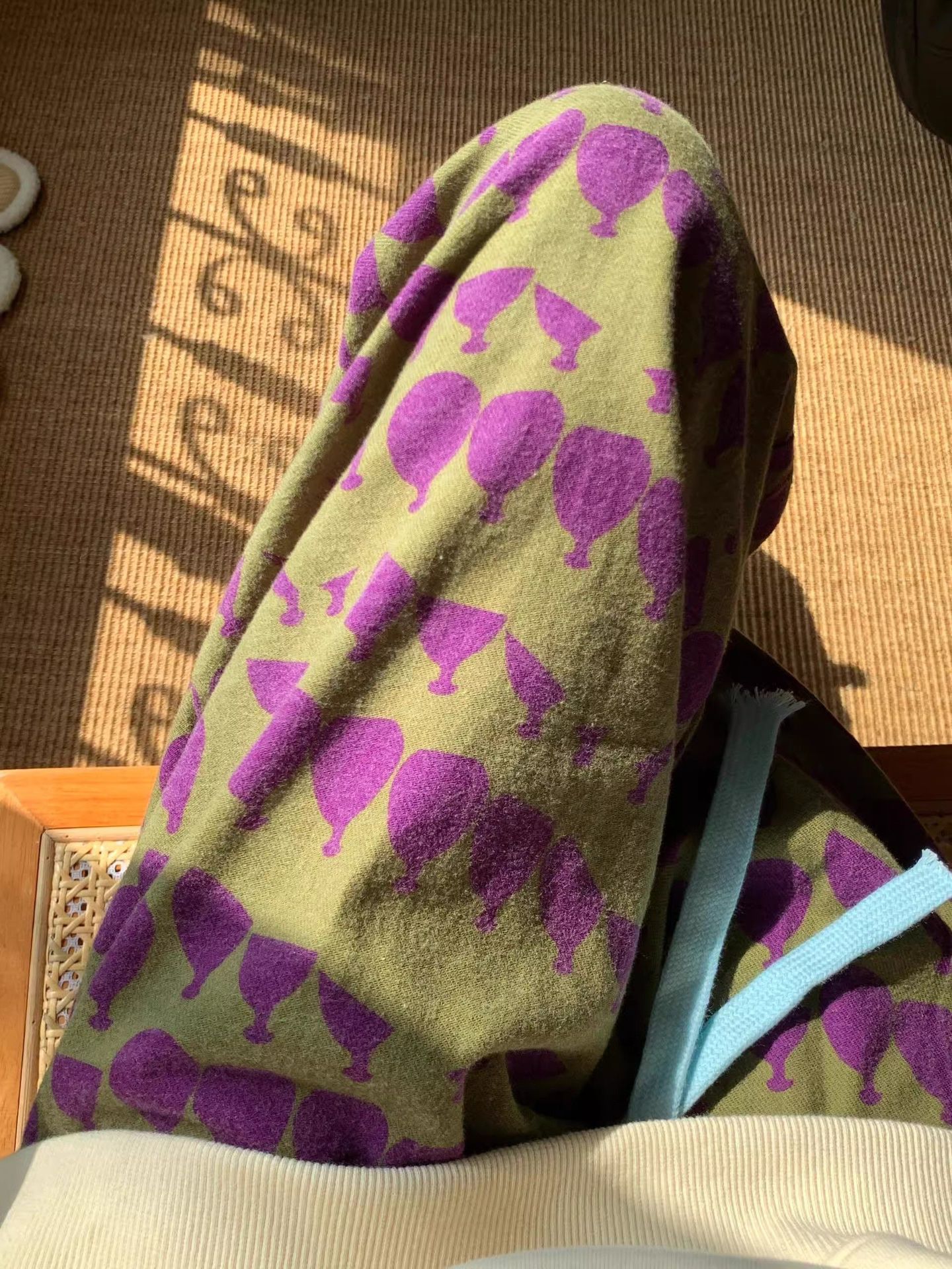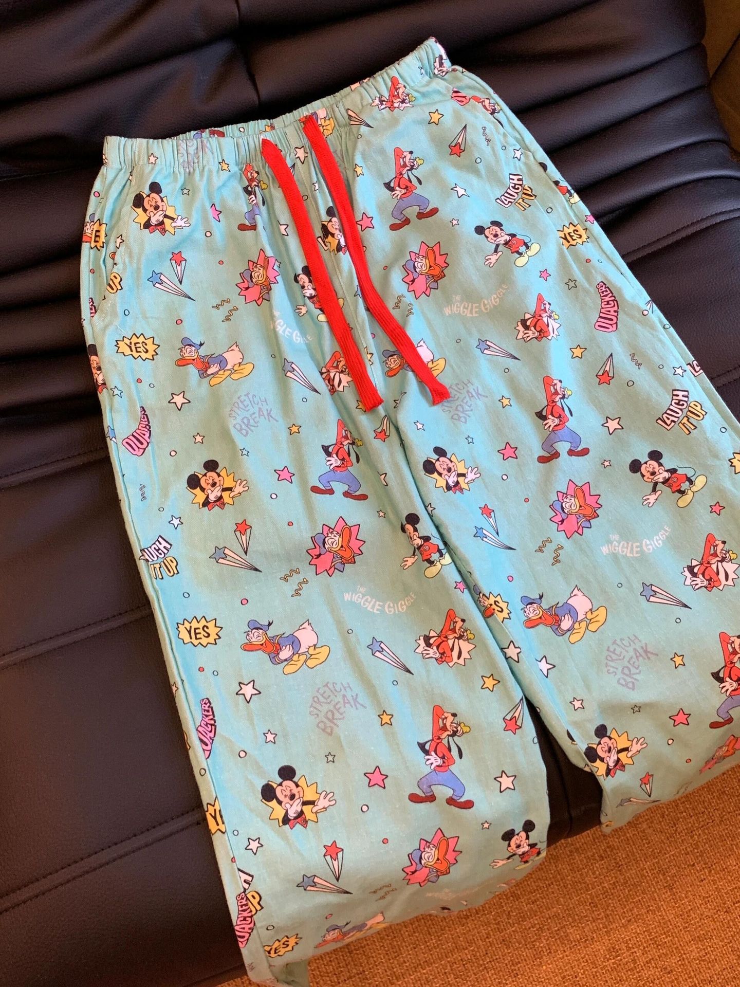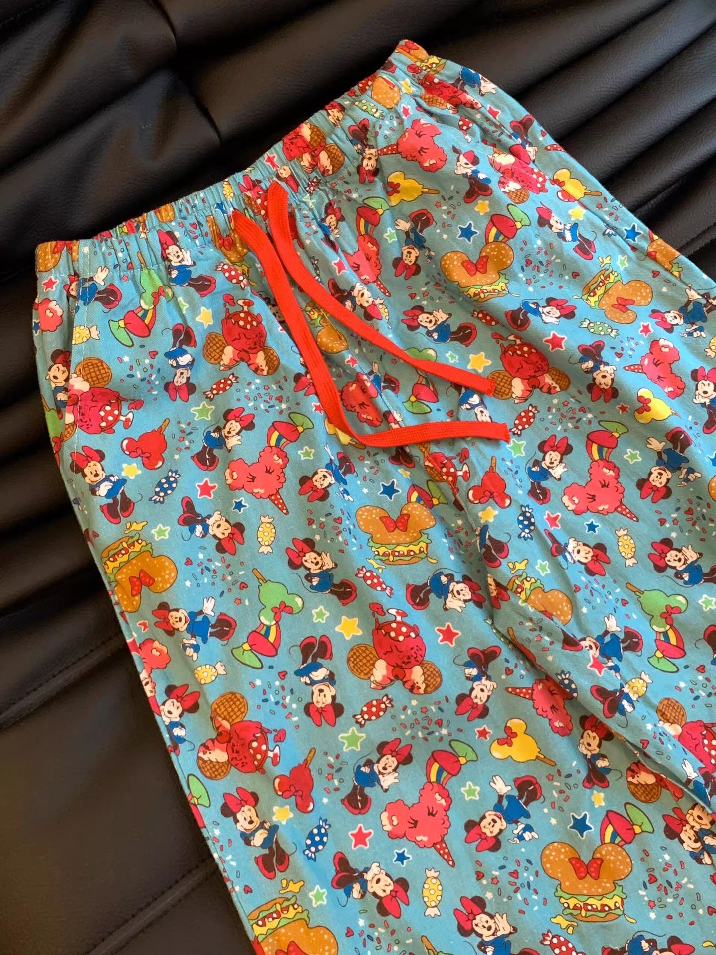 밀크 블루 만화 고양이 봄과 가을 새로운 도착 파자마 바지 여성 느슨한 편안한 인터넷 인기 걷는 바지 한국식 의류 홈 바지