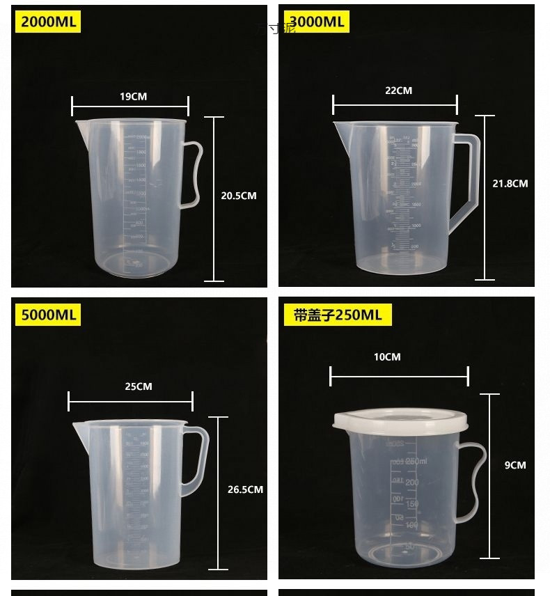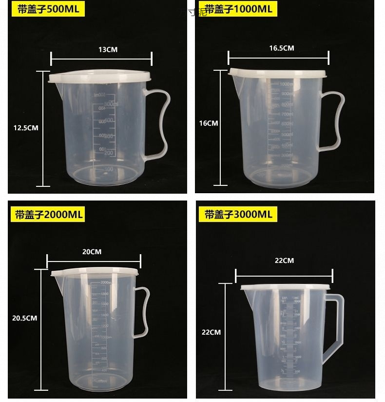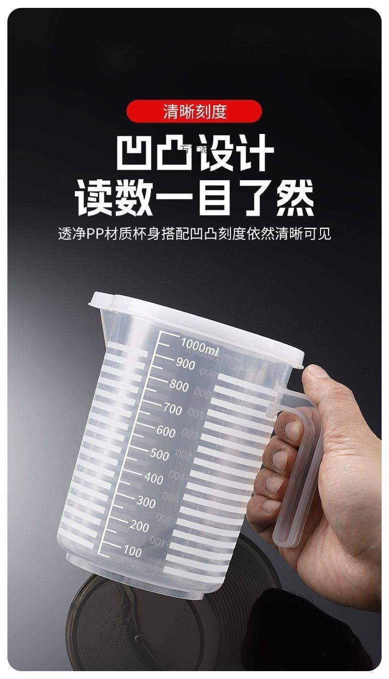 플라스틱 측정 컵 스케일 컵 급수 냄비 급수 컵 식품 등급 고온 가정용 두꺼운 측정 컵 뚜껑 도매