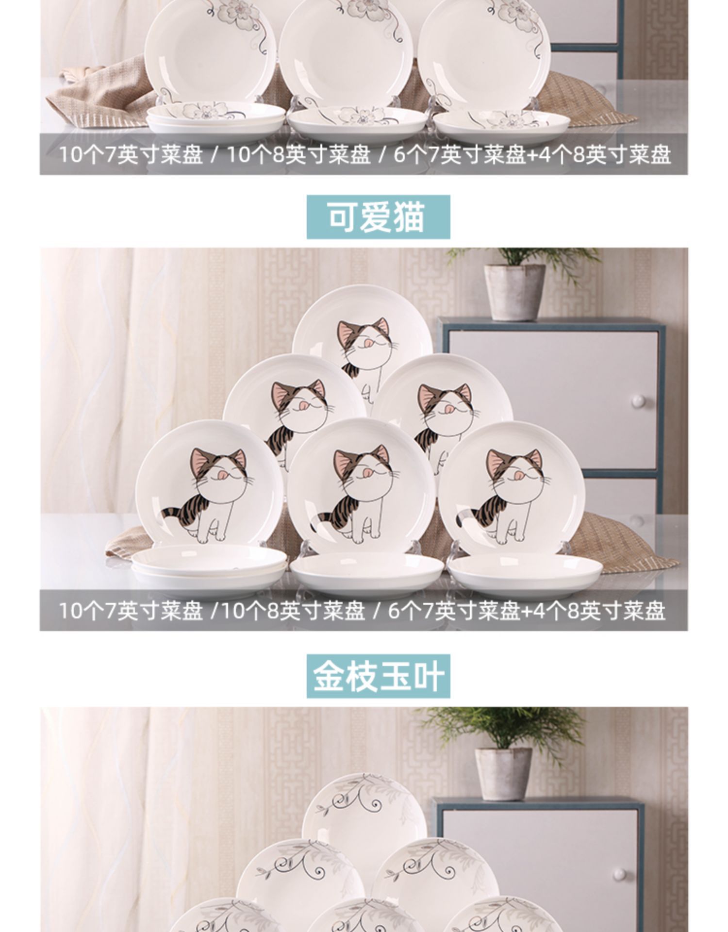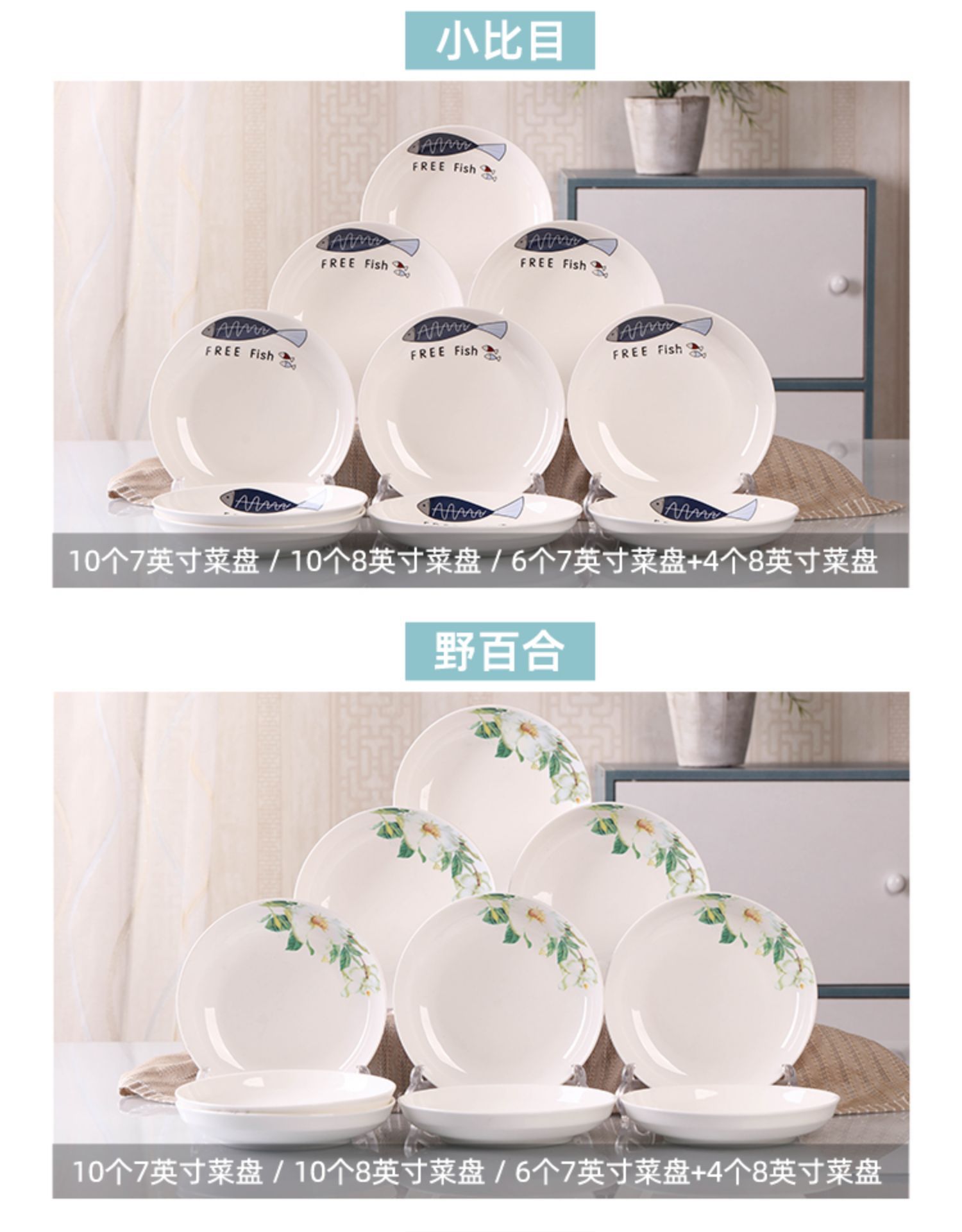 -가정용 10 접시 세라믹 식기 라운드 조합 간단한 접시 세트 새로운 생선 접시 창조적 인 디너 플레이트스토어 가기