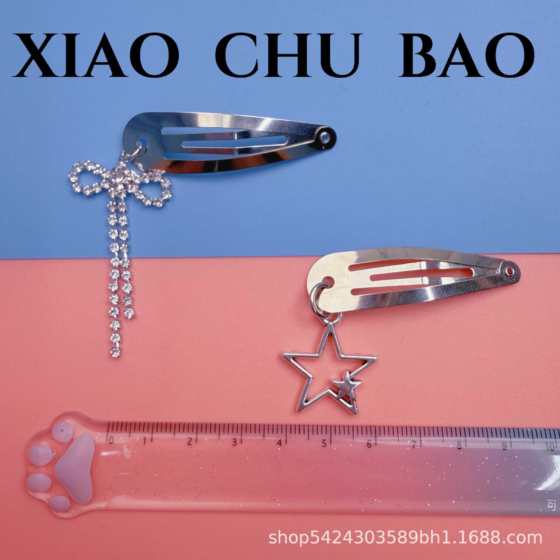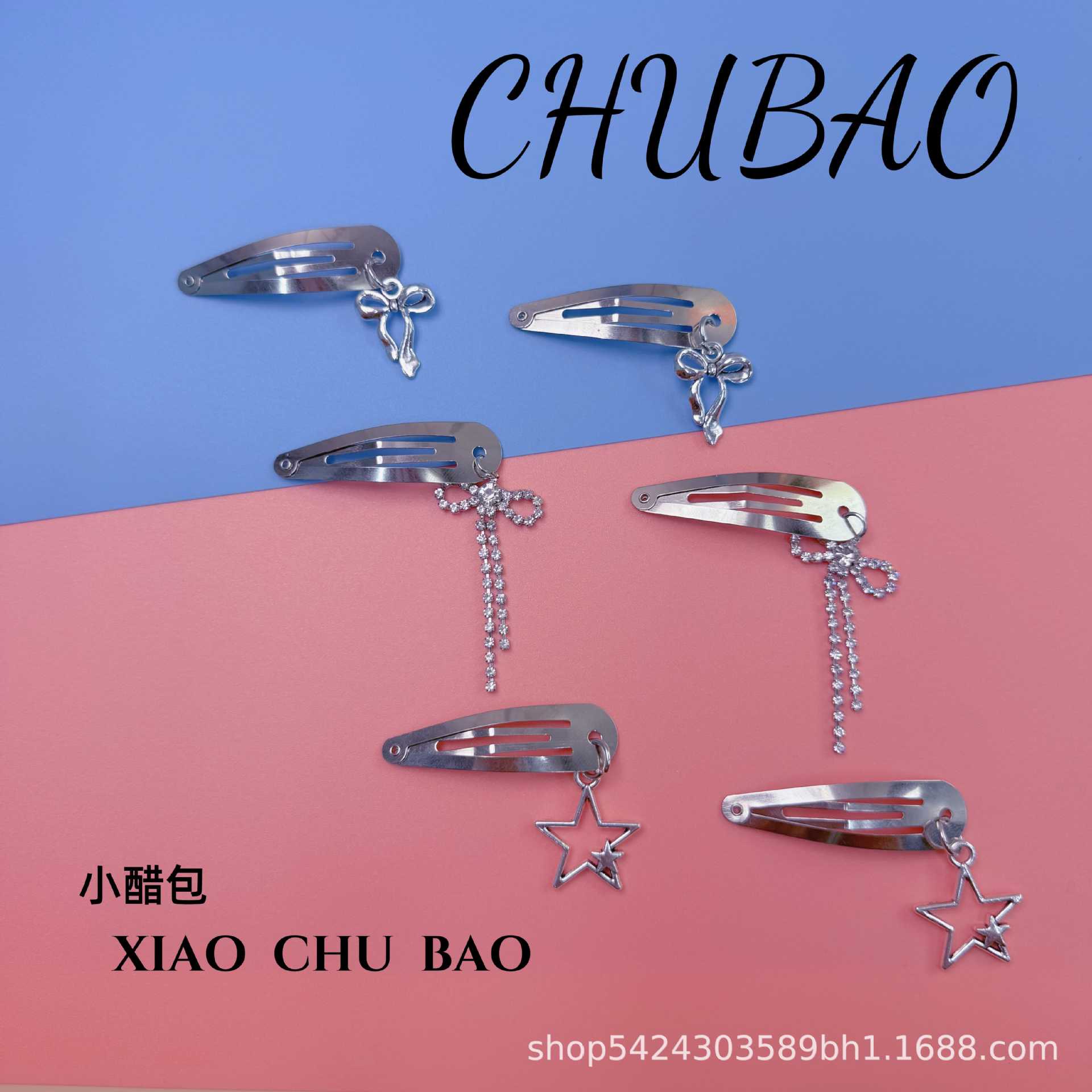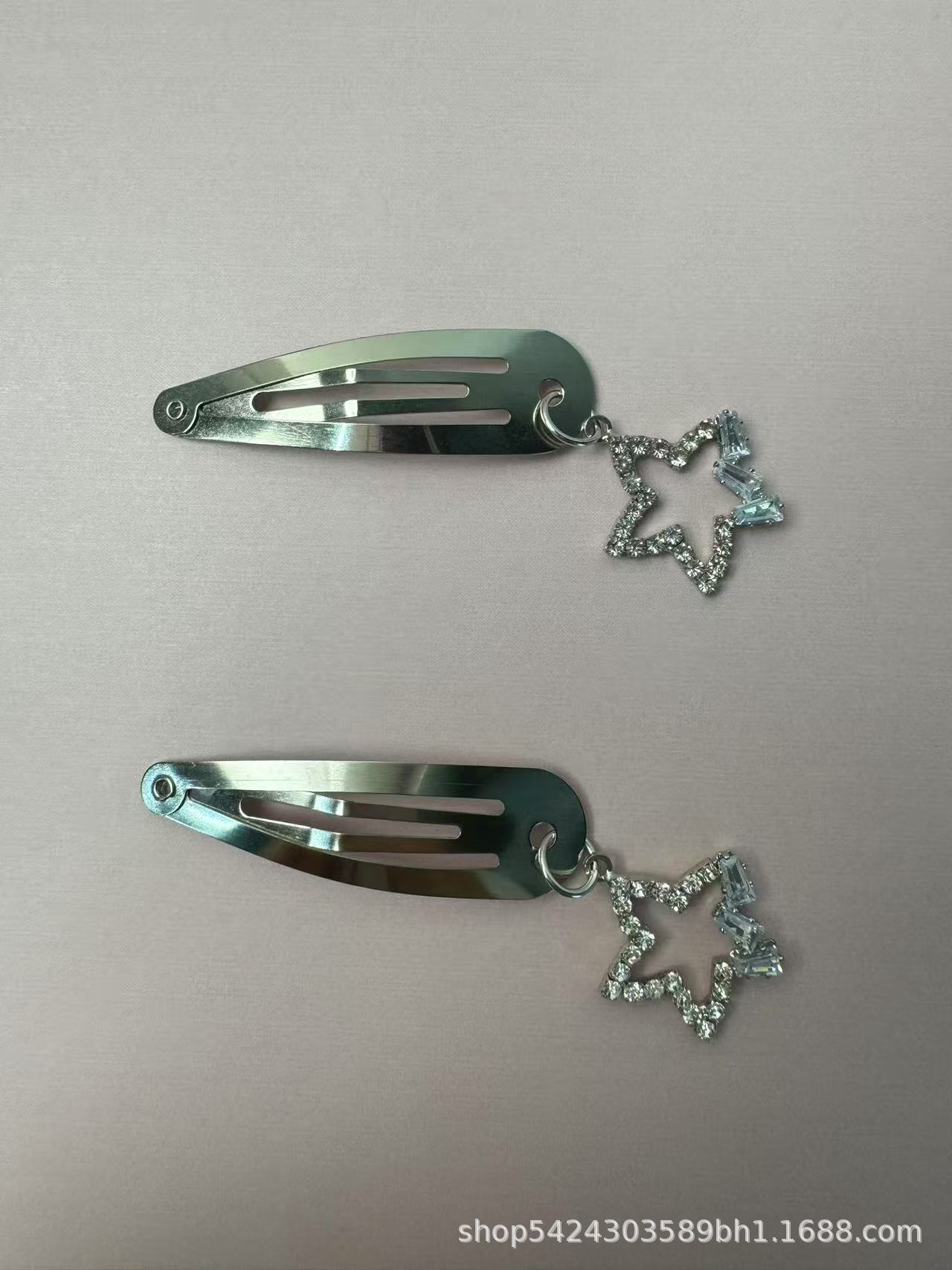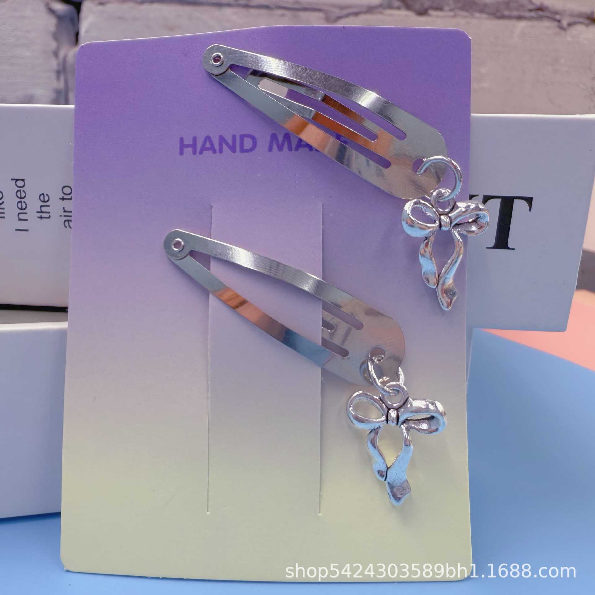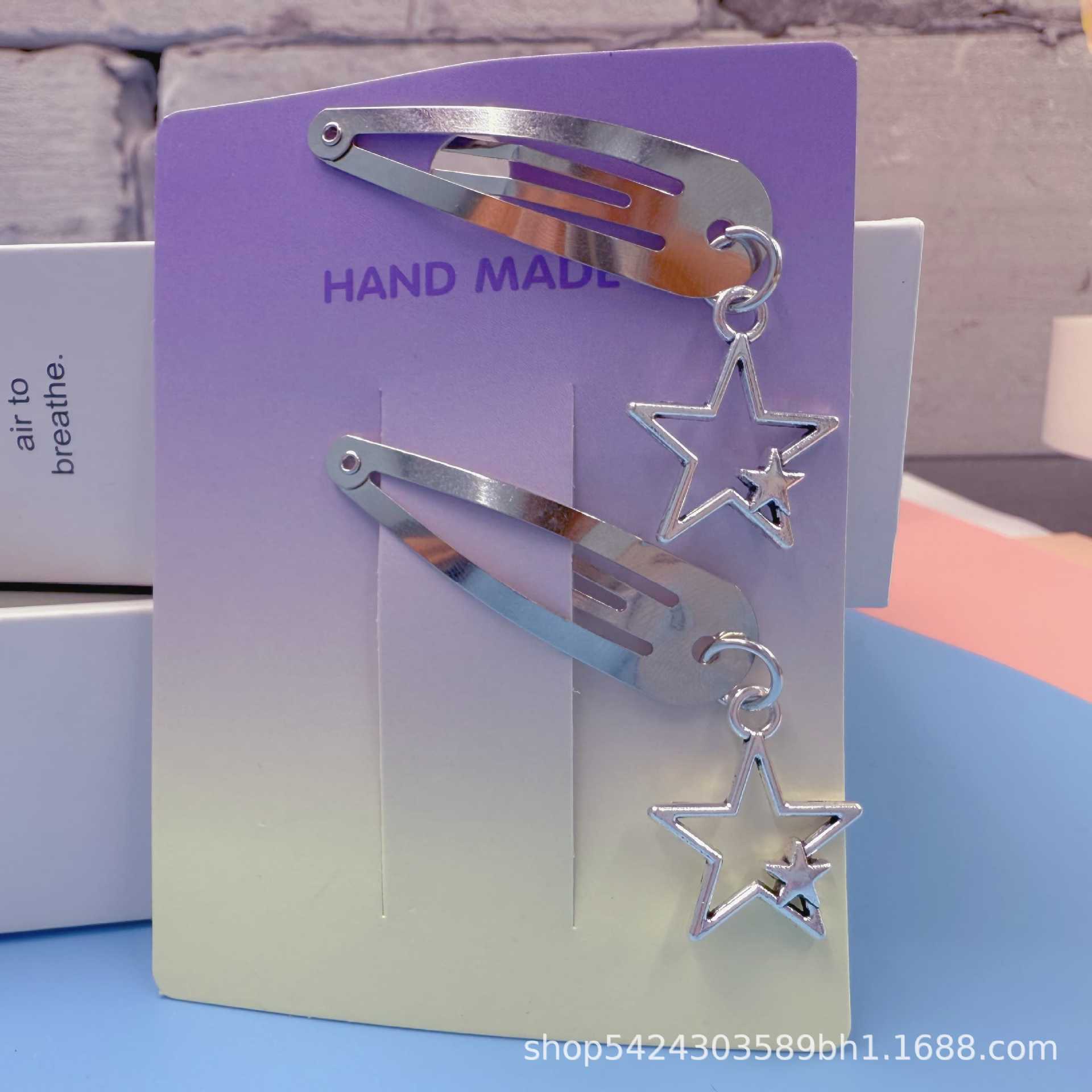 실버 금속 헤어 클립 BB 클립 헤어 액세서리 펜던트 금속 Y2K 밀레니엄 스파이스 달콤한 쿨 브레이크 헤어 카드스토어 가기