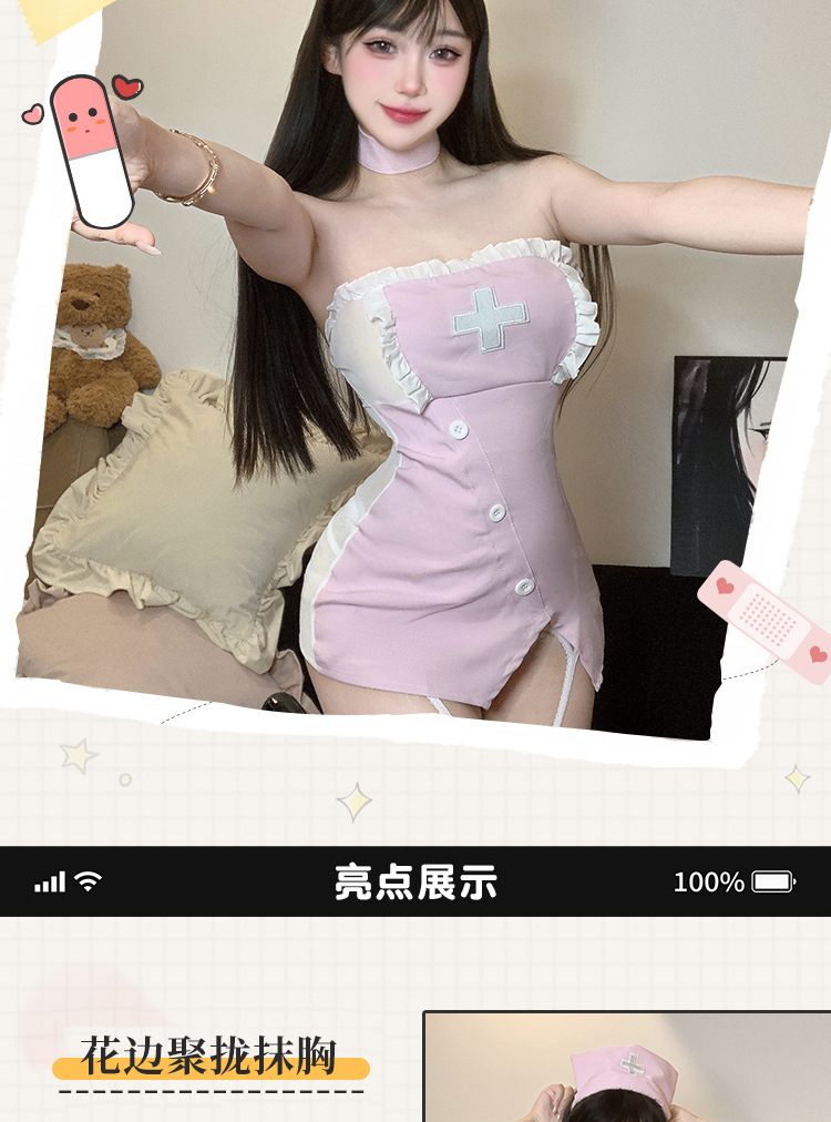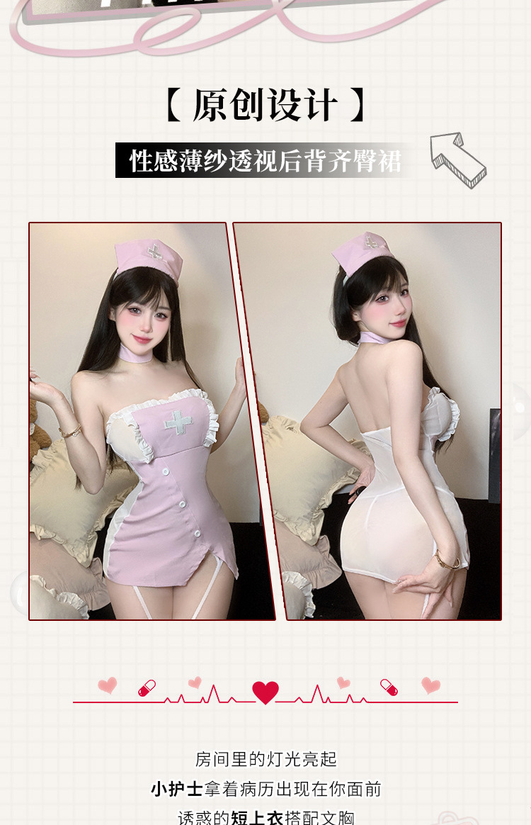 섹시한 란제리 순수한 욕망 귀여운 간호사 유니폼 섹시한 엉덩이 스커트 작은 가슴 무료 세트 잠옷 여성 2176스토어 가기