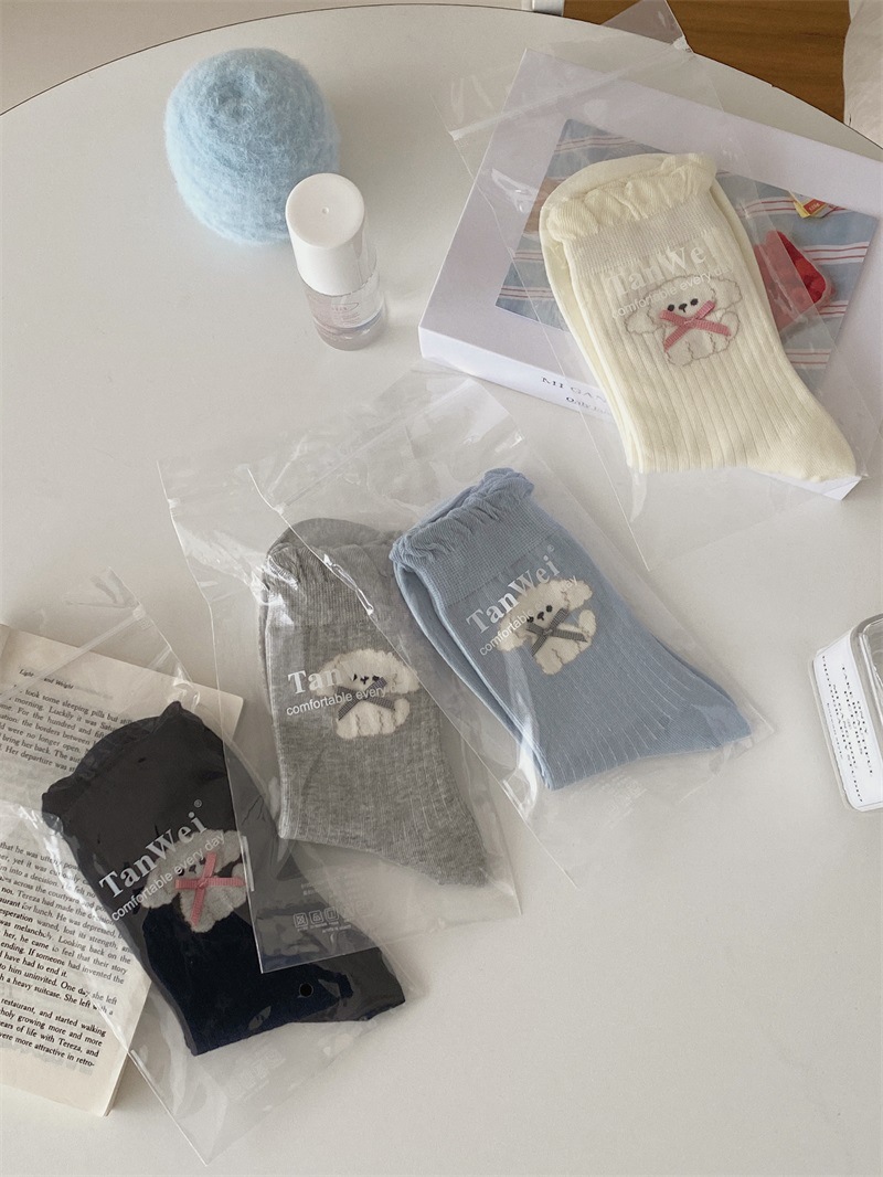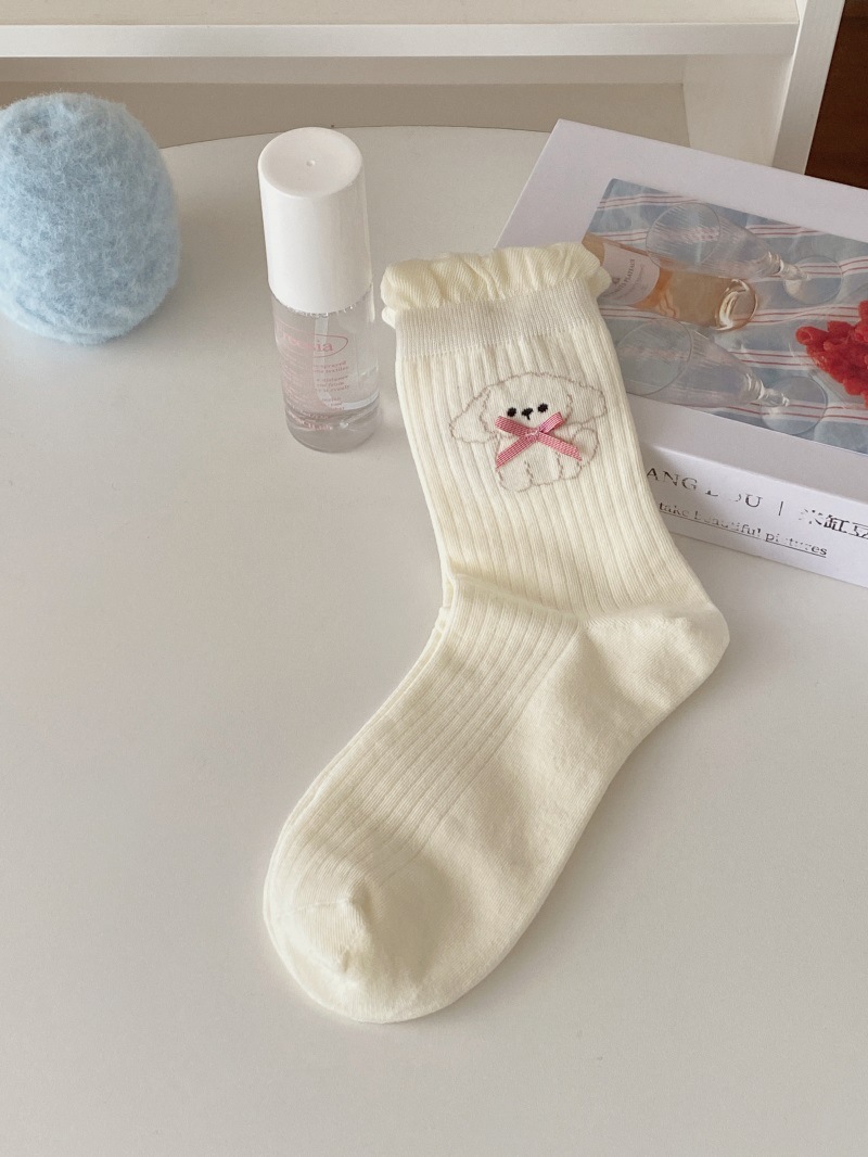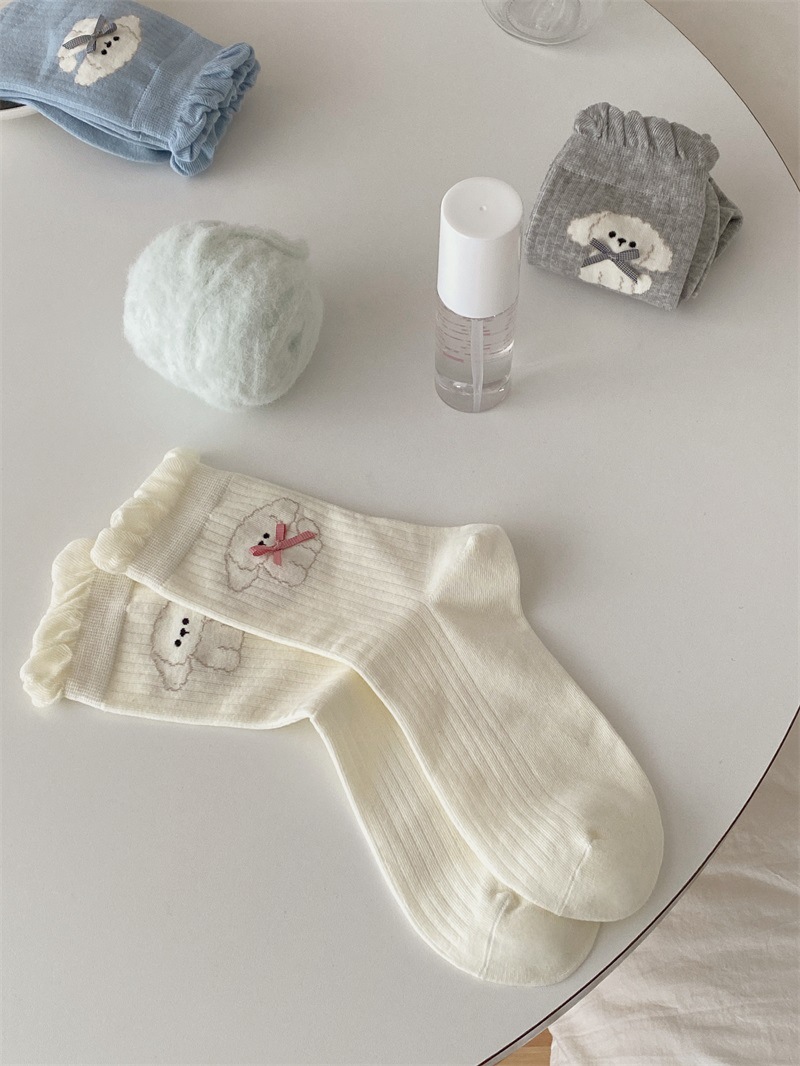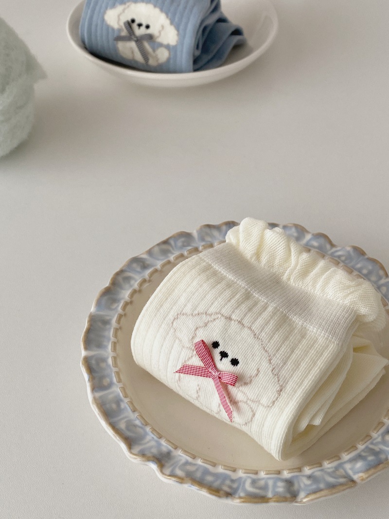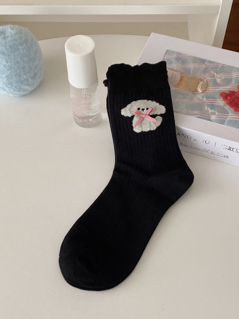25 일본과 한국 강아지 자카드 미드 튜브 양말 봄과 여름 버블 입 여성용 코튼 양말 Jk 보우 여성 소녀 양말 아카데미 스타일스토어 가기