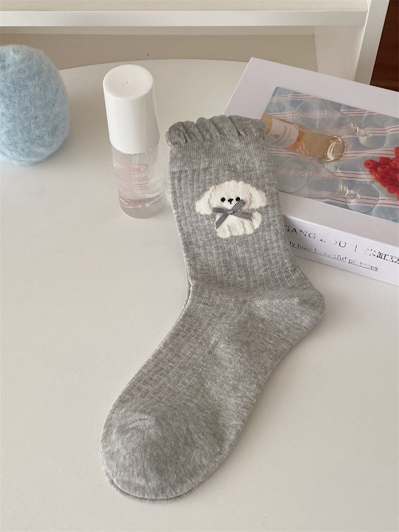 25 일본과 한국 강아지 자카드 미드 튜브 양말 봄과 여름 버블 입 여성용 코튼 양말 Jk 보우 여성 소녀 양말 아카데미 스타일