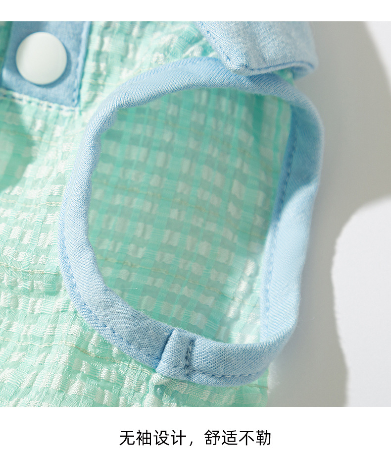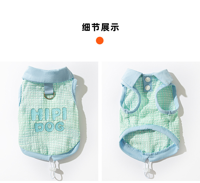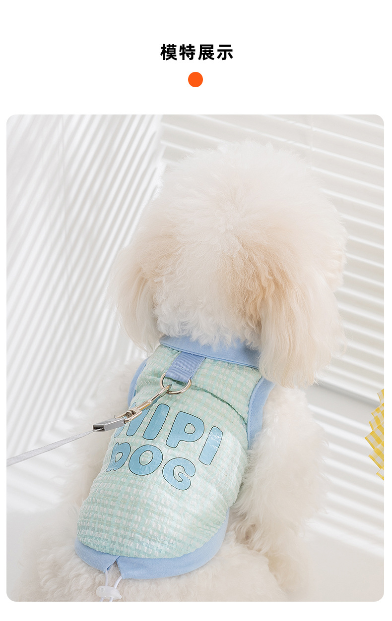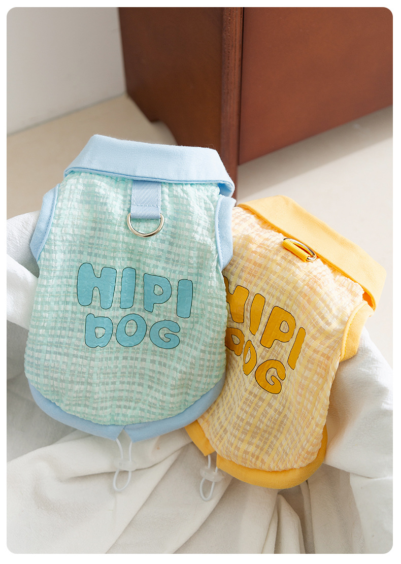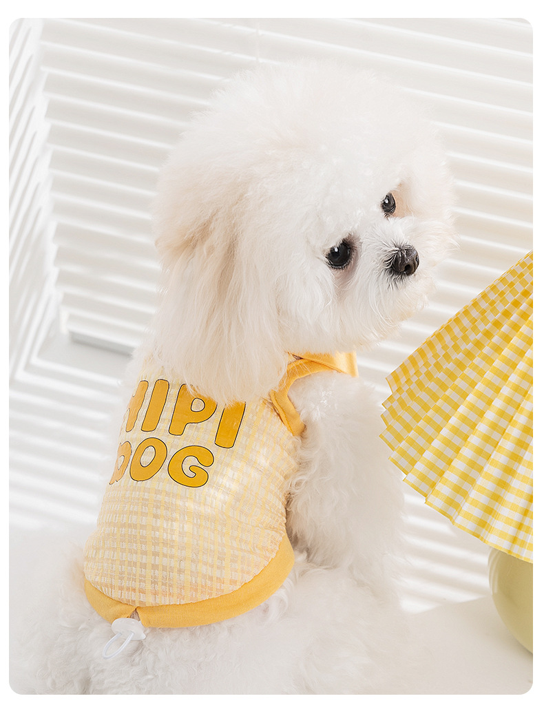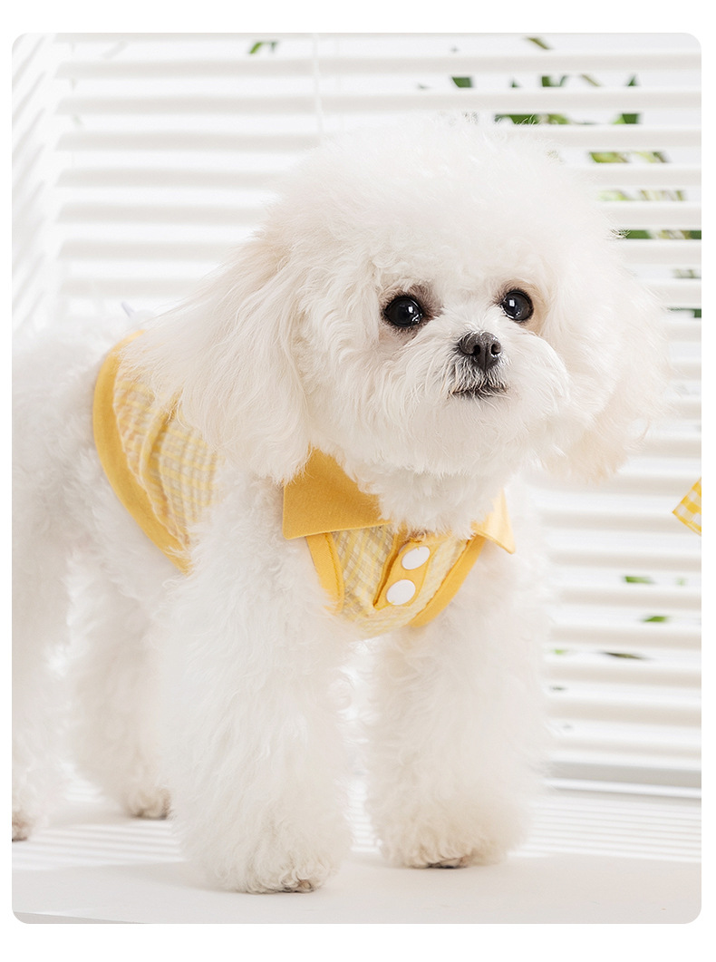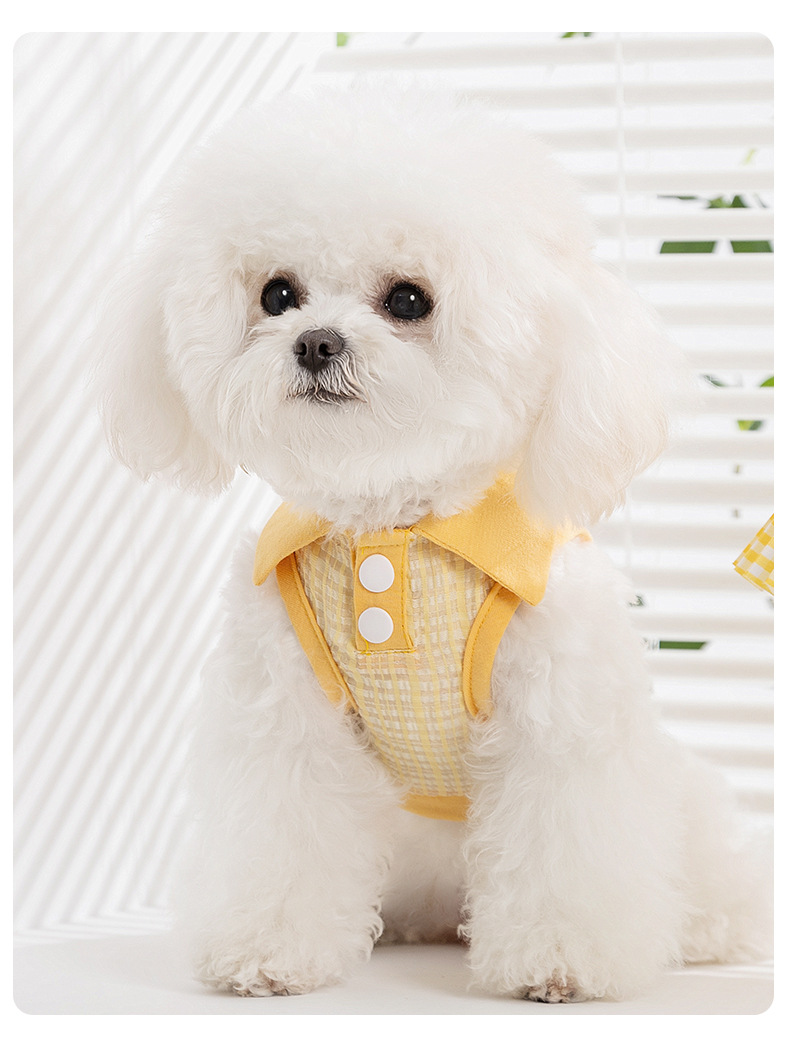 봄과 여름 개 자카드 격자 무늬 옷깃 끈이 두 다리 조끼 작은 개 테디 고양이 티셔츠 애완 동물 옷