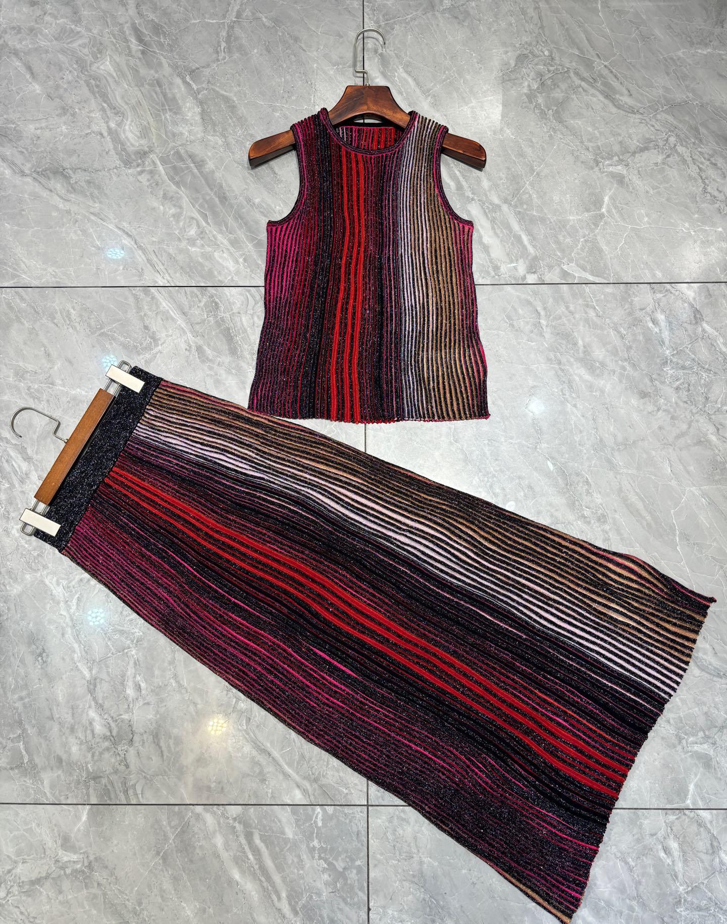 Miyake, 2025 새로운 디자인 센스 하이 퀄리티 패션 모든 경기 연령 감소 슬리밍 유럽과 미국 스타일 스트라이프 세트 여성