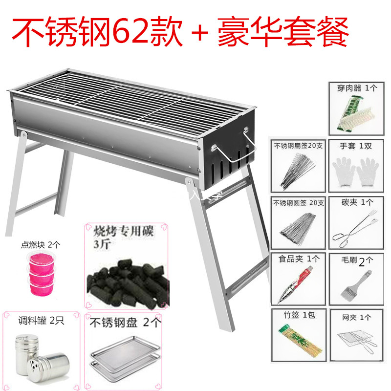 바베큐 그릴 야외 가정용 숯 바베큐 스테인레스 스틸 두꺼운 접이식 바베큐 오븐 야외 바베큐 풀 세트스토어 가기