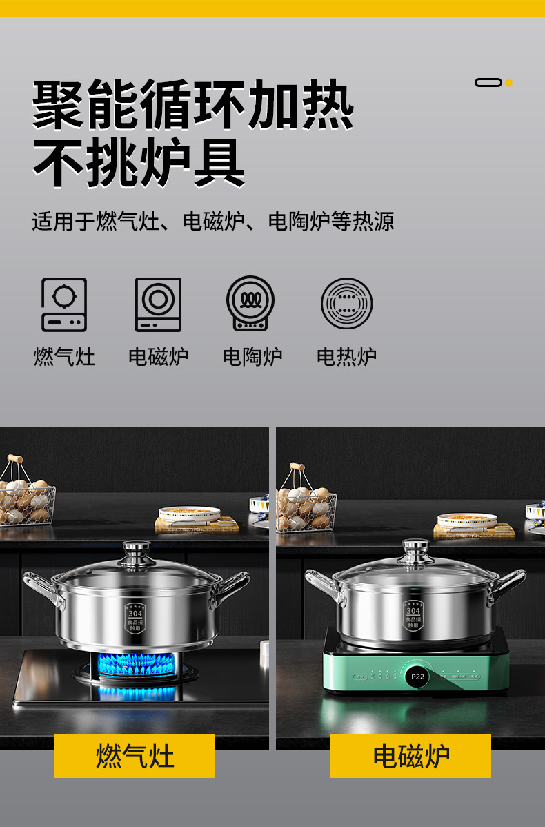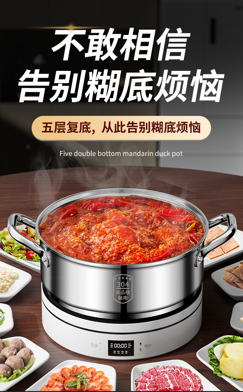 두꺼운 수프 냄비 304 스테인레스 스틸 유도 쿠커 가스 스토브 끓는 두꺼운 바이나럴 핫 팟 가정용 냄비 l 식품 등급 Zhen
