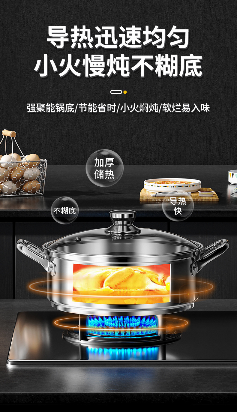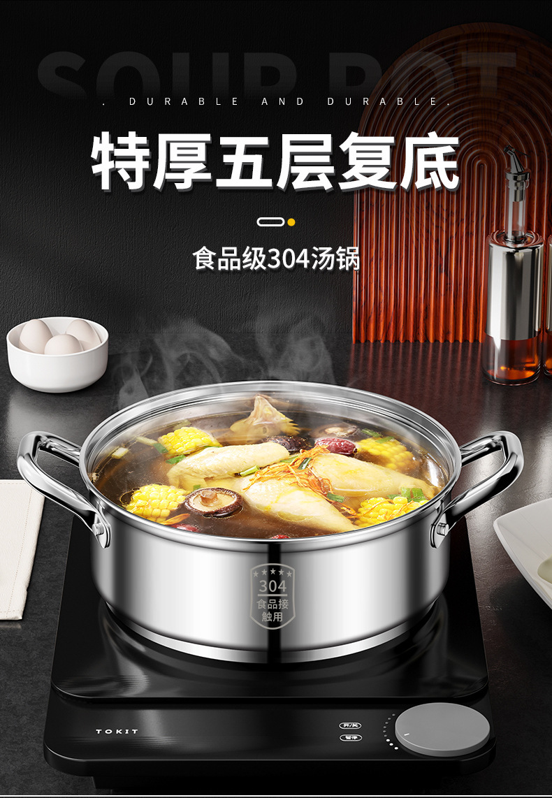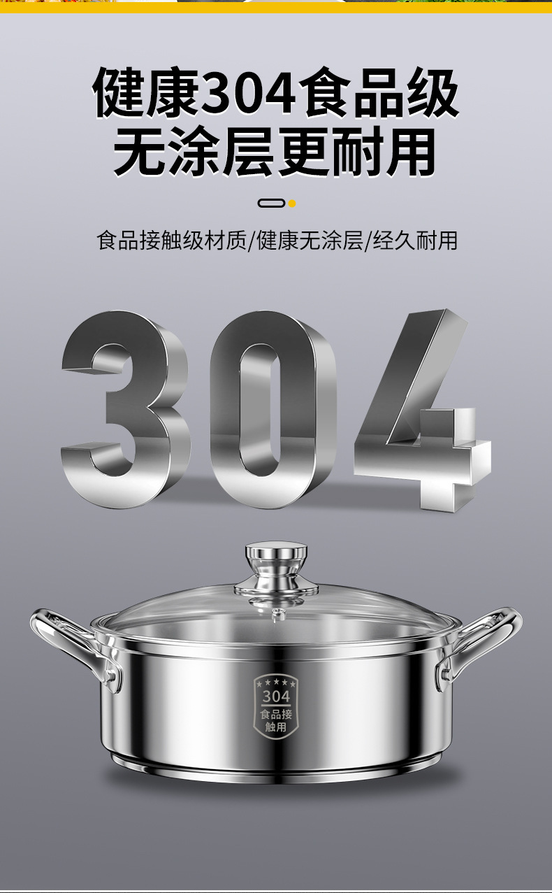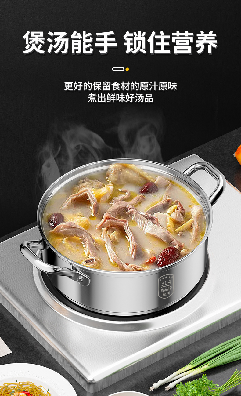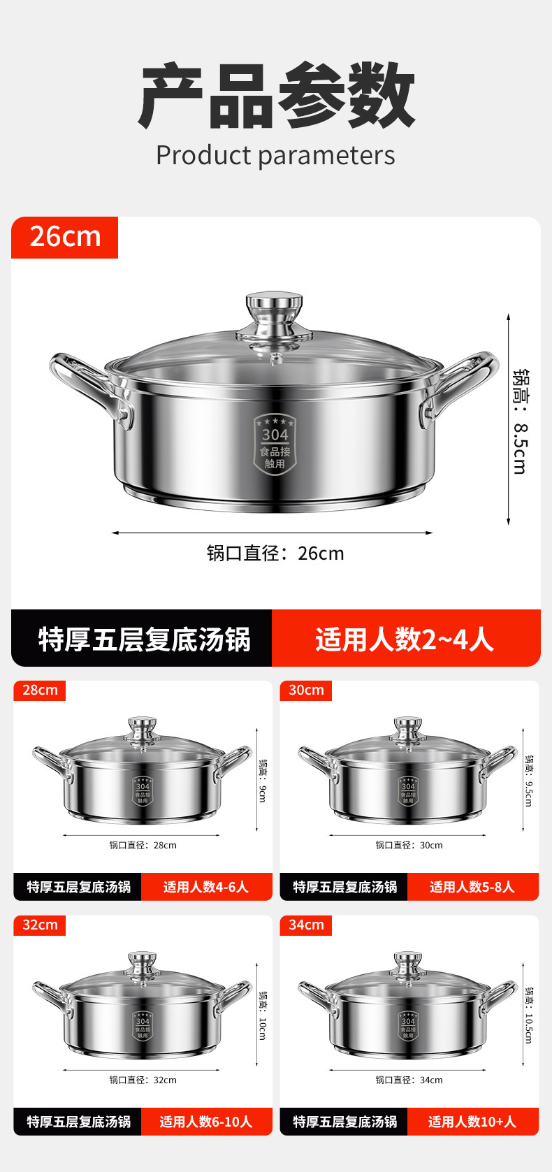 • [두꺼운 소재] 304 수프 냄비 - 28cm, 4-6인에게 적합