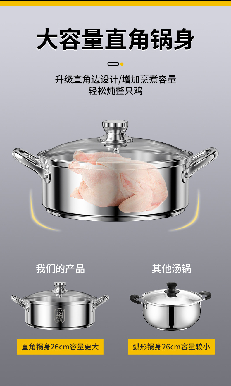 • [두꺼운 재료] 304 수프 냄비 - 26cm 2-3인용