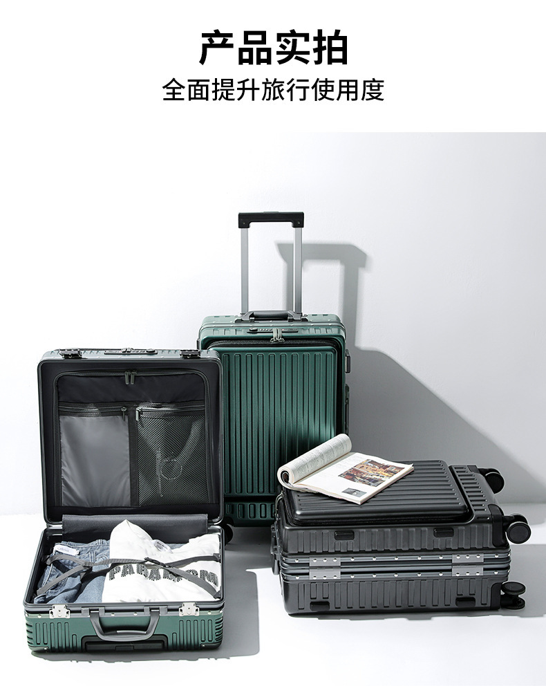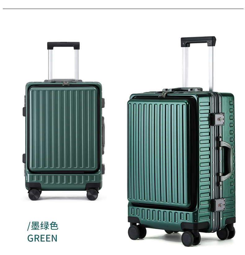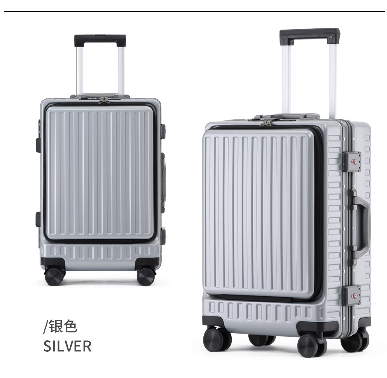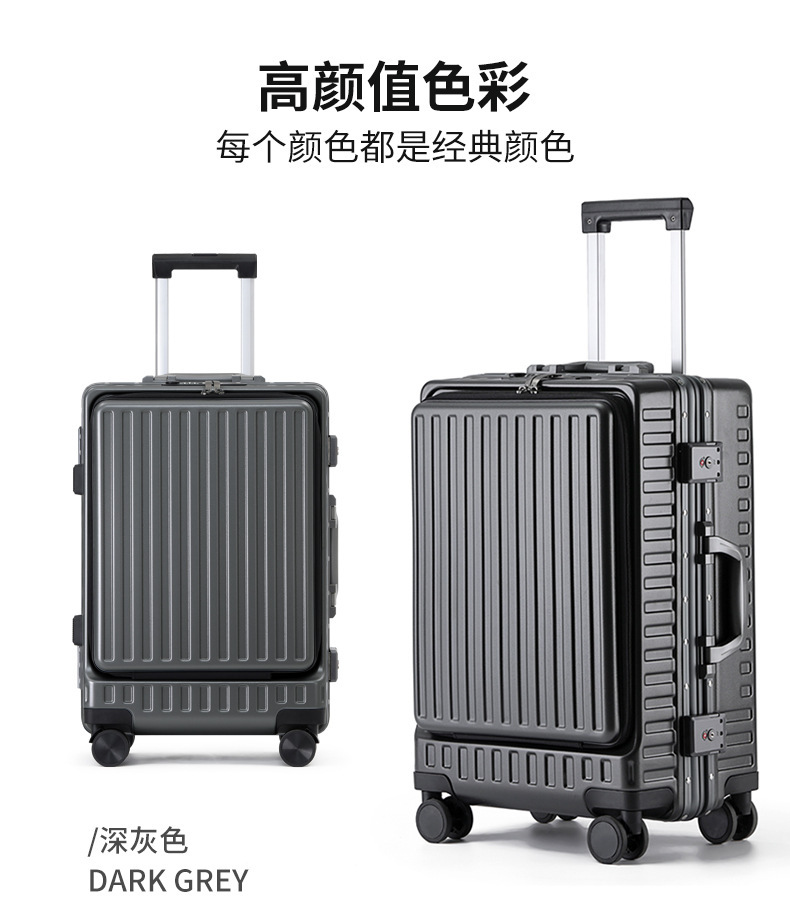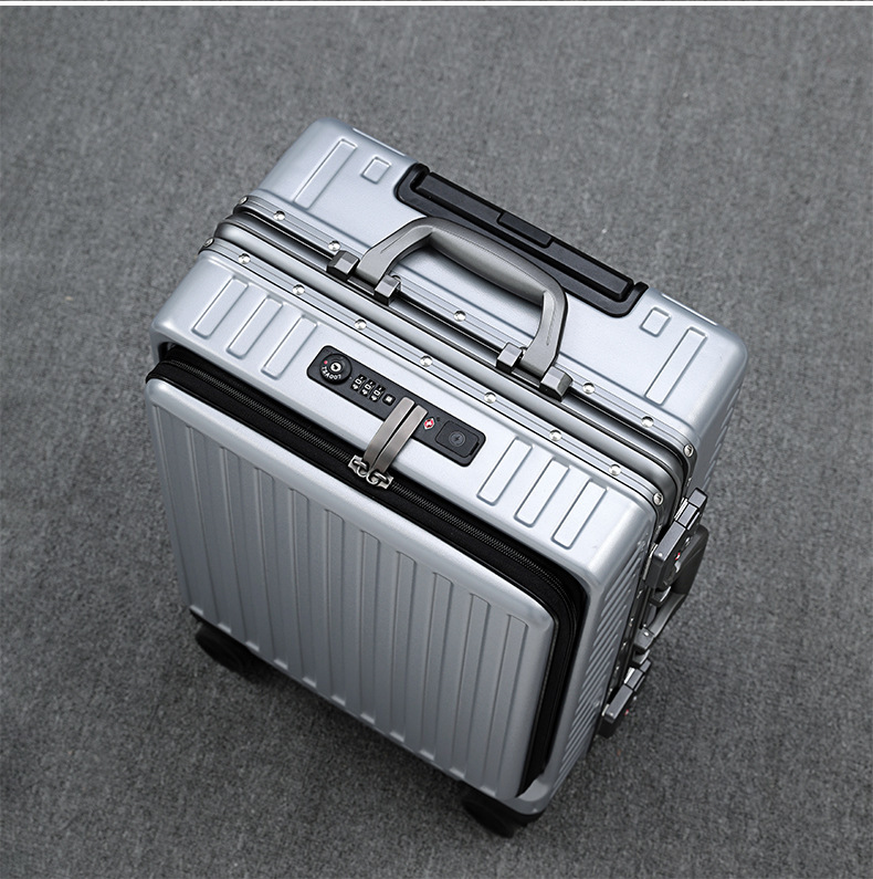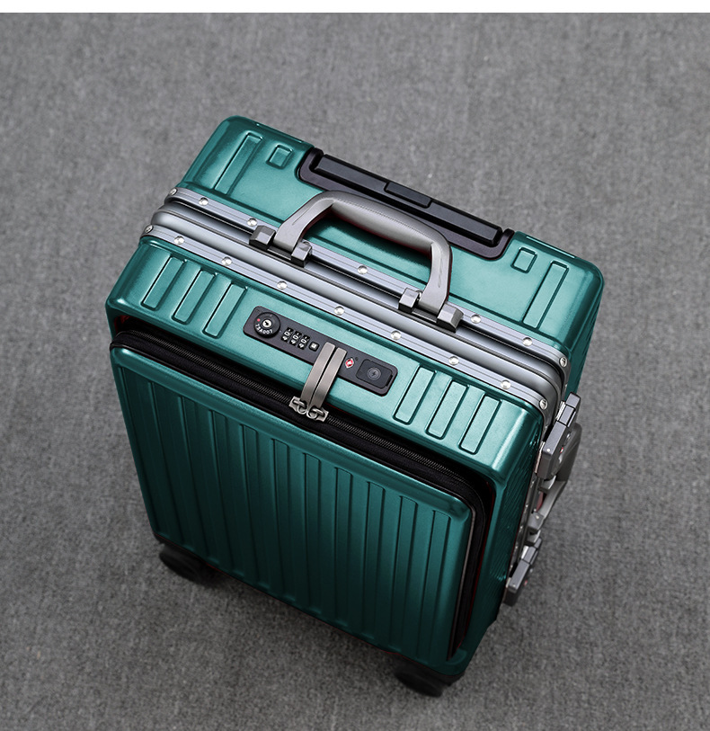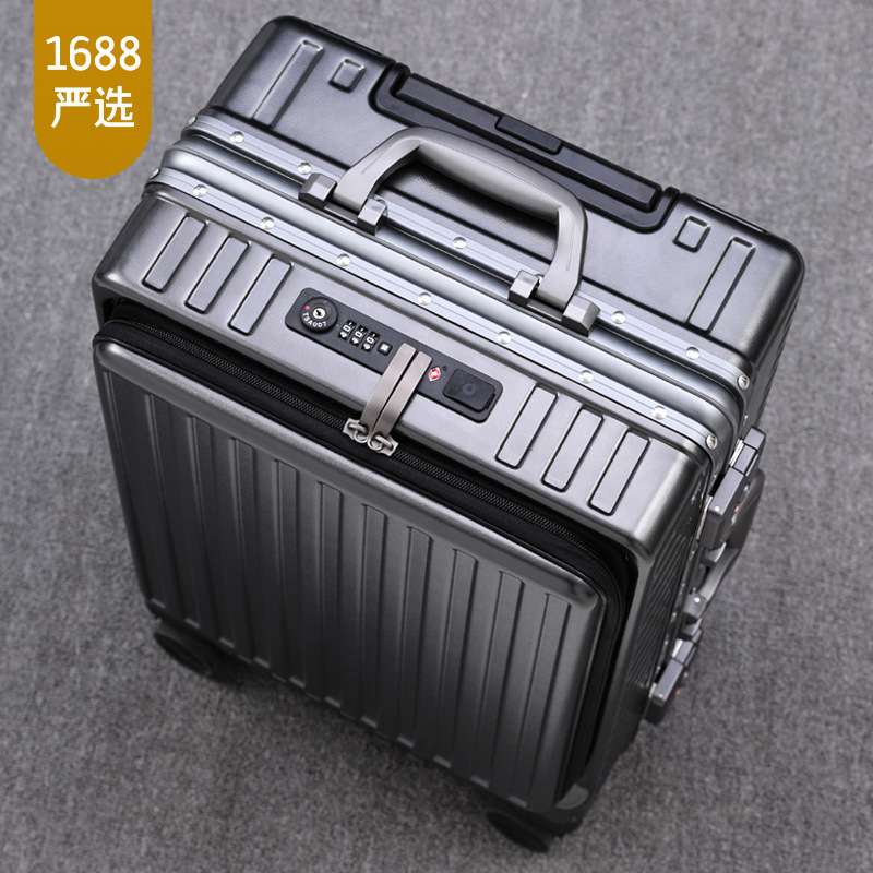 비즈니스 유니버설 휠 알루미늄 프레임 트롤리 케이스 사이드 오픈 수하물 케이스 남성 및 여성 노트북 탑승 비밀번호 가방 배치