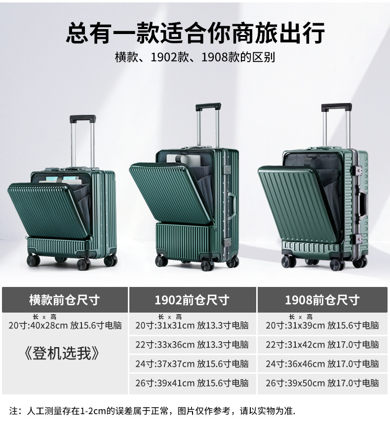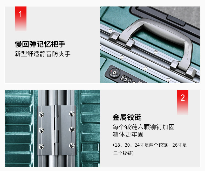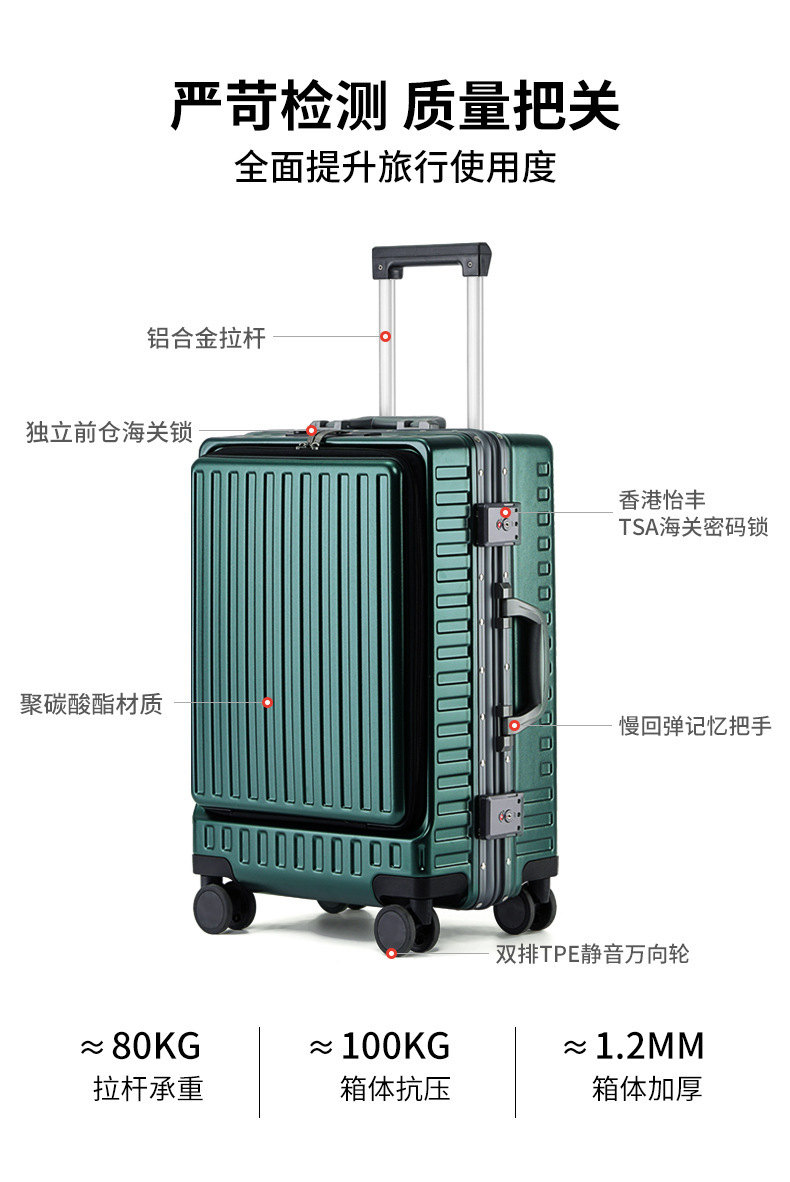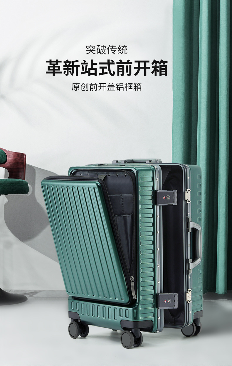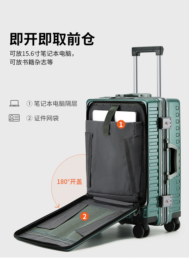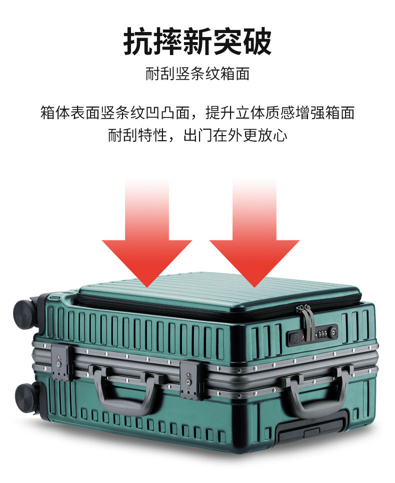 비즈니스 유니버설 휠 알루미늄 프레임 트롤리 케이스 사이드 오픈 수하물 케이스 남성 및 여성 노트북 탑승 비밀번호 가방 배치