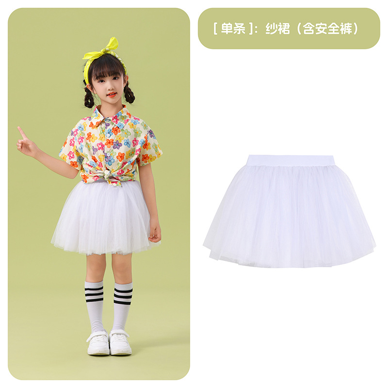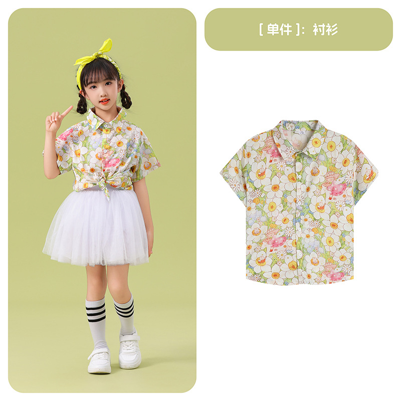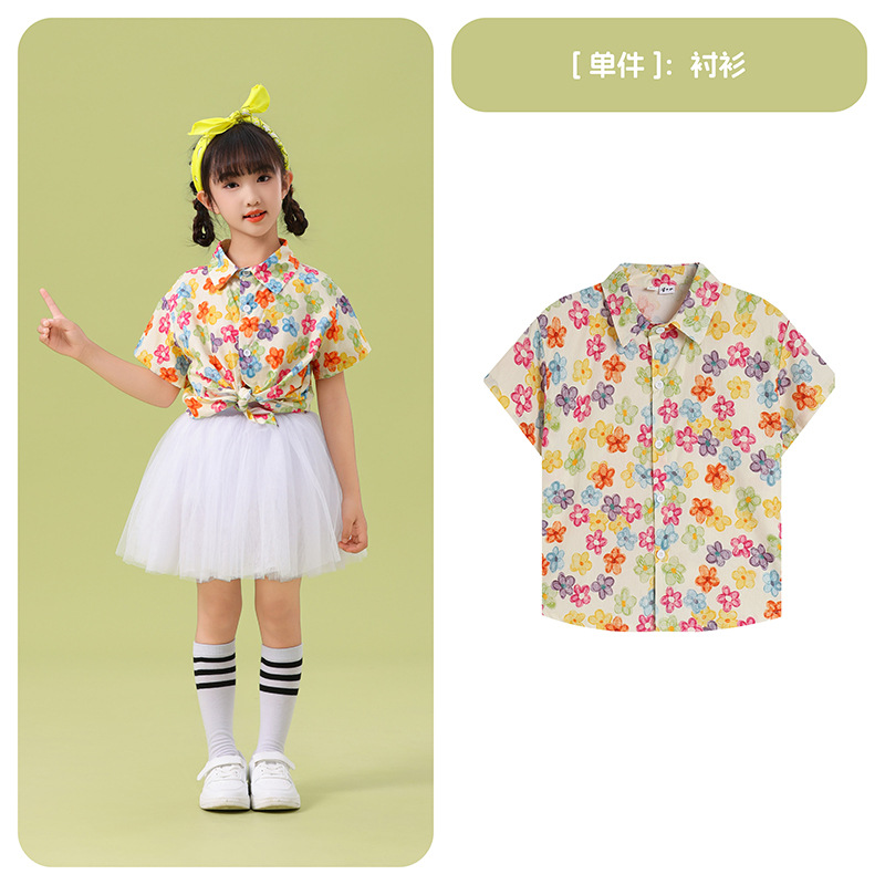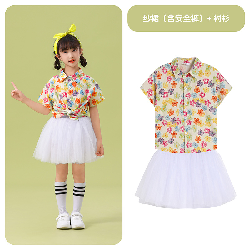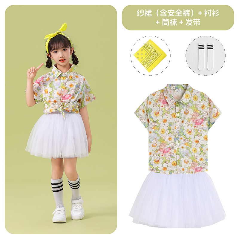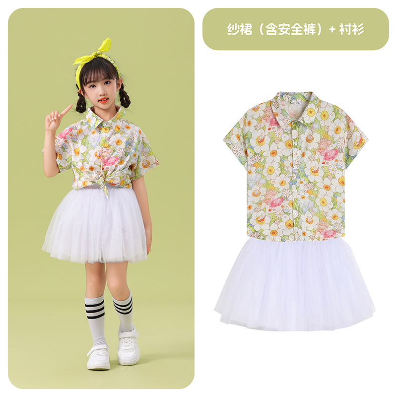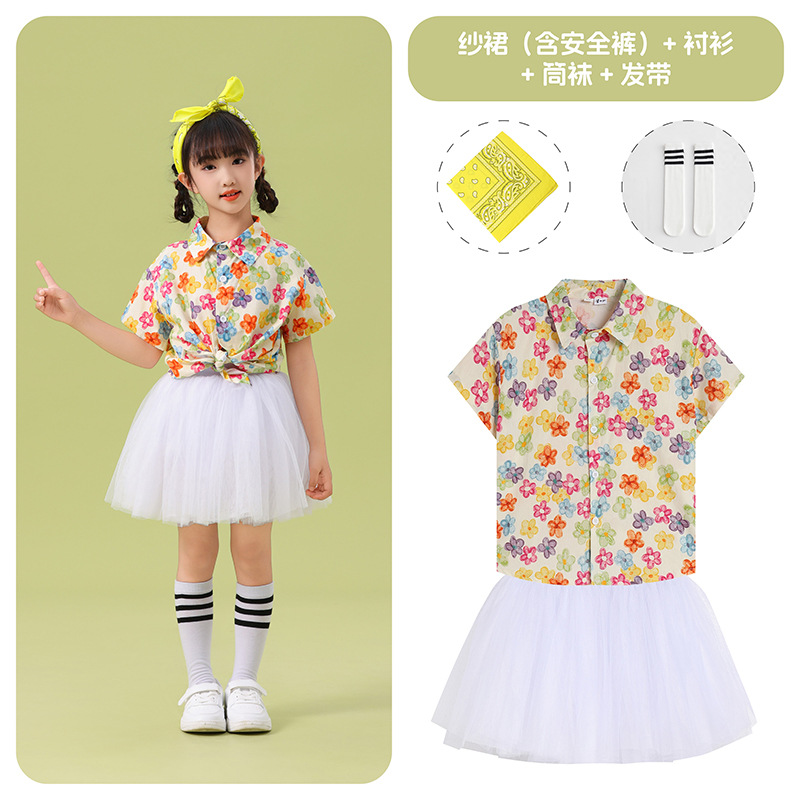 남학생 꽃 셔츠 흰색 거즈 스커트 댄스 세트 6 월 1 일 유치원 공연 세트 초등학생 스포츠 치어 리더 유니폼