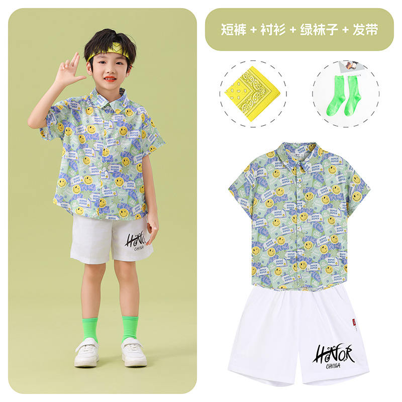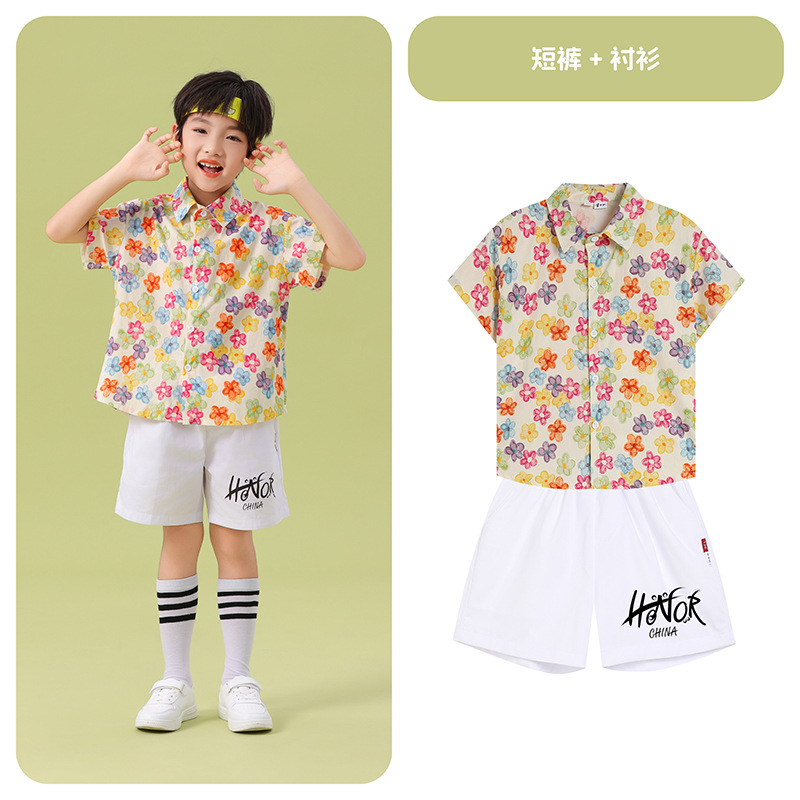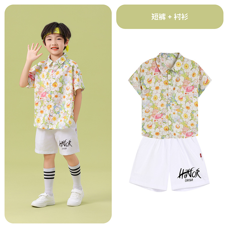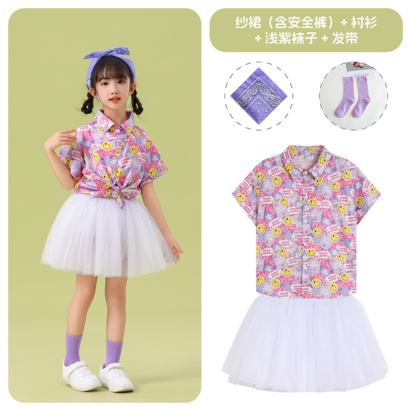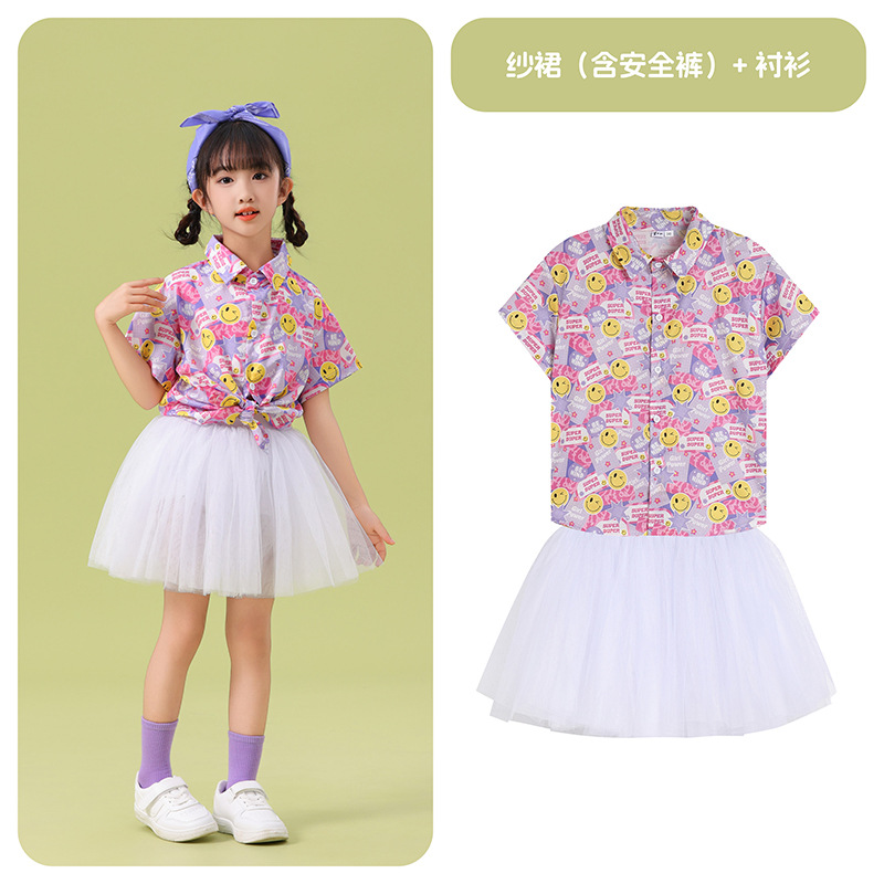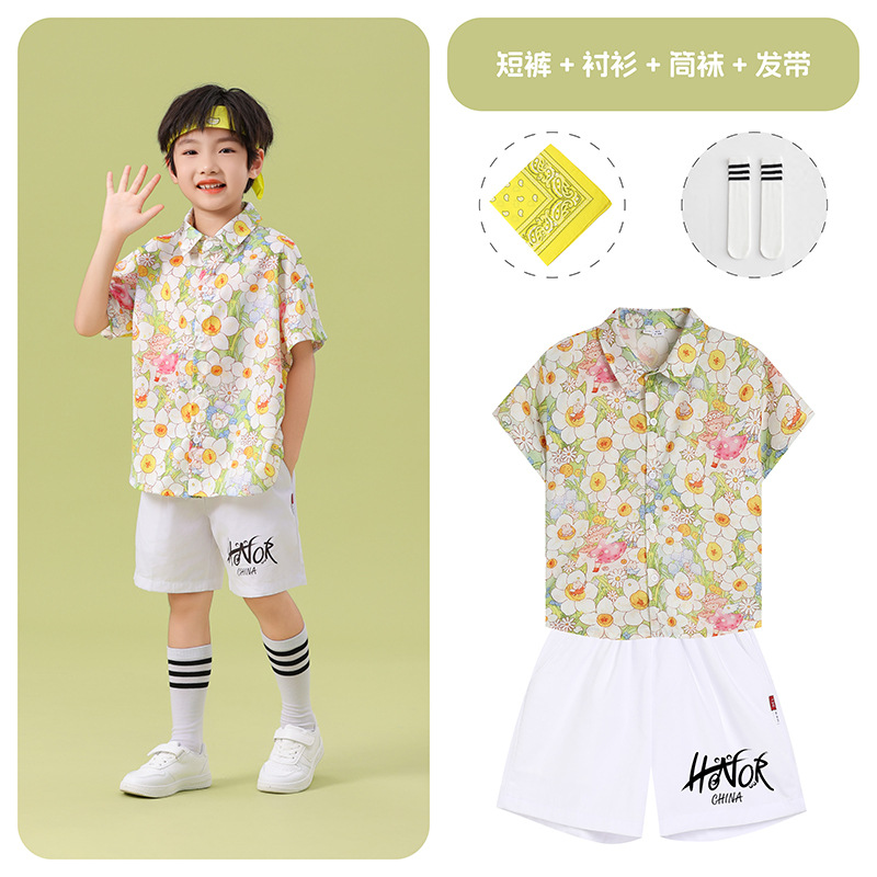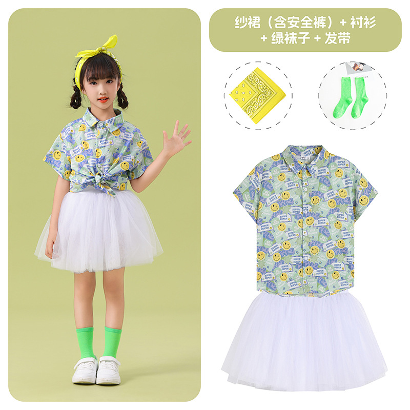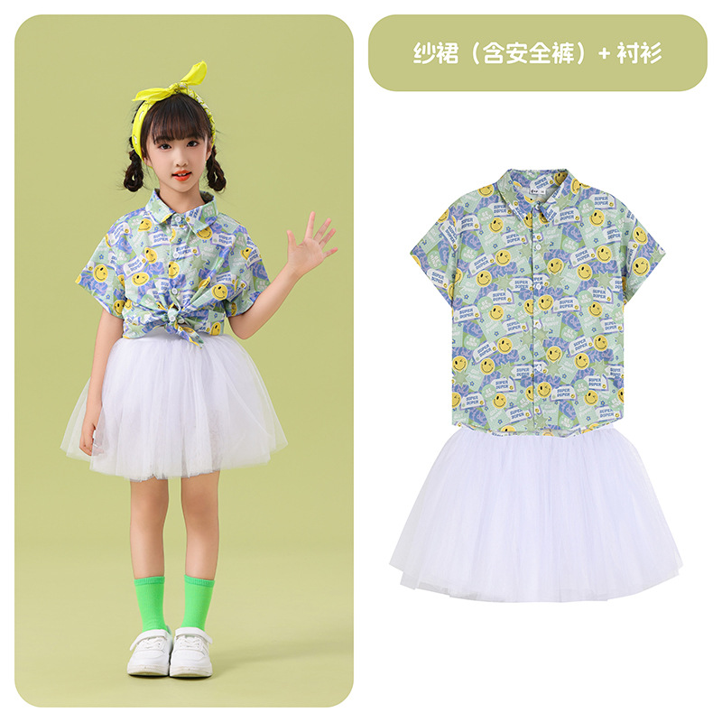 남학생 꽃 셔츠 흰색 거즈 스커트 댄스 세트 6 월 1 일 유치원 공연 세트 초등학생 스포츠 치어 리더 유니폼