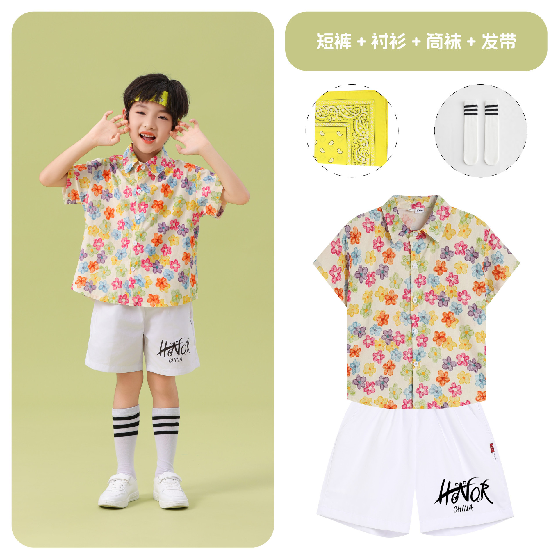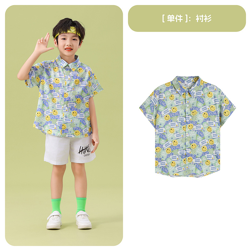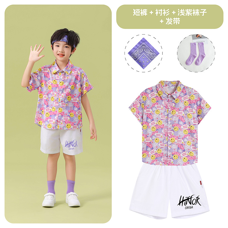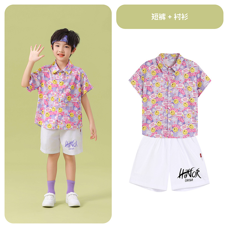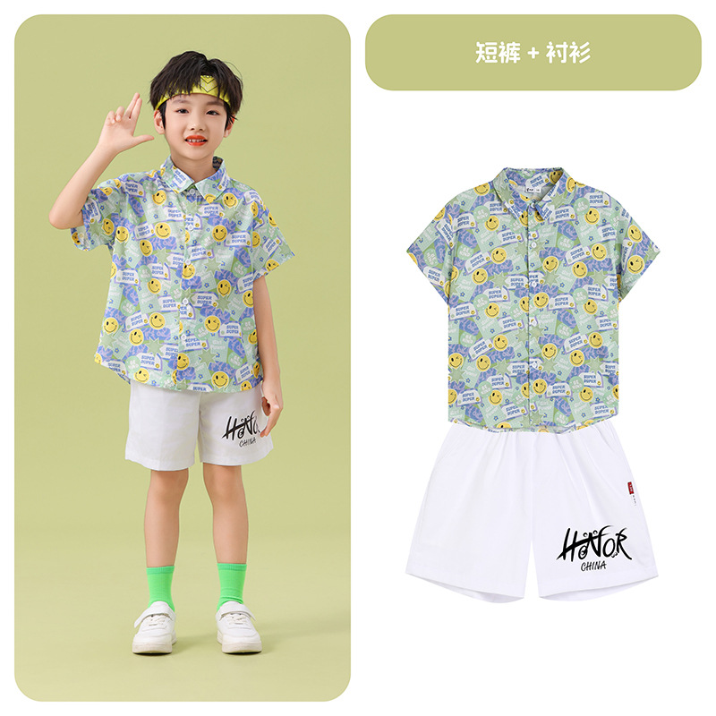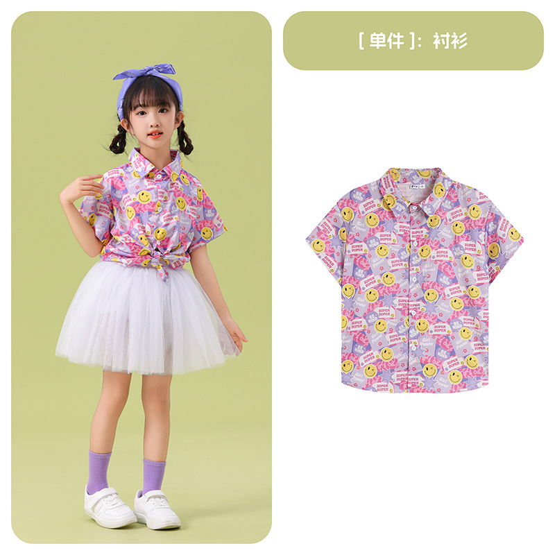 남학생 꽃 셔츠 흰색 거즈 스커트 댄스 세트 6 월 1 일 유치원 공연 세트 초등학생 스포츠 치어 리더 유니폼