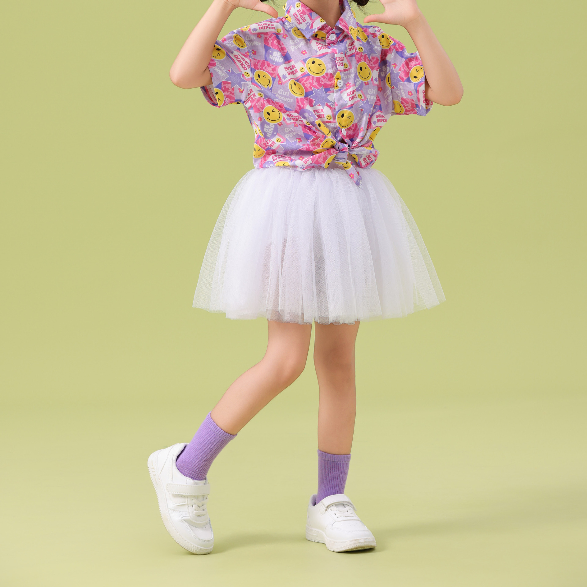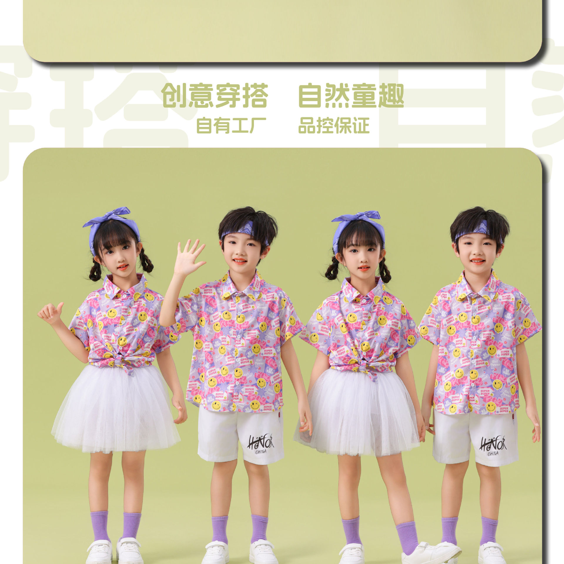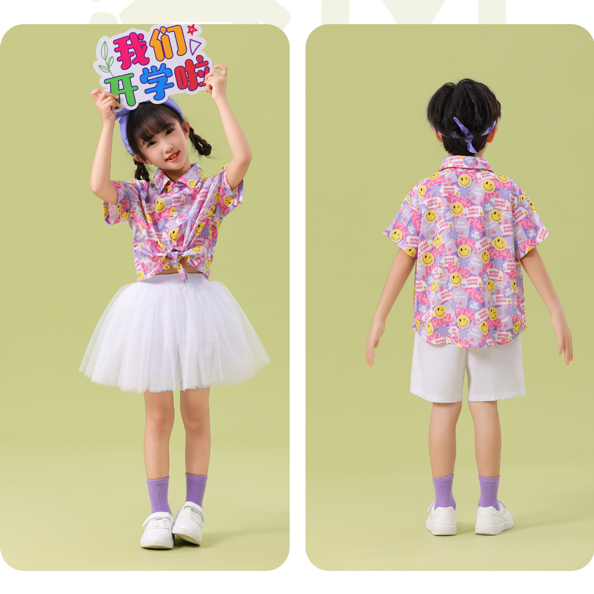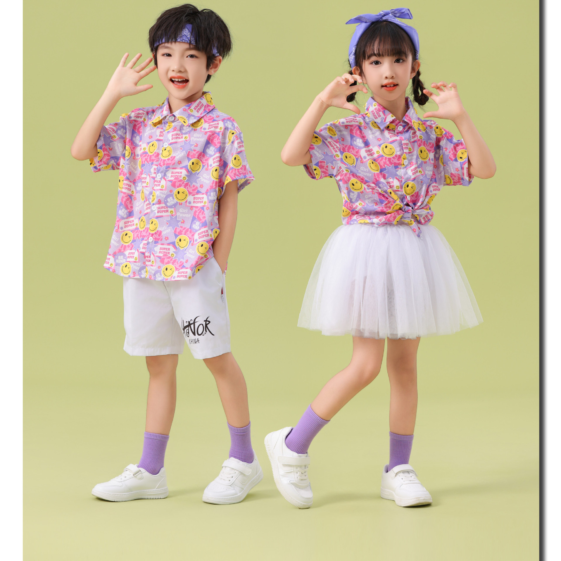 남학생 꽃 셔츠 흰색 거즈 스커트 댄스 세트 6 월 1 일 유치원 공연 세트 초등학생 스포츠 치어 리더 유니폼