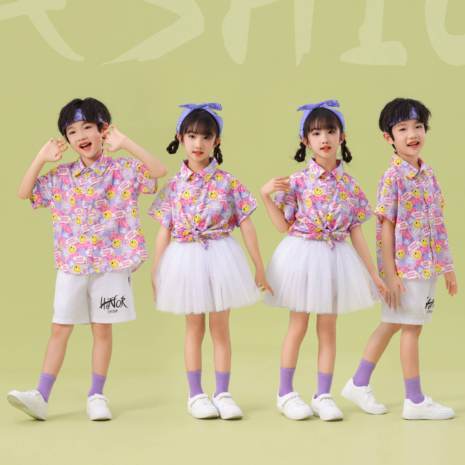 남학생 꽃 셔츠 흰색 거즈 스커트 댄스 세트 6 월 1 일 유치원 공연 세트 초등학생 스포츠 치어 리더 유니폼스토어 가기
