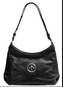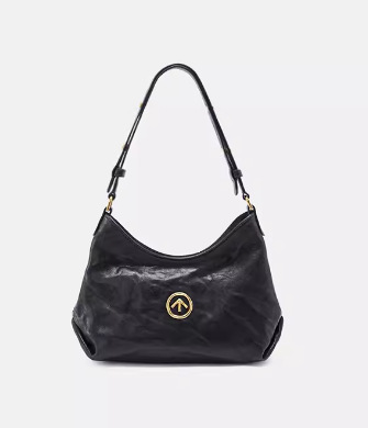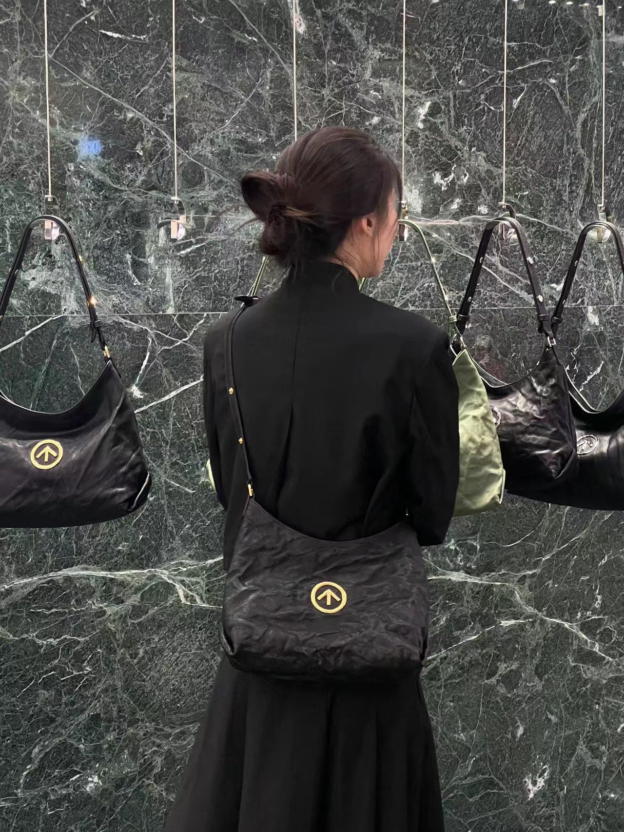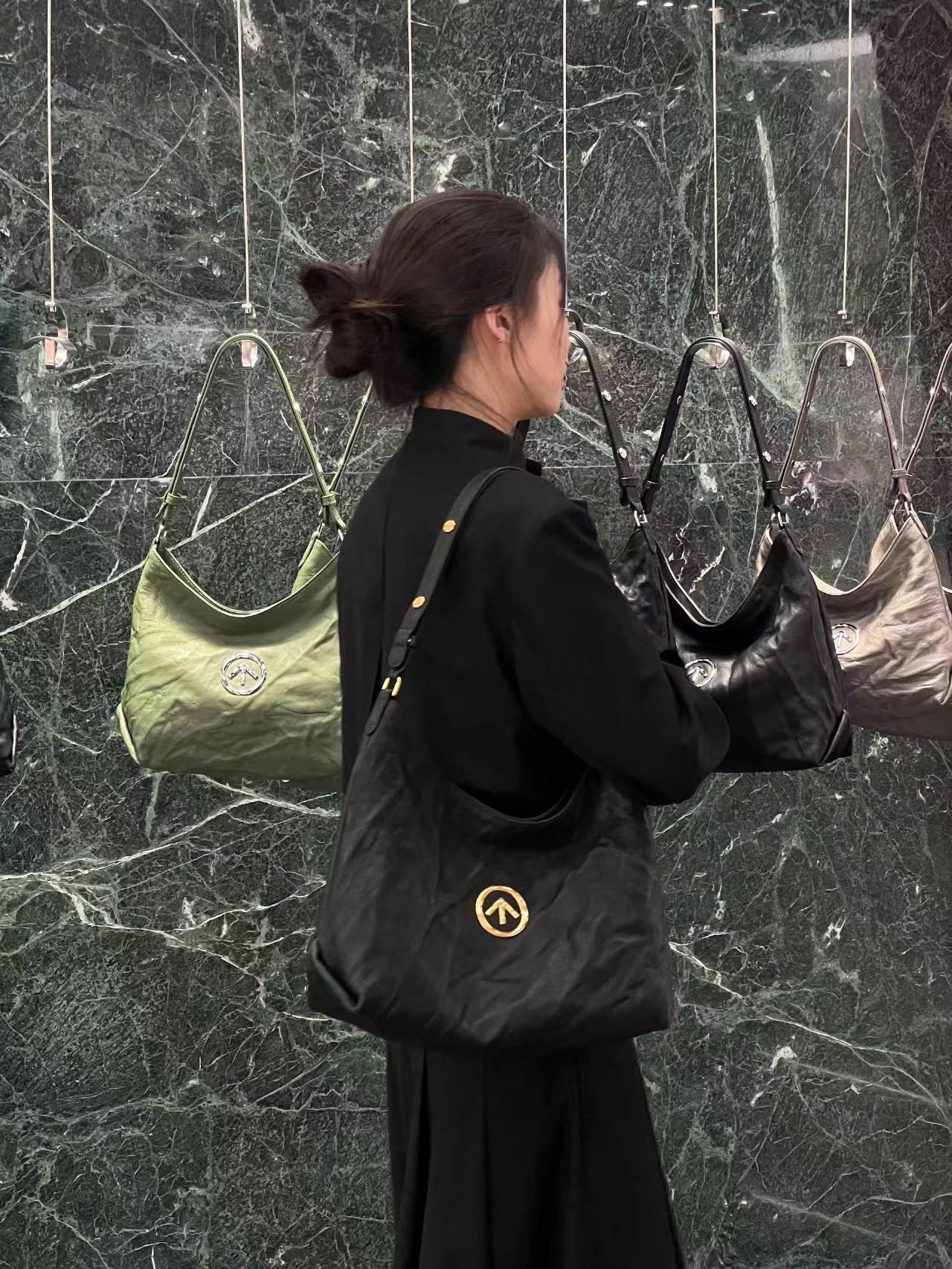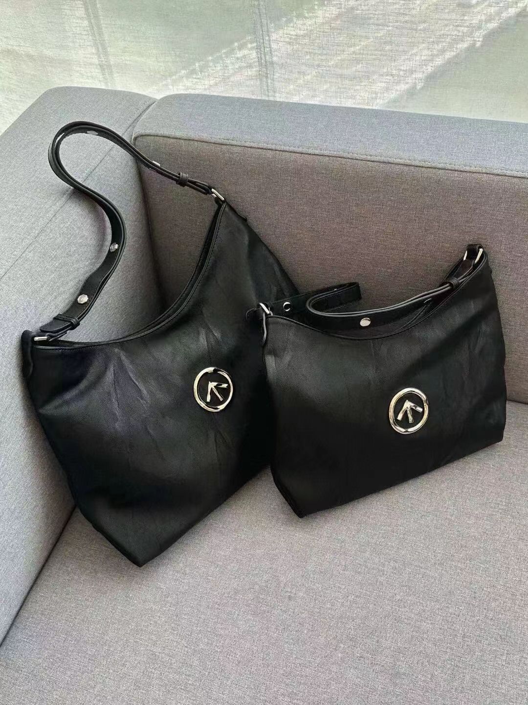 GROTTO 섹스리스 블랙 스톤 호보 가방 주름 손 어깨 크로스 바디 겨드랑이 부드러운 가죽 화살표 가방